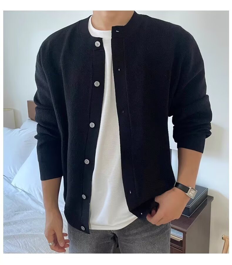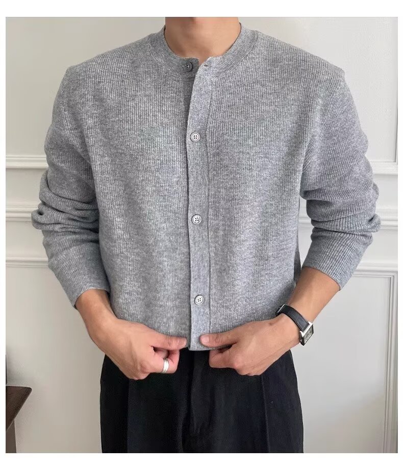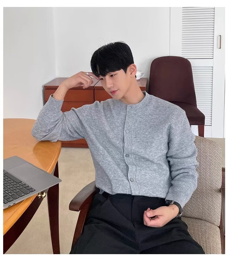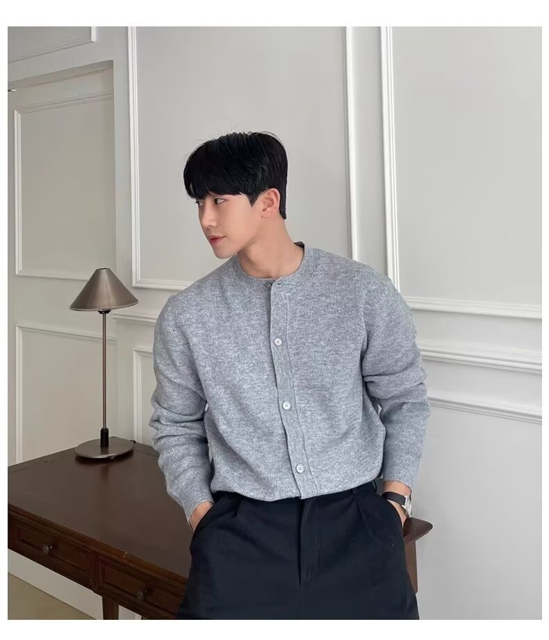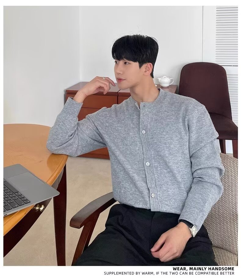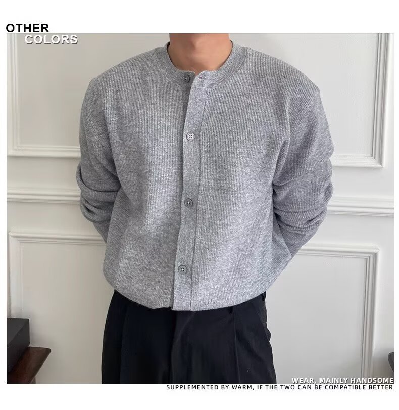 니트 카디건 한국 스웨터 재킷 남자의 가을과 겨울 게으른 스타일 버튼 둥근 목 양털베이스 셔츠 단색 탑스토어 가기