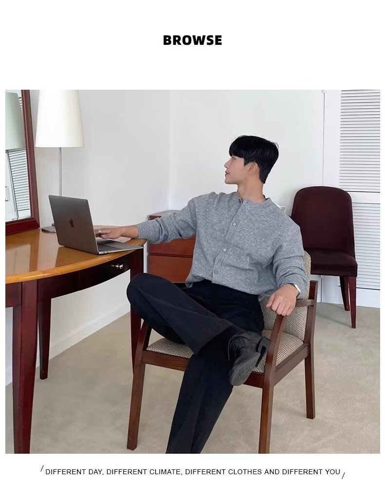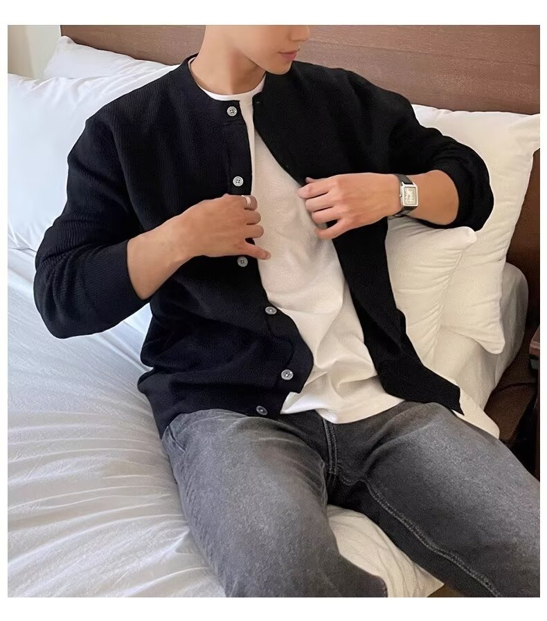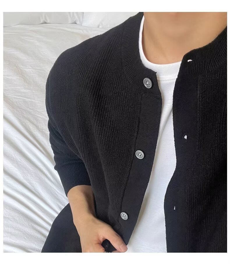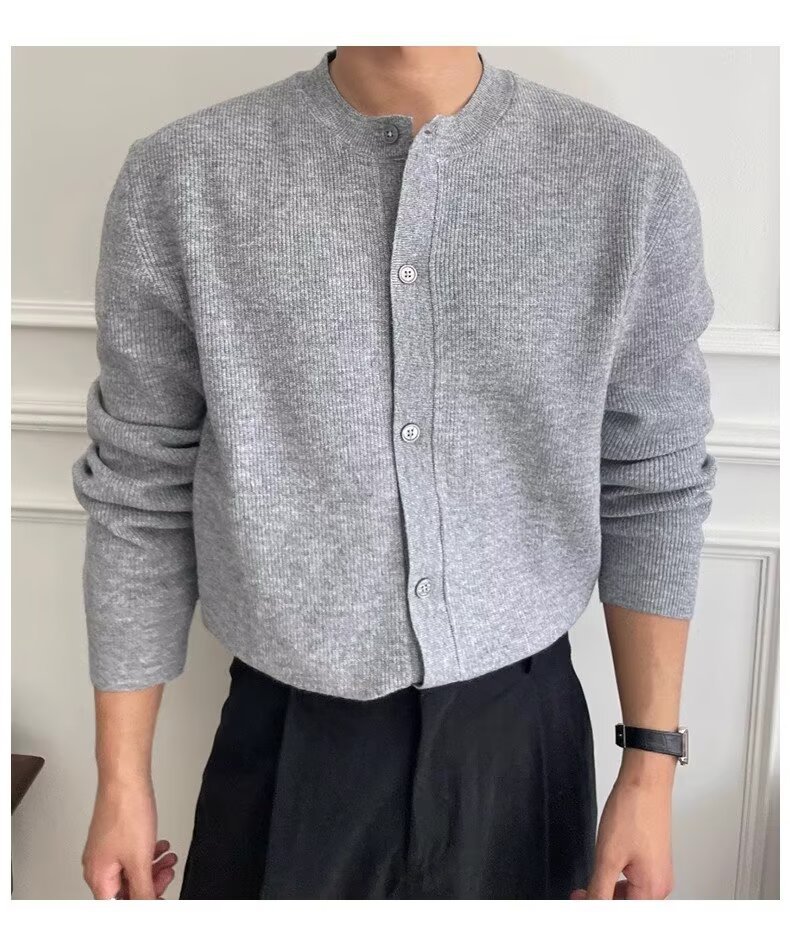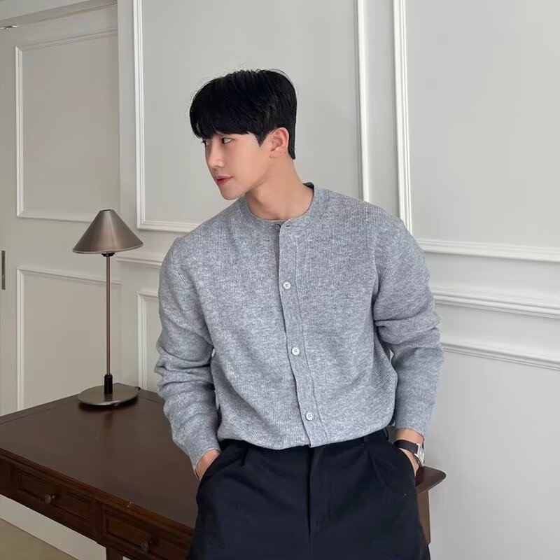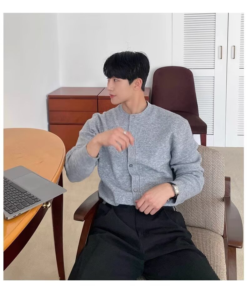 니트 카디건 한국 스웨터 재킷 남자의 가을과 겨울 게으른 스타일 버튼 둥근 목 양털베이스 셔츠 단색 탑스토어 가기