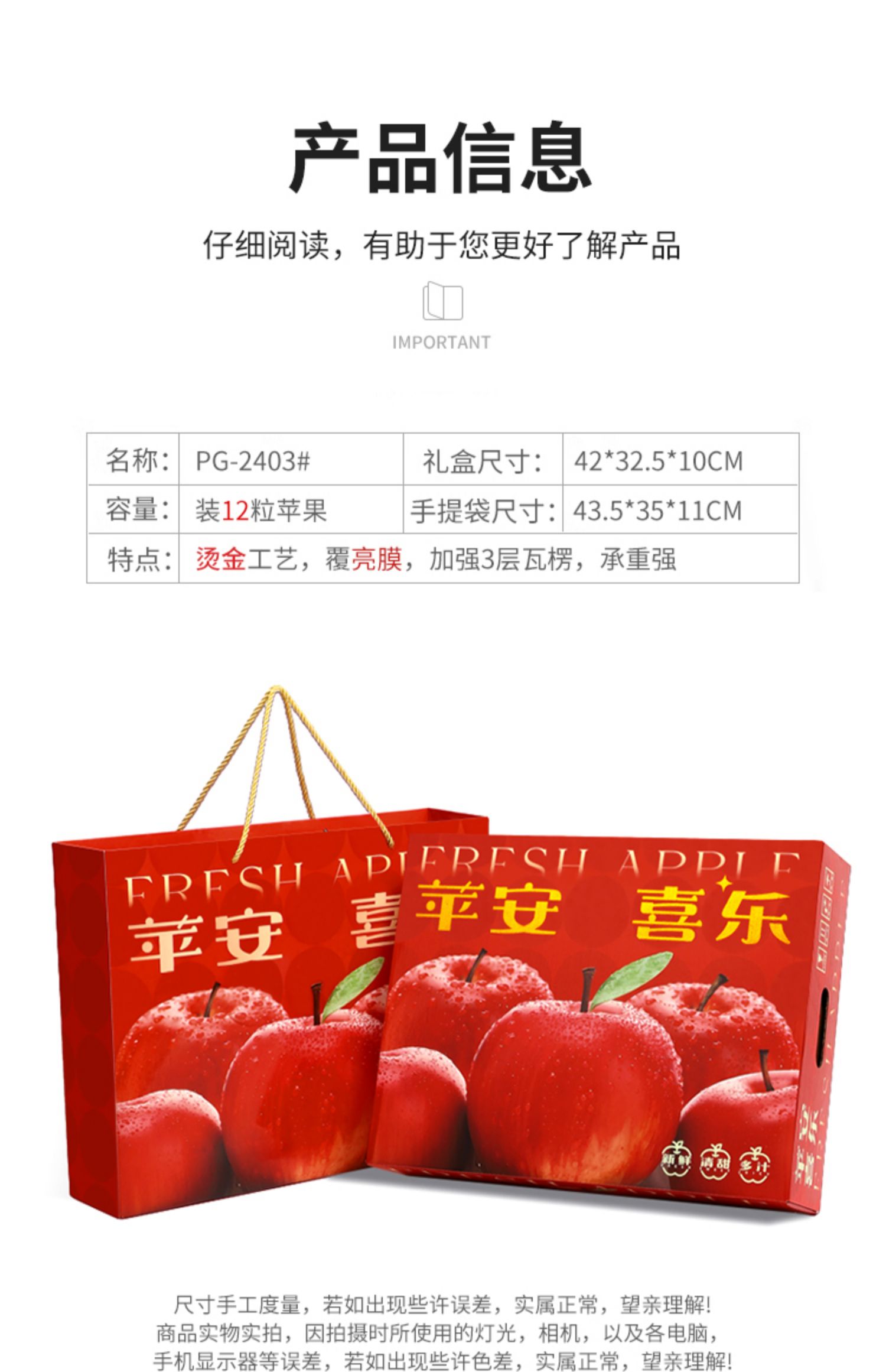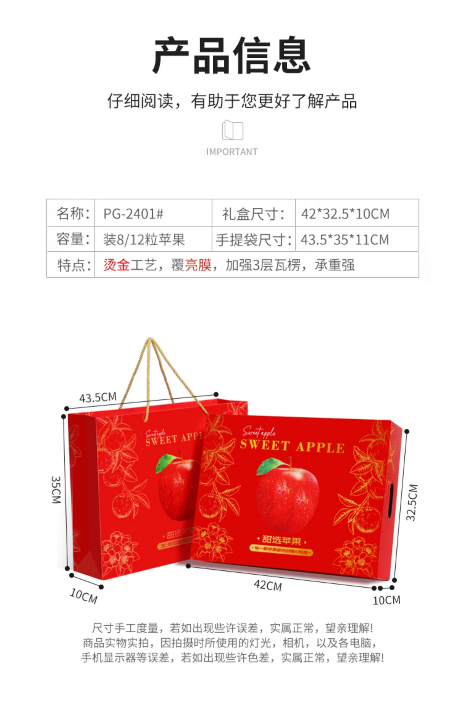 고급 애플 포장 상자 선물 상자 12 팩 레드 후지 사탕 심장 금성 선물 상자 과일 빈 상자스토어 가기
