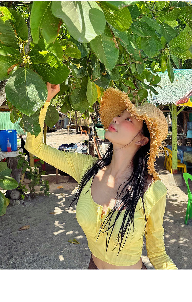 새로운 한국식 분할 수영복 여성의 섹시한 스파이스 소녀 순수 디자인 센스 긴 소매 태양 보호 슬림핏 캐주얼 휴가 수영복스토어 가기