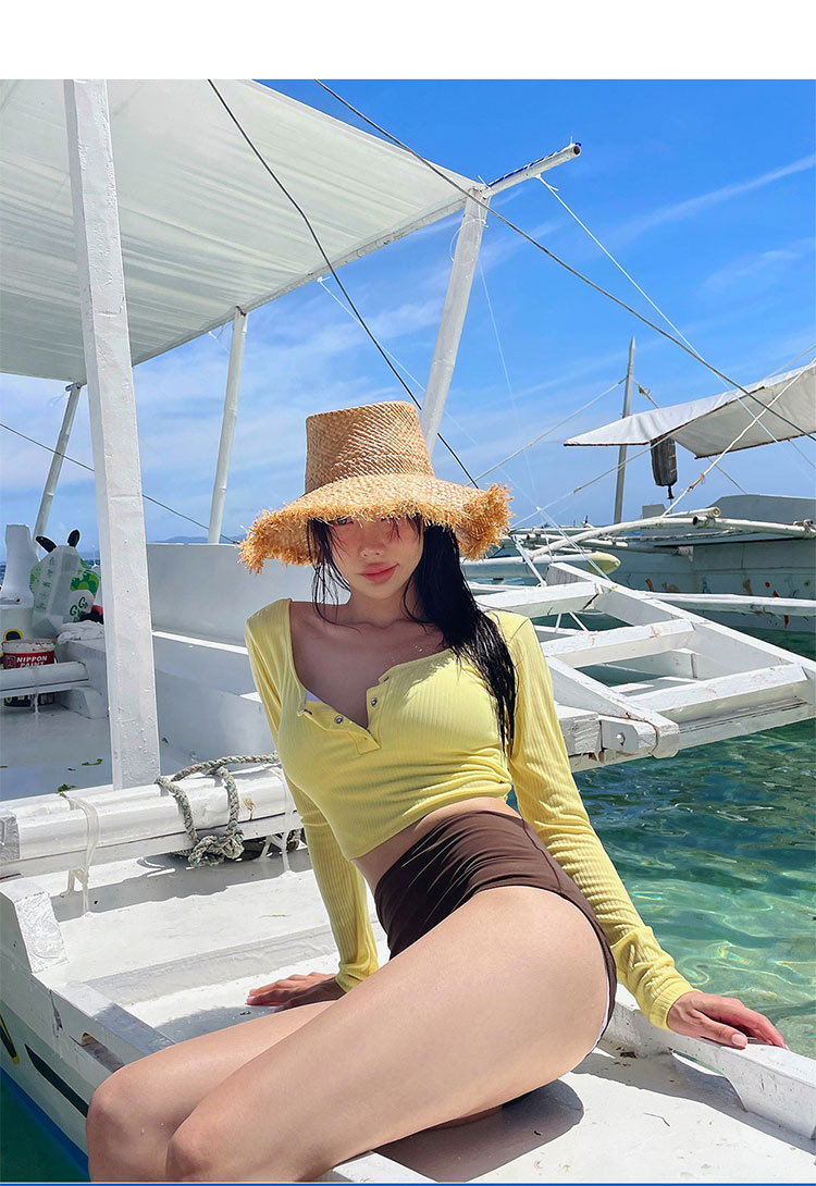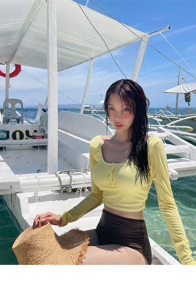 새로운 한국식 분할 수영복 여성의 섹시한 스파이스 소녀 순수 디자인 센스 긴 소매 태양 보호 슬림핏 캐주얼 휴가 수영복