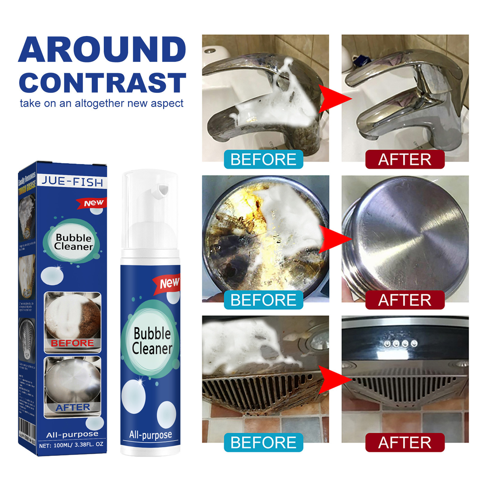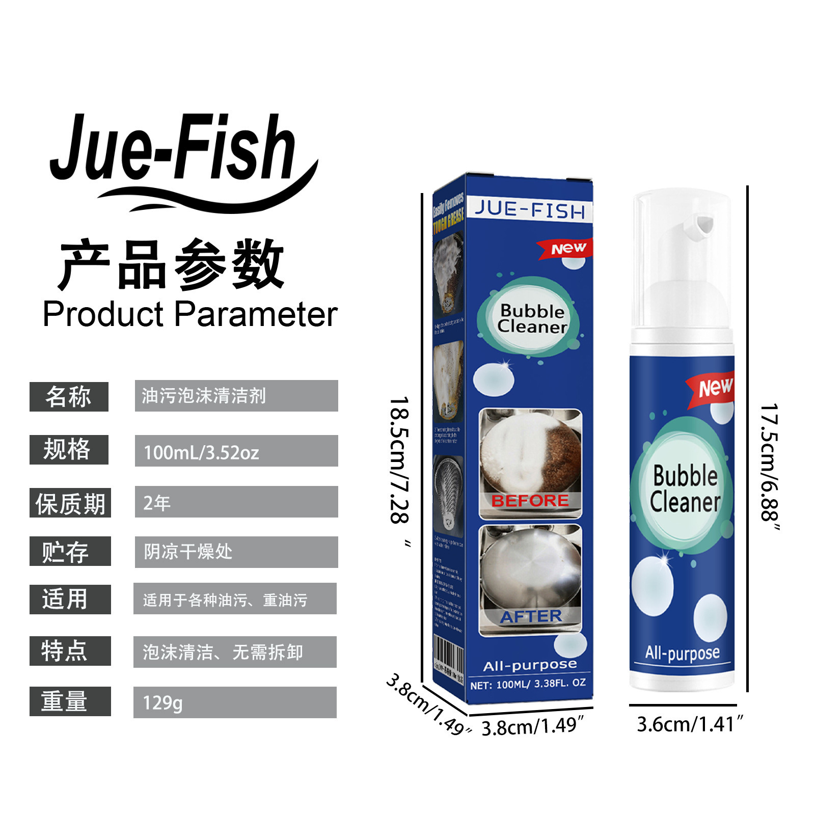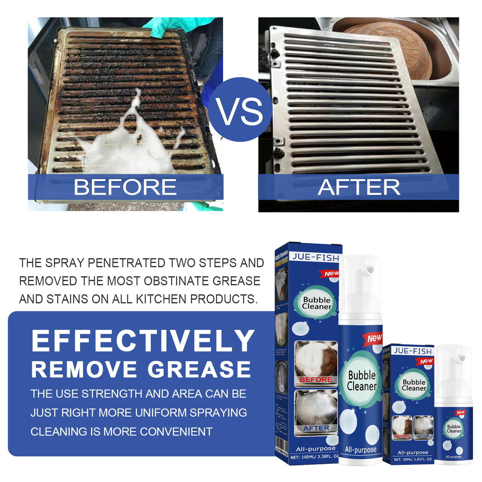 Jue-Fish 오일 얼룩 폼 클리너 주방 스토브 후드 다목적 중유 얼룩 폼 클리너스토어 가기