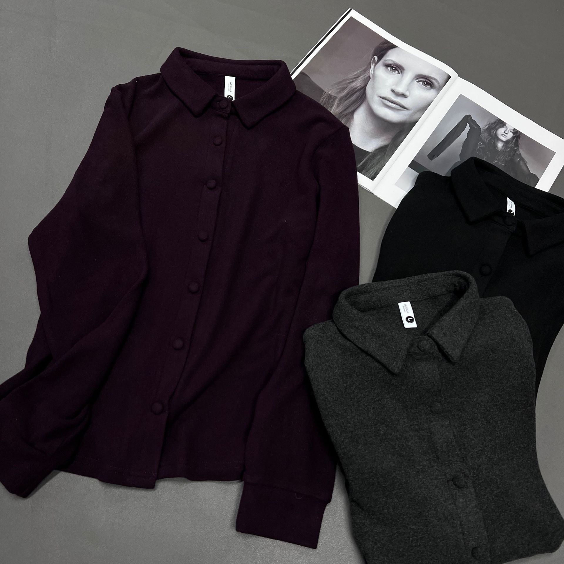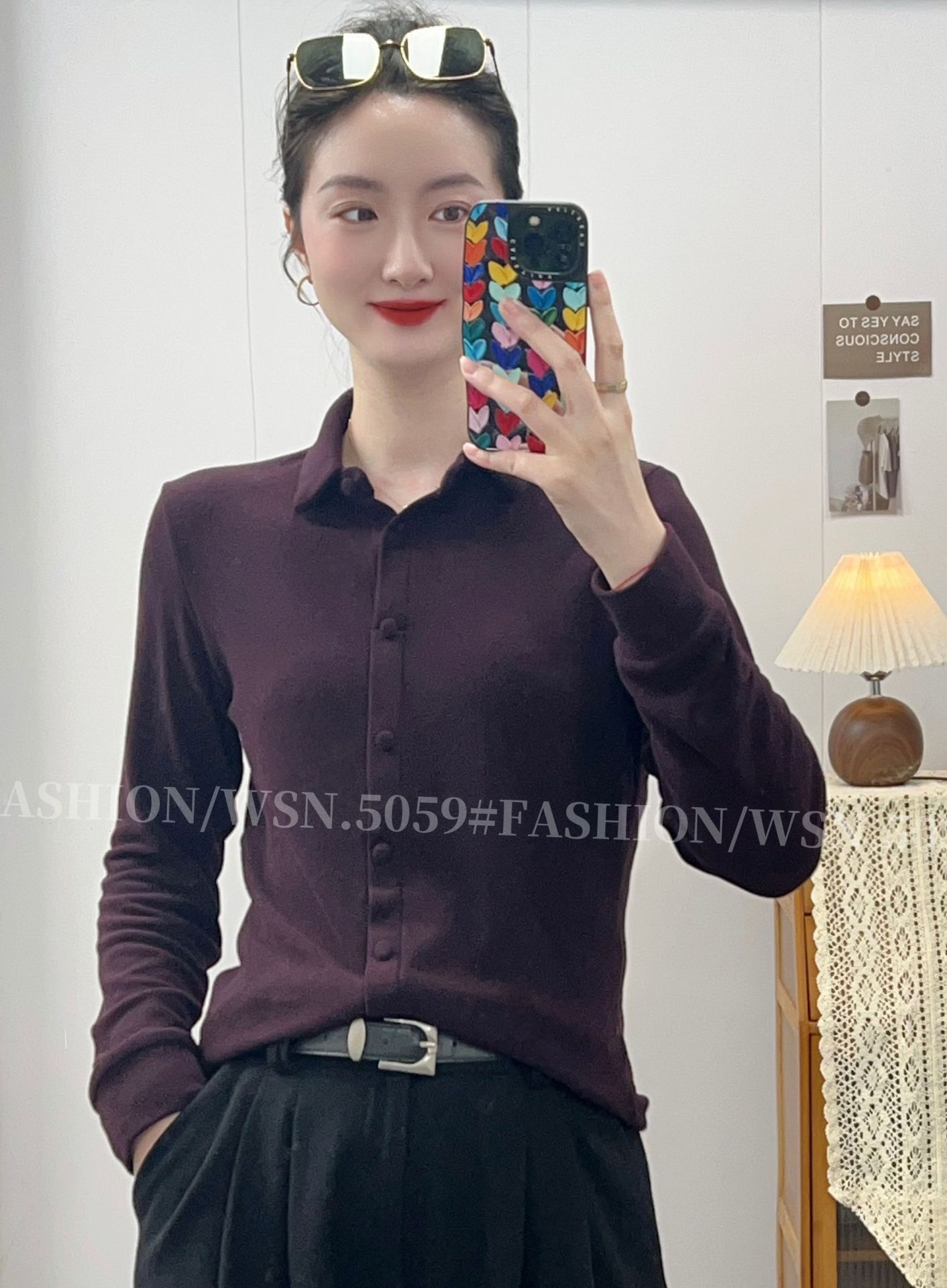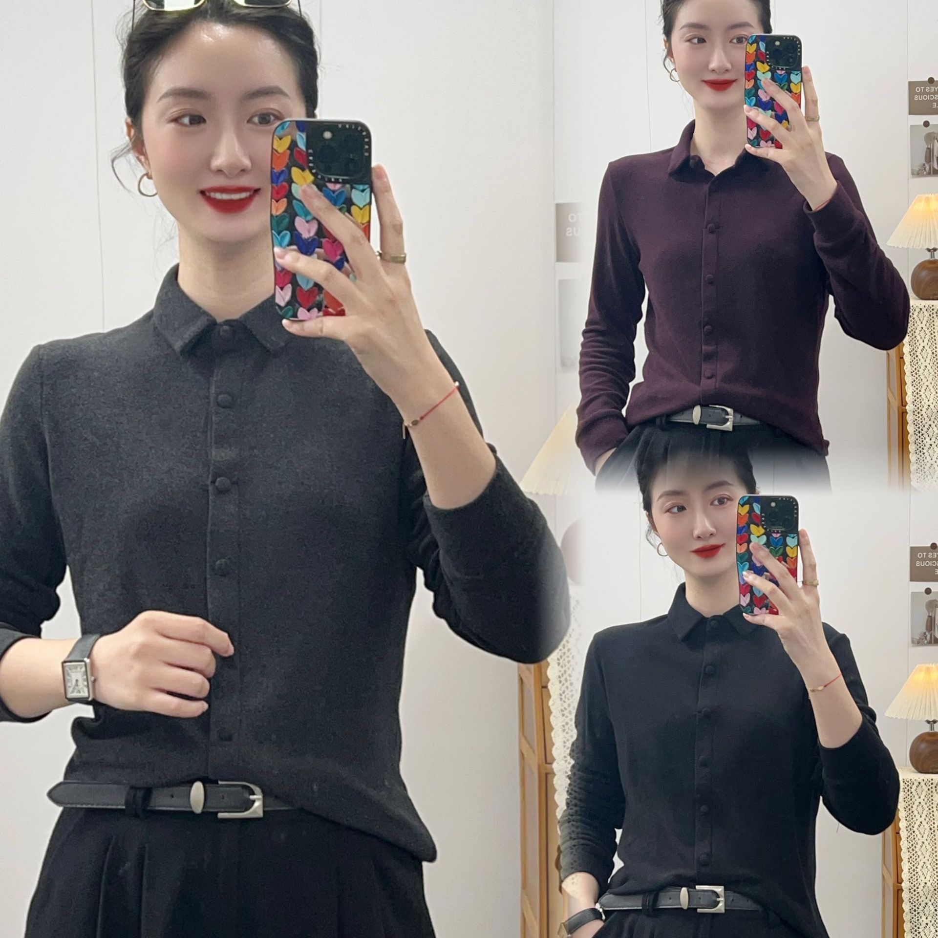2024 겨울 새로운 옷깃 풀오버 양면 벨벳 단색 긴 소매 기본 셔츠 5059