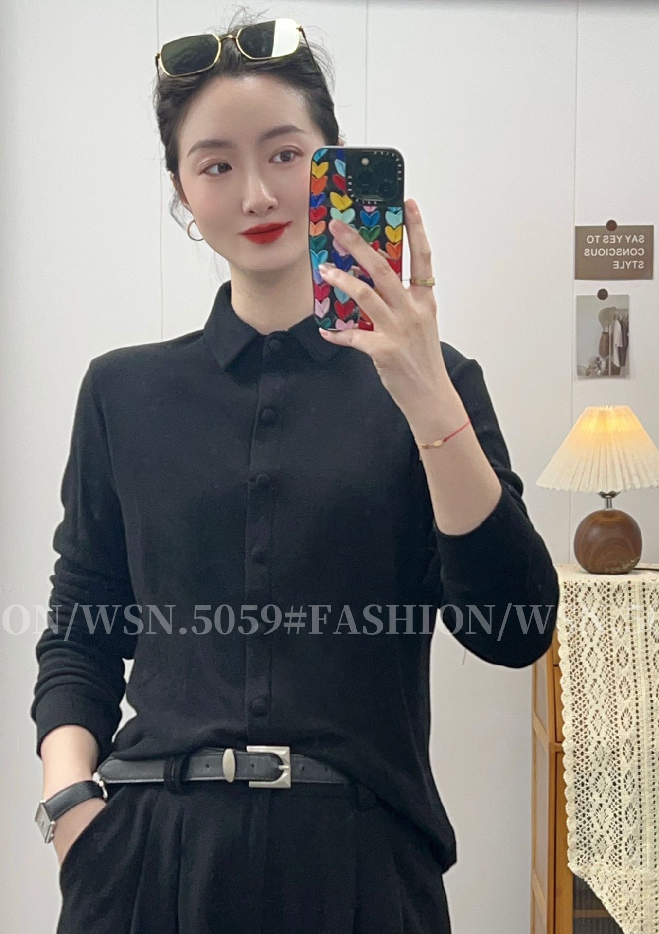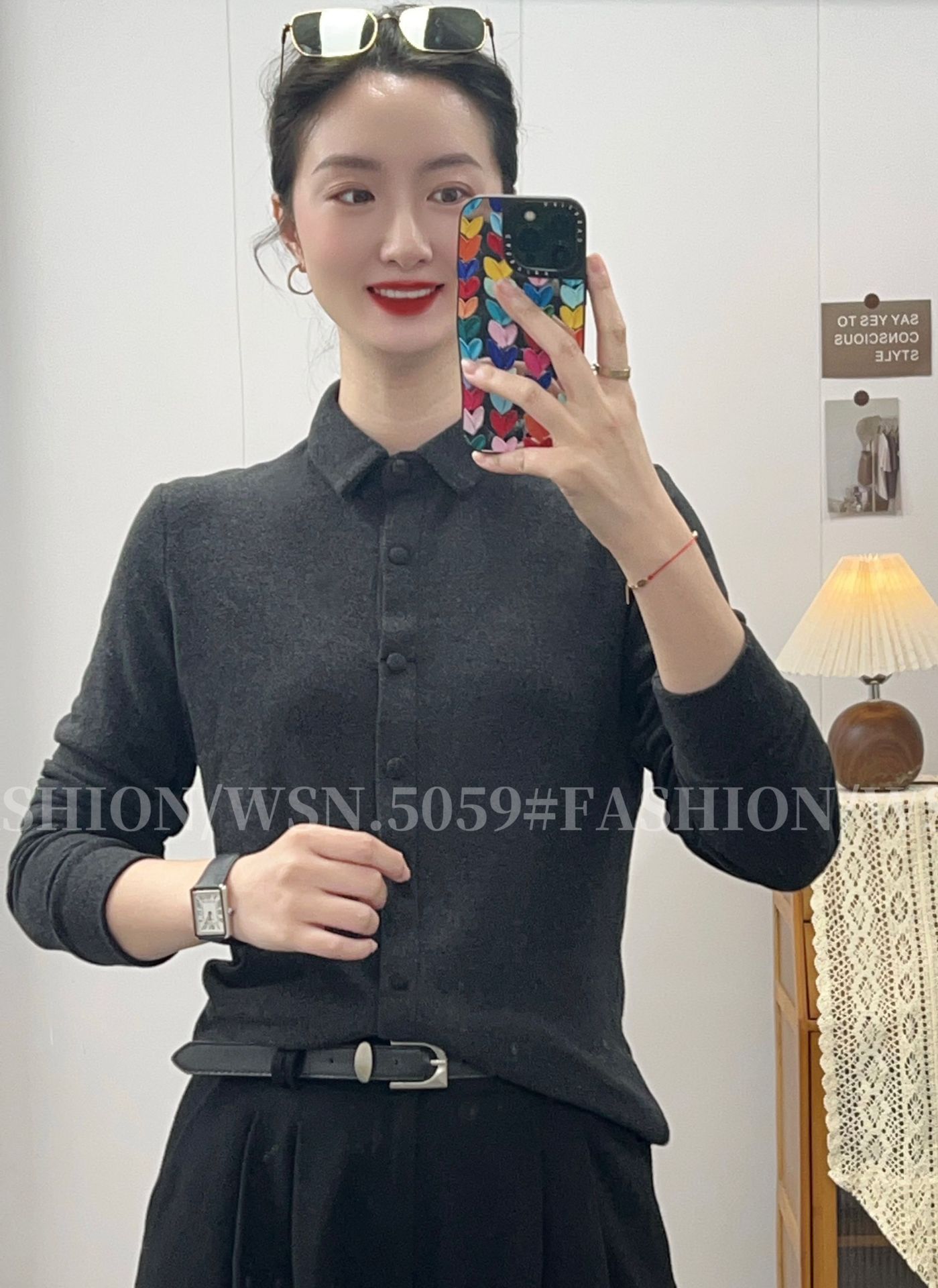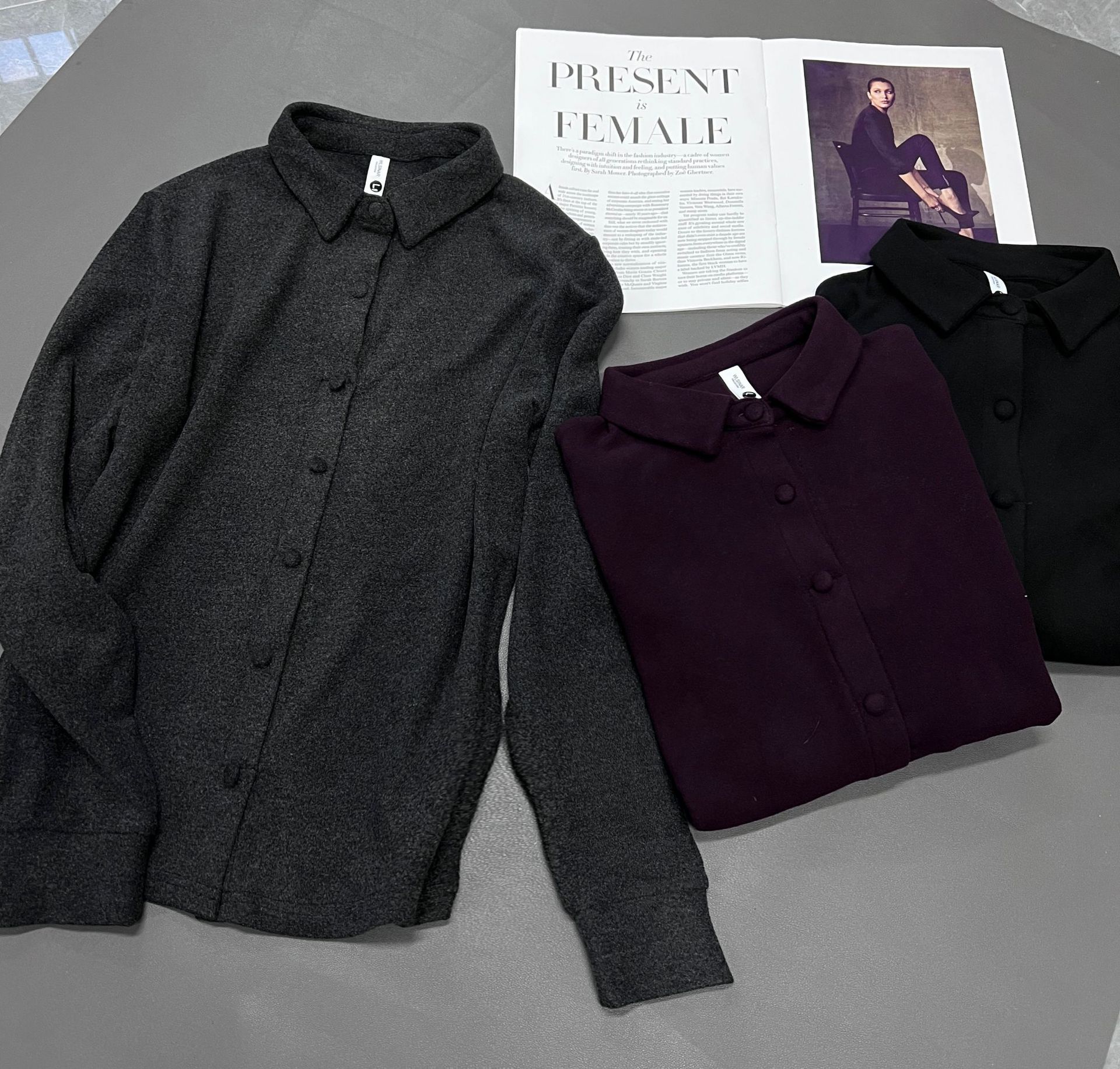 2024 겨울 새로운 옷깃 풀오버 양면 벨벳 단색 긴 소매 기본 셔츠 5059