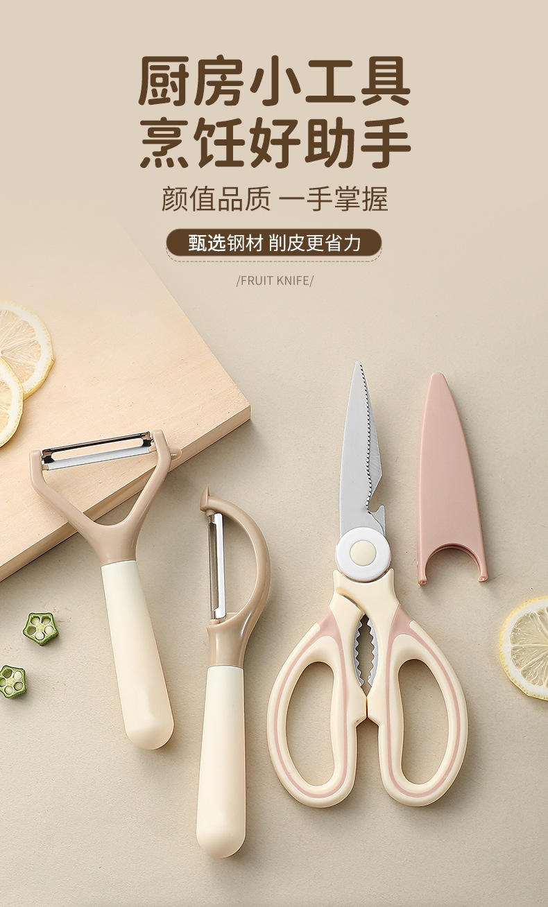 새로운 다기능 주방 가제트 세트 스테인레스 스틸 가위 파싱 나이프 가정용 가위 과일 파싱 나이프스토어 가기