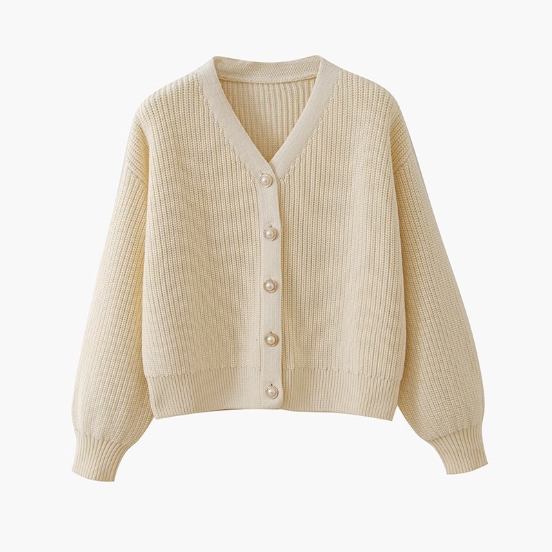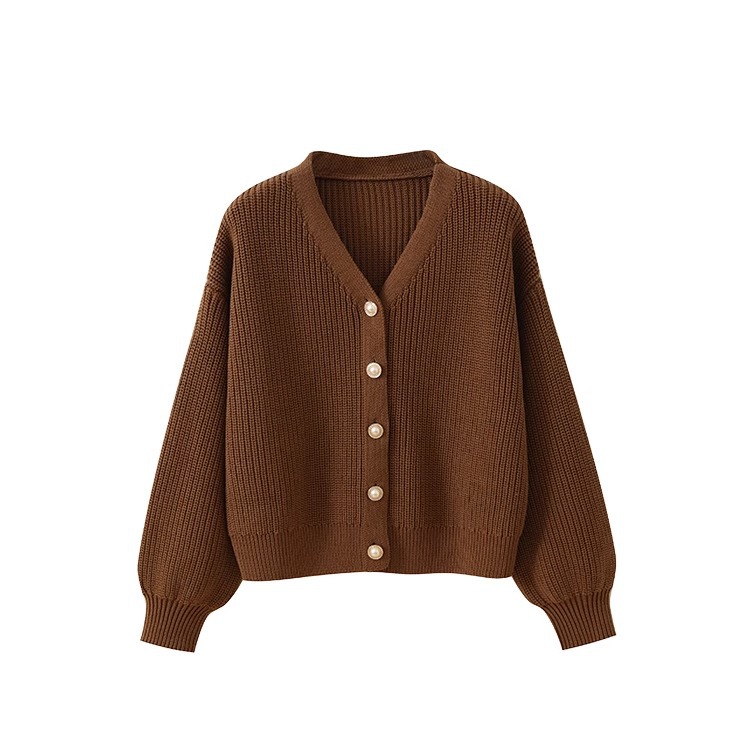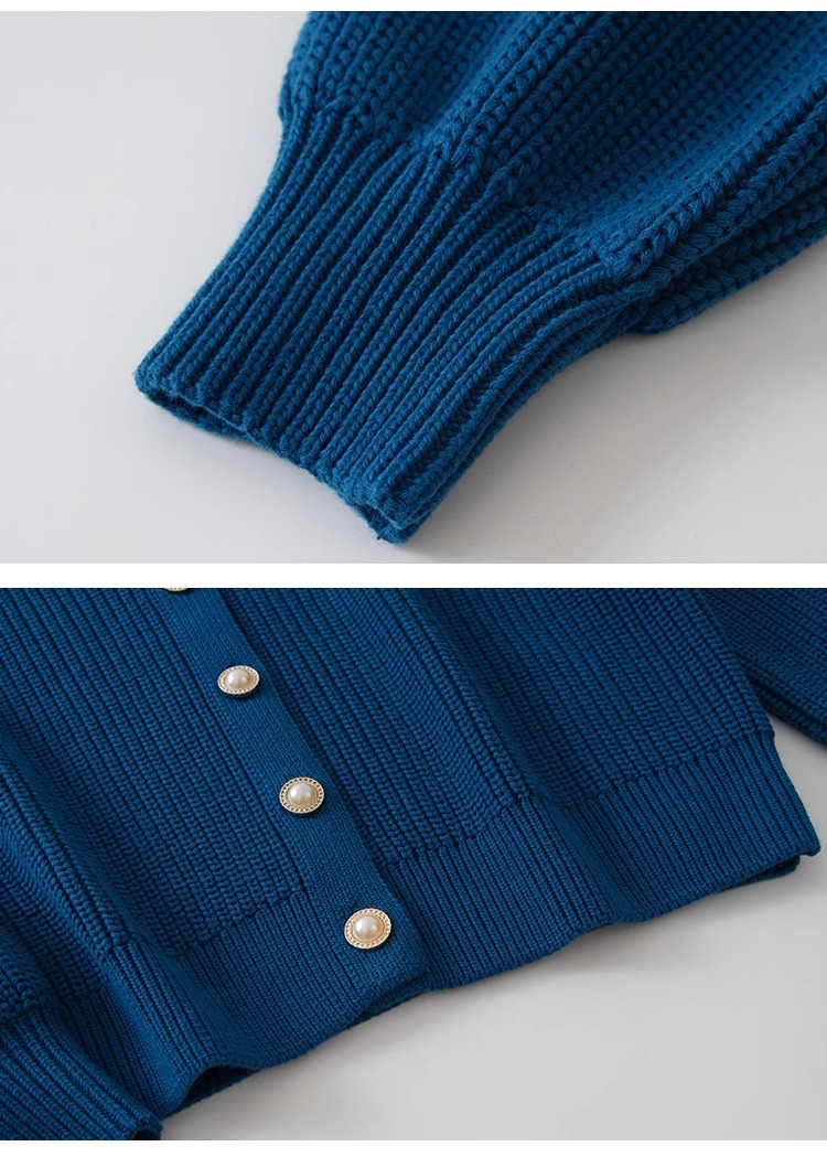면화 스웨터 카디건 코트 여성의 가을과 겨울 짧은 랜턴 소매 느슨한 두꺼운 겉옷 샤넬 스타일 스웨터