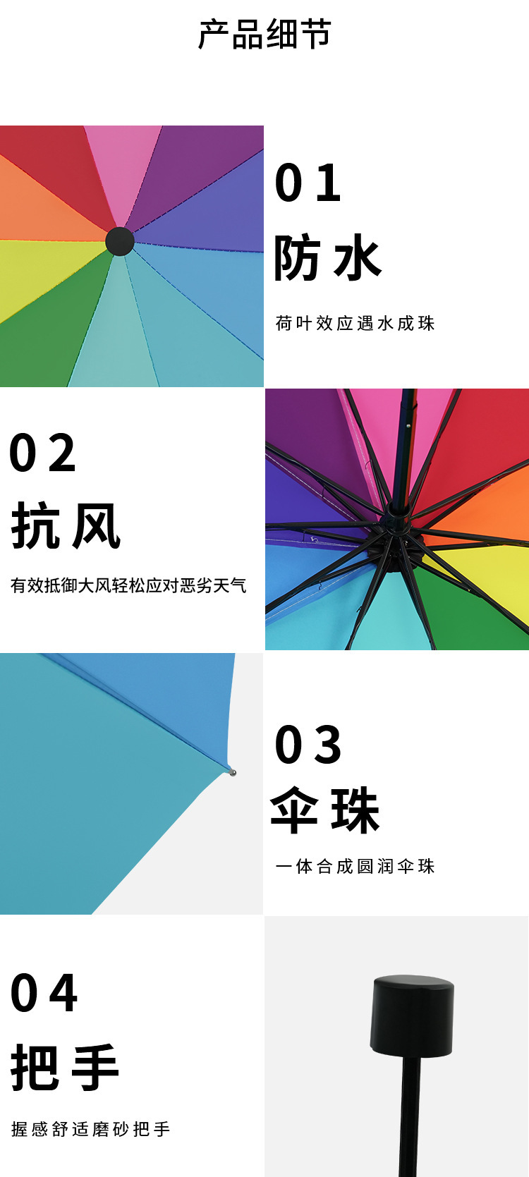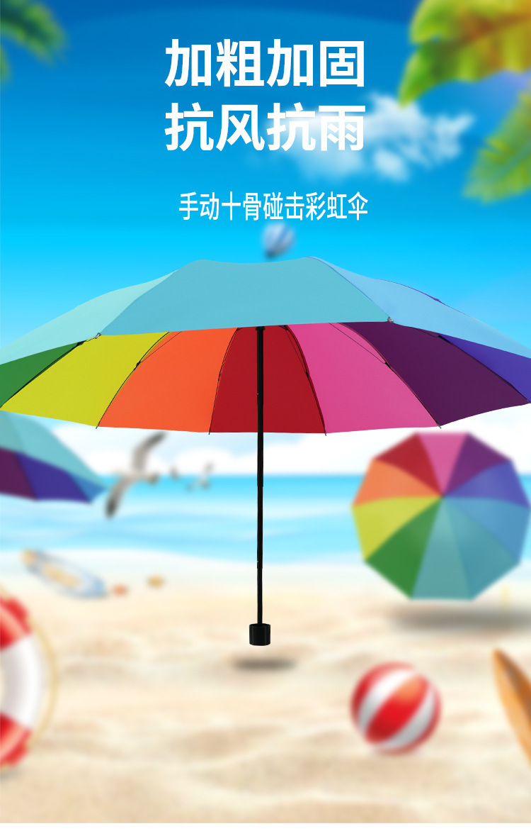 10 뼈 무지개 비 우산 도매 대형 대형 더블 선 스크린 햇살 우산 맑고 비 이중 사용 접는 우산 고정 로고