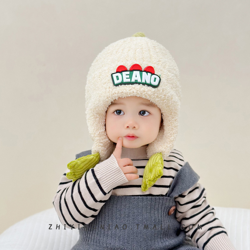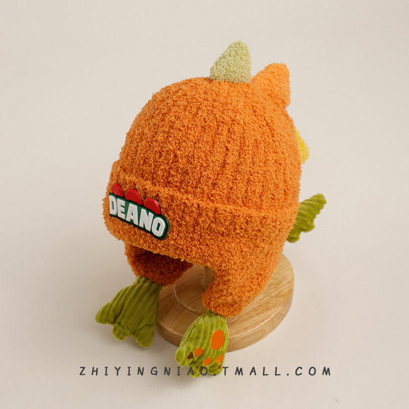 어린이 모자 새로운 겨울 공룡 스타일 귀여운 중대형 어린이 남성과 여성의 귀 보호 모직 모자 두꺼운 따뜻한 풀오버스토어 가기