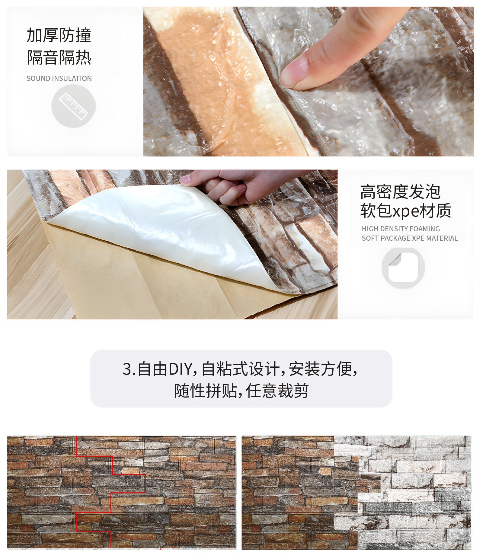 공장 직접 공급 국경 간 벽돌 패턴 3D 입체 벽 스티커 충돌 방지 자체 접착 벽지 거품 방수 벽 장식 벽지스토어 가기