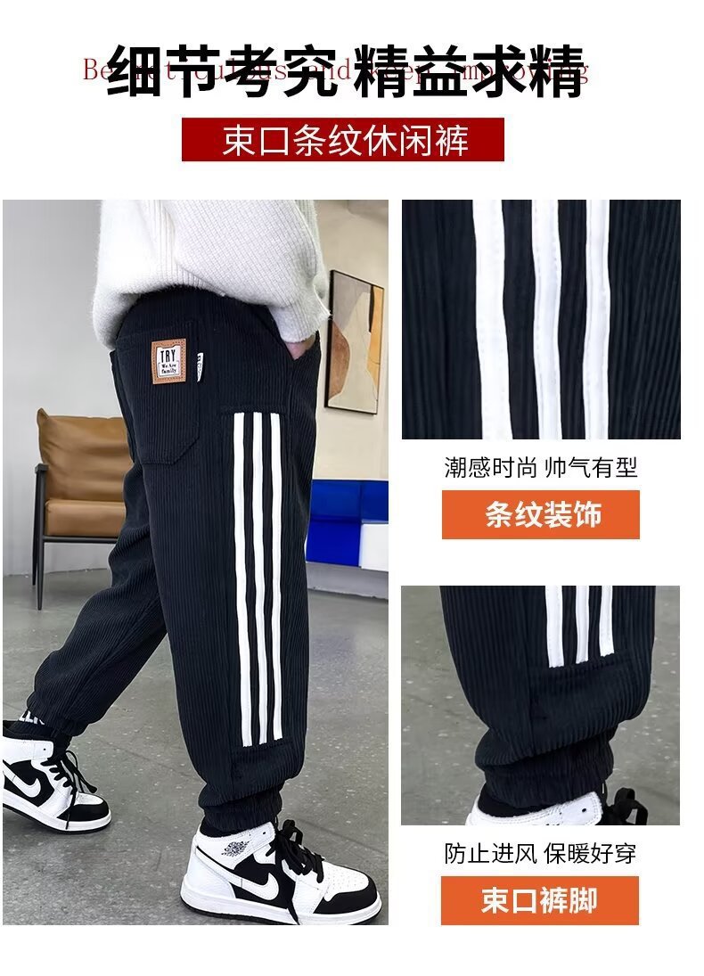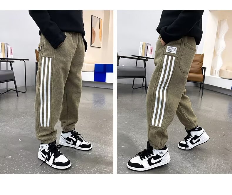 소년 스포츠 바지 가을 겨울 2024 새로운 어린이 원피스 벨벳 따뜻한 바지 코듀로이 캐주얼 바지스토어 가기