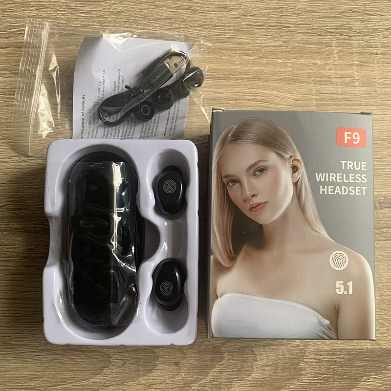 [공장 재고] 블루투스 헤드셋 F9 충전 보물이있는 긴 내구성 디지털 디스플레이 F9-5C 전체 검사 및 선적