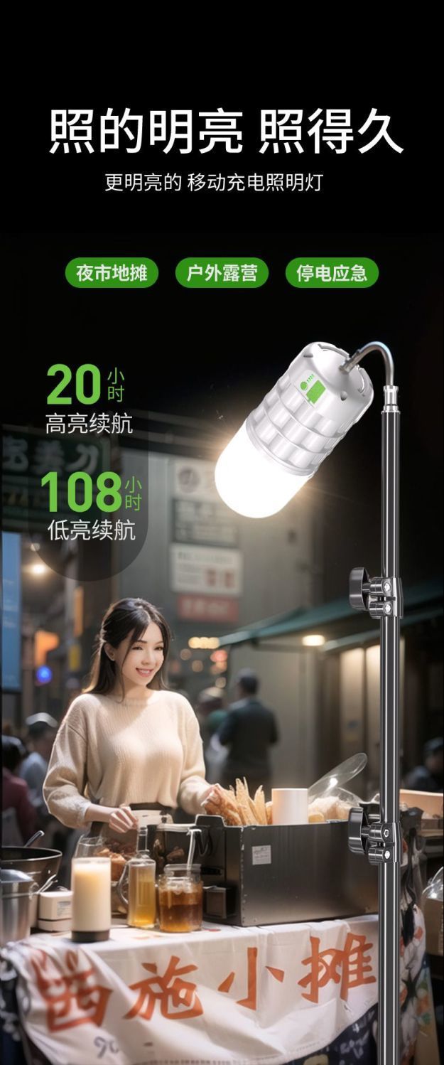야간 시장 스톨 전문 충전식 조명 스톨 라이트 야외 캠핑 텐트 비상 Led 빛 슈퍼 긴 뚜껑