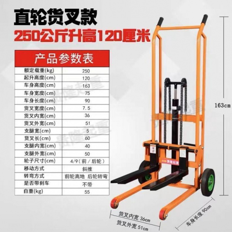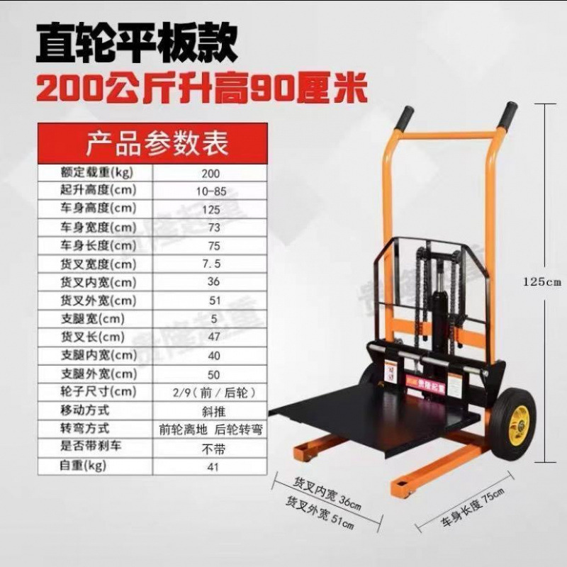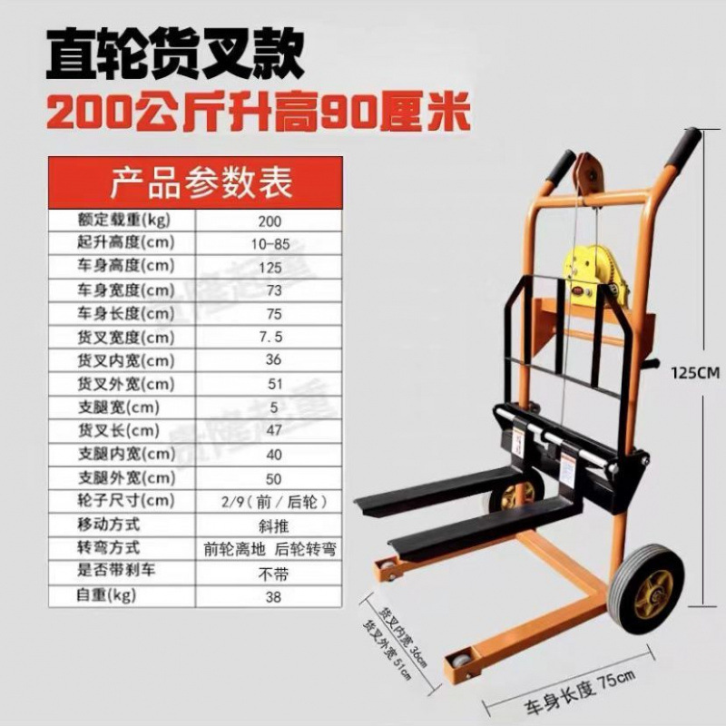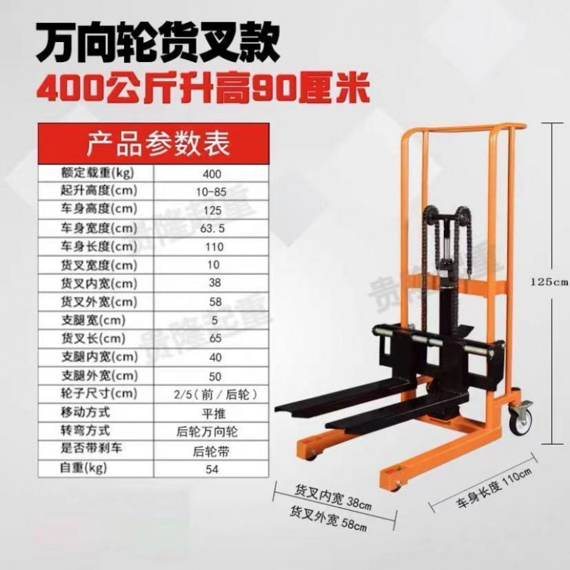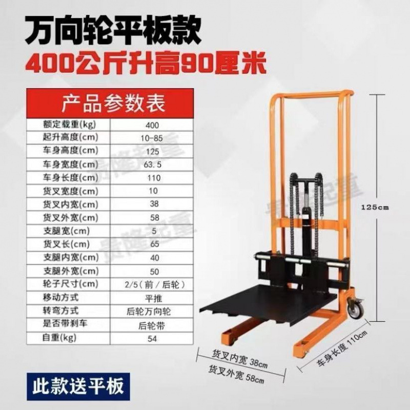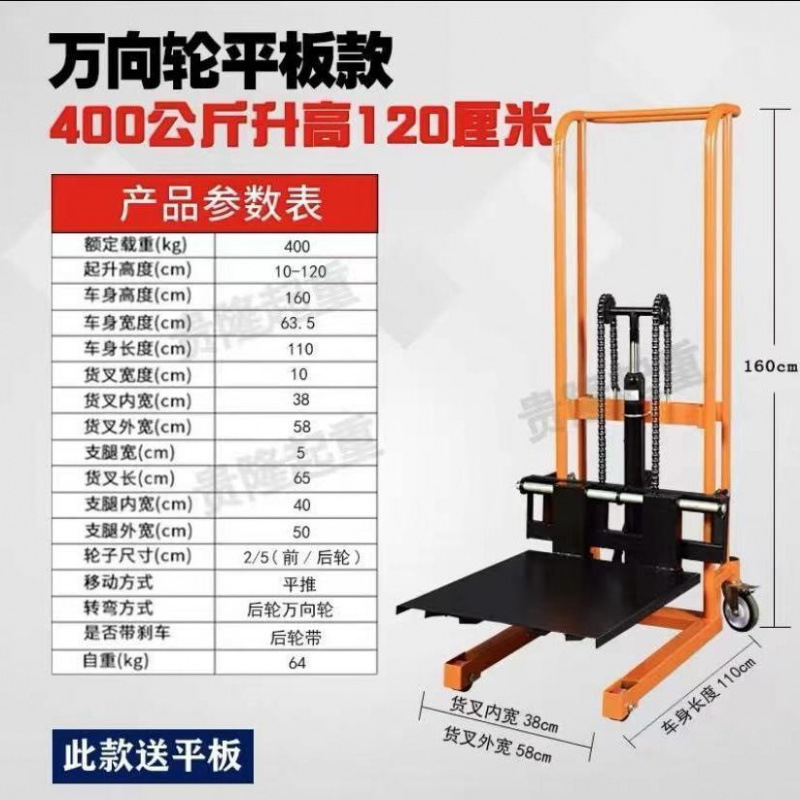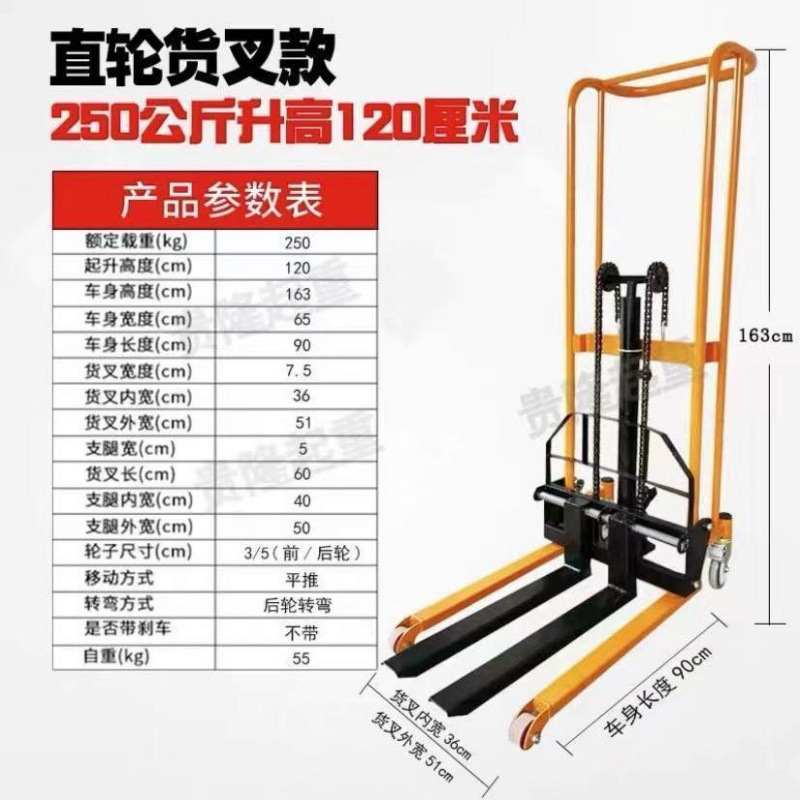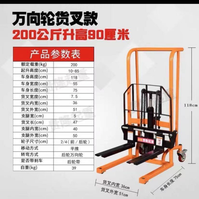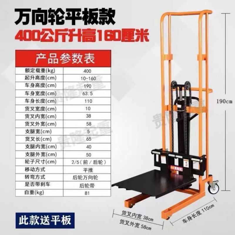 수동 소형 미니 지게차 가정용 엘리베이터 스태커 유압 트럭 스태커 트럭 푸시 리프트