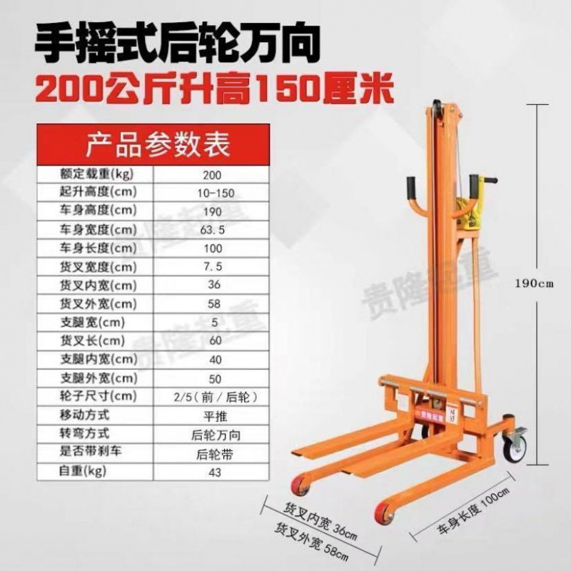 • 수동식 200KG 범용 휠 1.5m 포크형