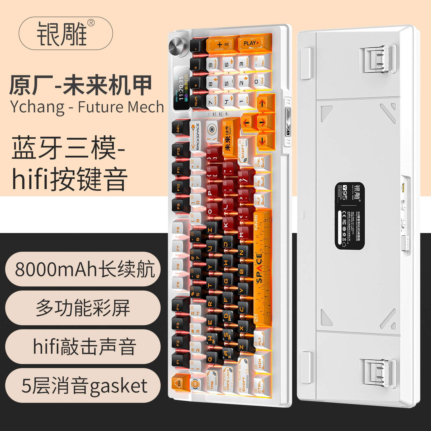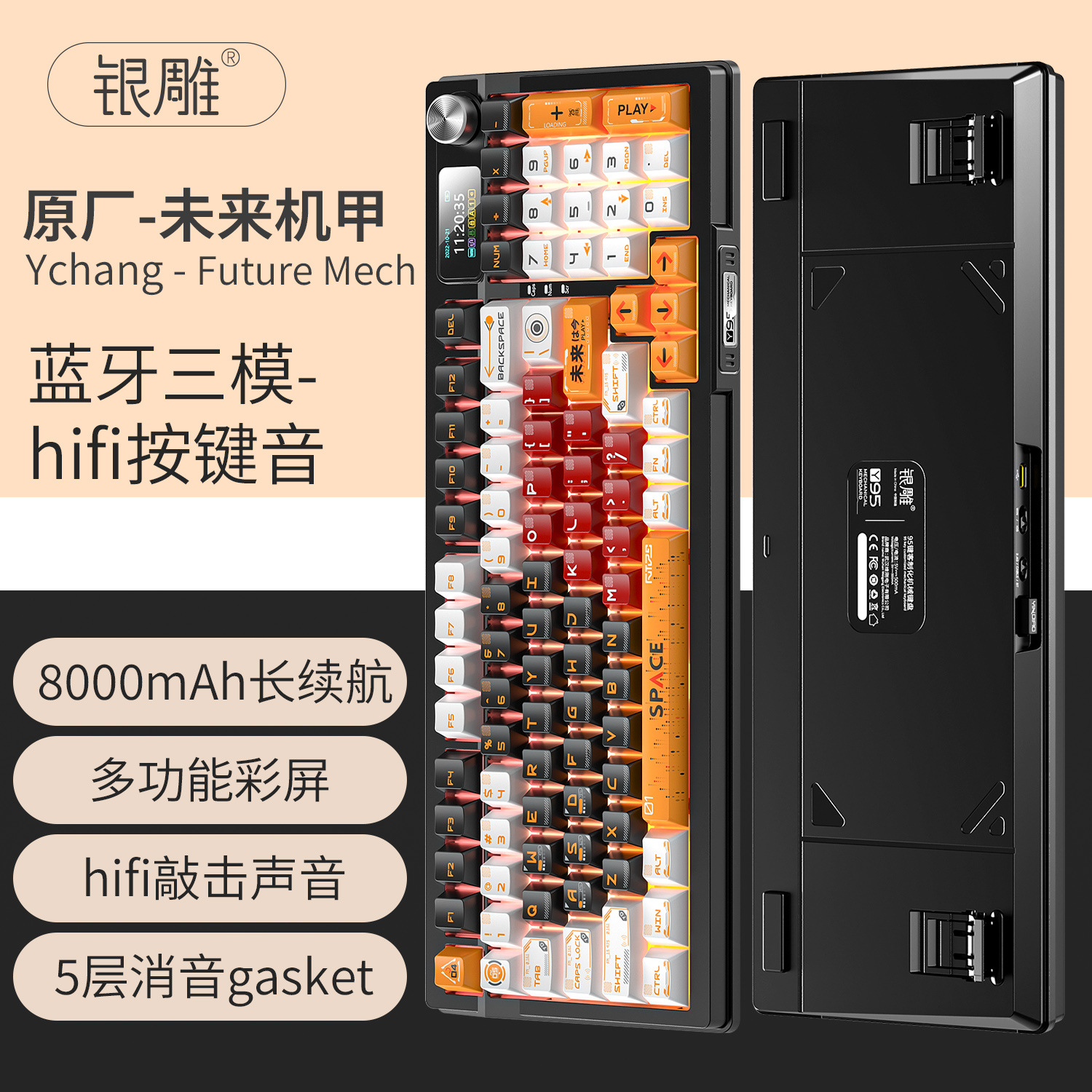 실버 조각 Y95D 3 모드 기계식 키보드 원래 5 면 승화 무선 블루투스 98 RGB 유선 키보드