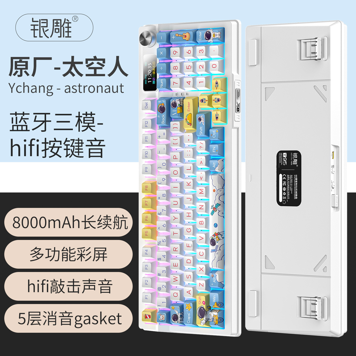 • 우주 비행사 키캡 + Haixia 스위치 + 3모드 흰색 키보드