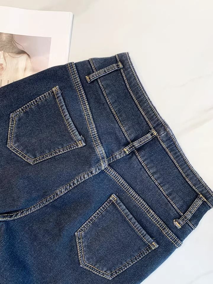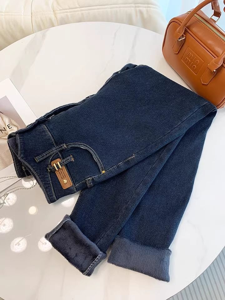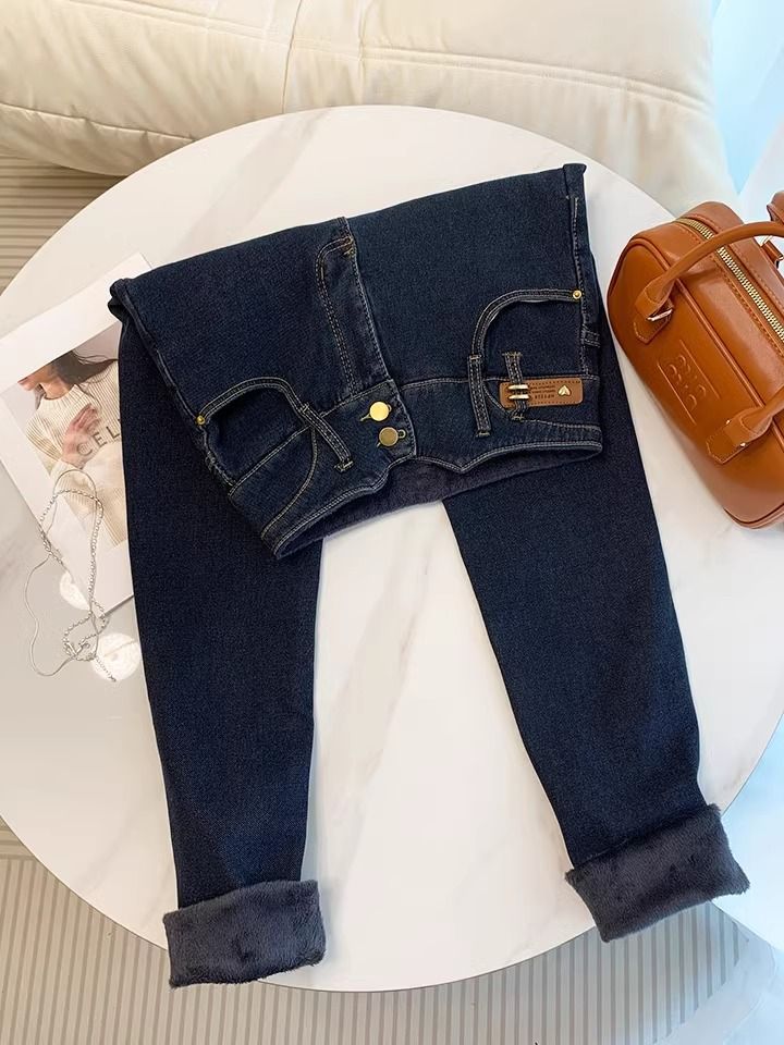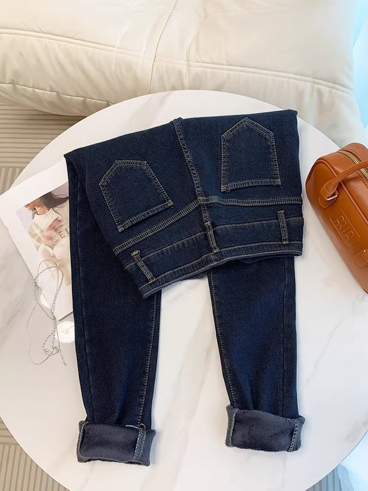 초보온 플러스 벨벳 안감 두꺼운 여성용 청바지 2025 겨울 신상 하이웨이스트 슬림핏 타이트 나인포인트 부츠컷 팬츠스토어 가기
