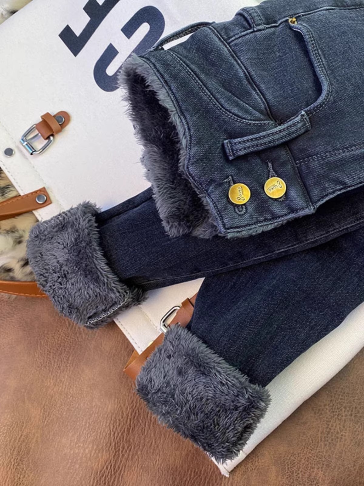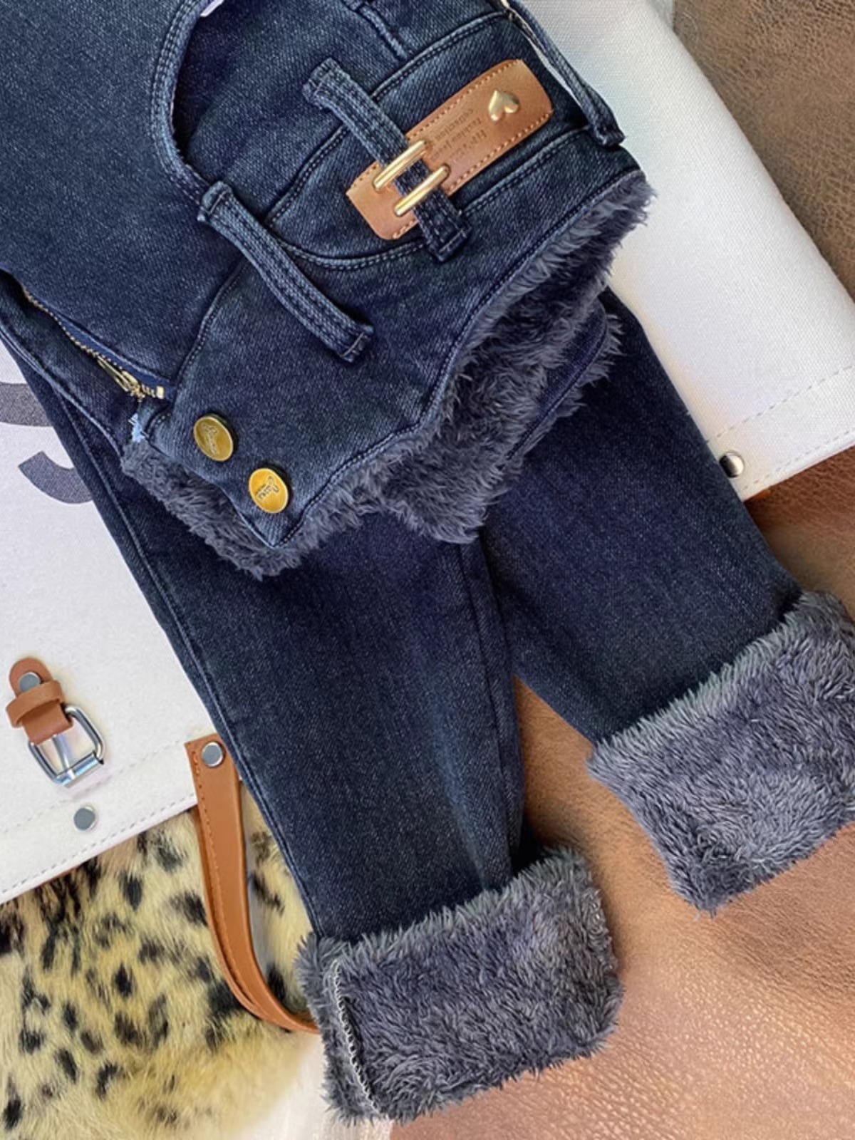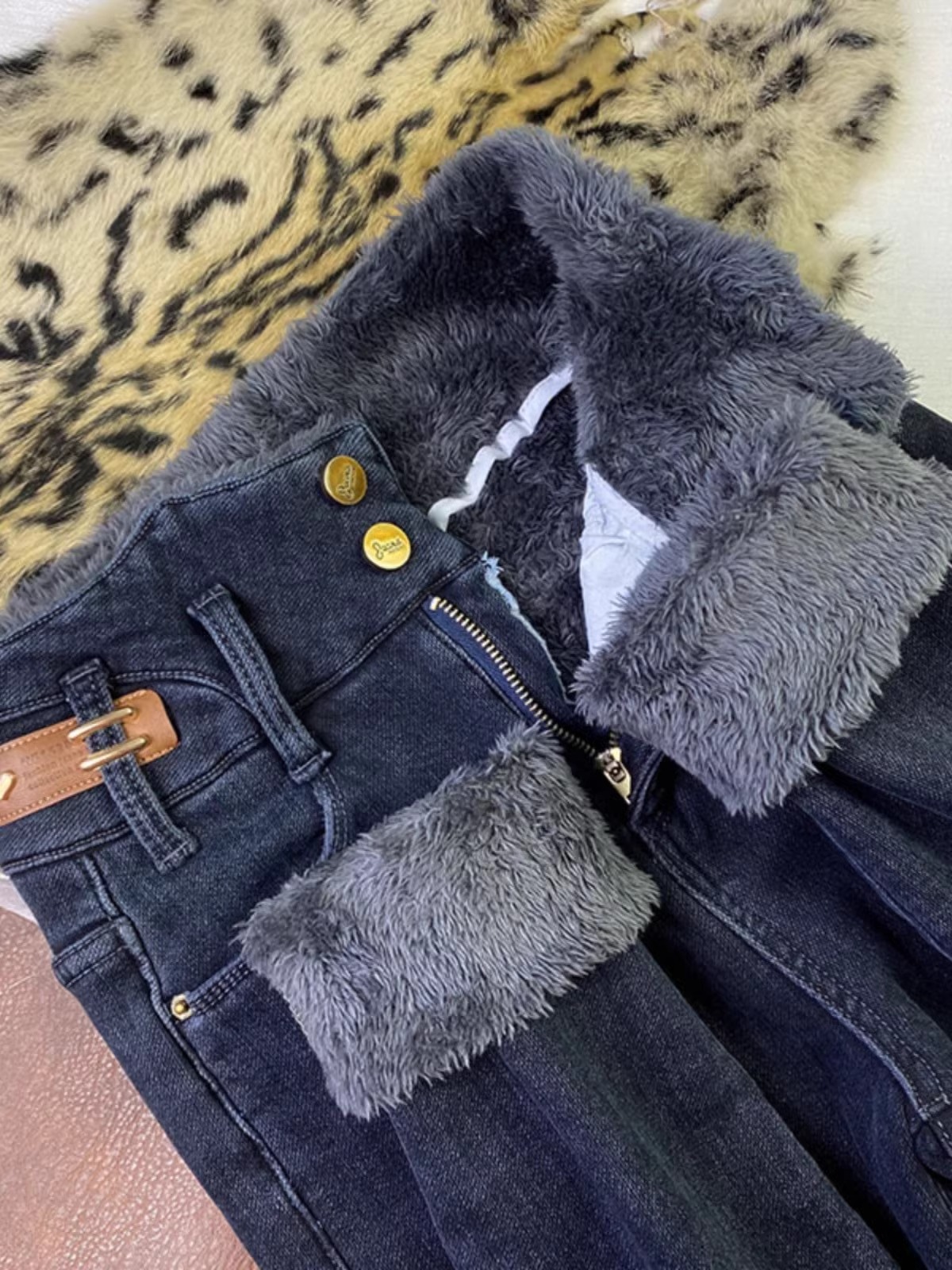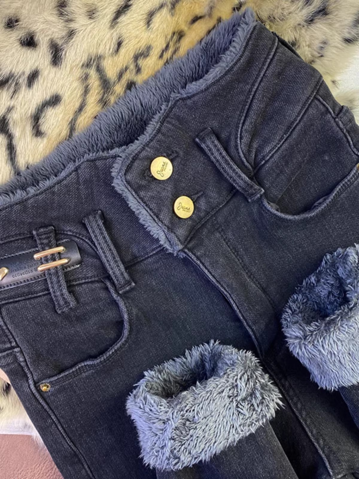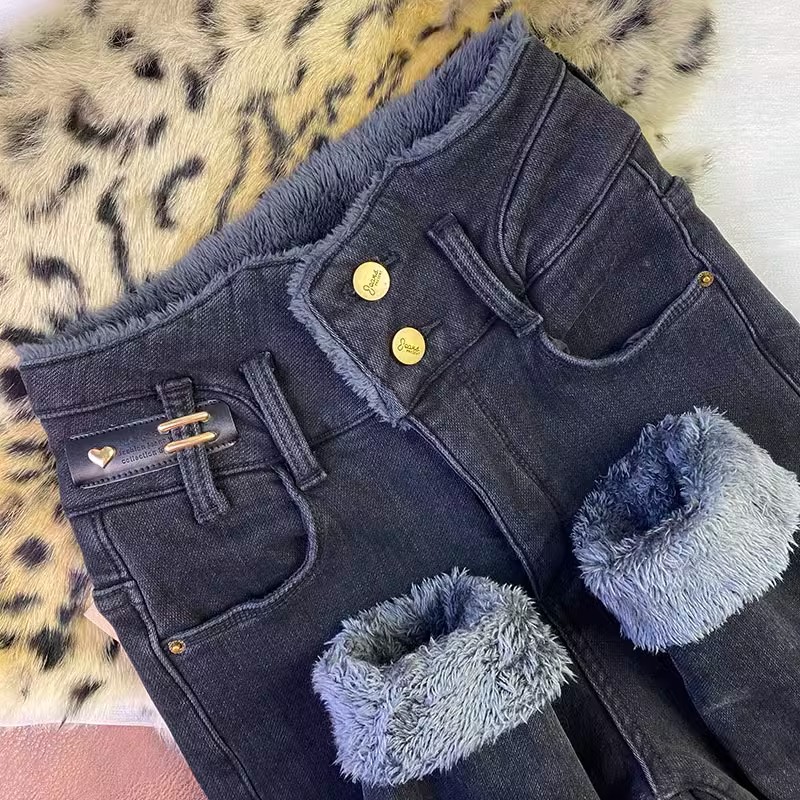 높은 허리 기모 두꺼운 스키니 청바지 여성의 2024 년 겨울 새 양모 스키니 연필 바지스토어 가기