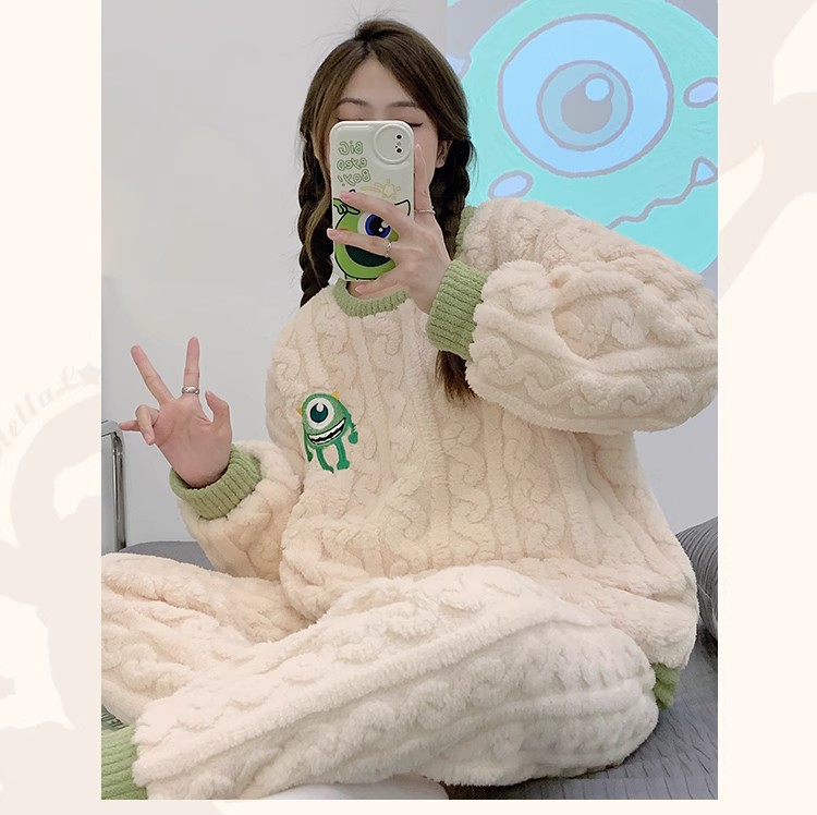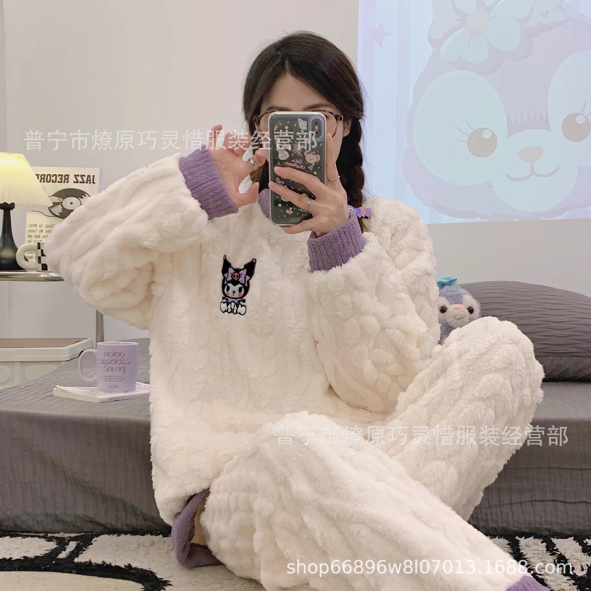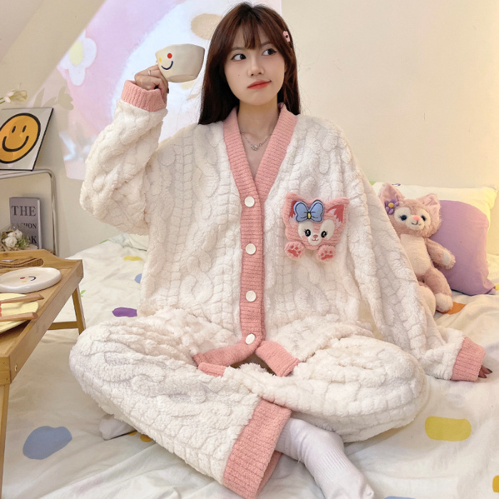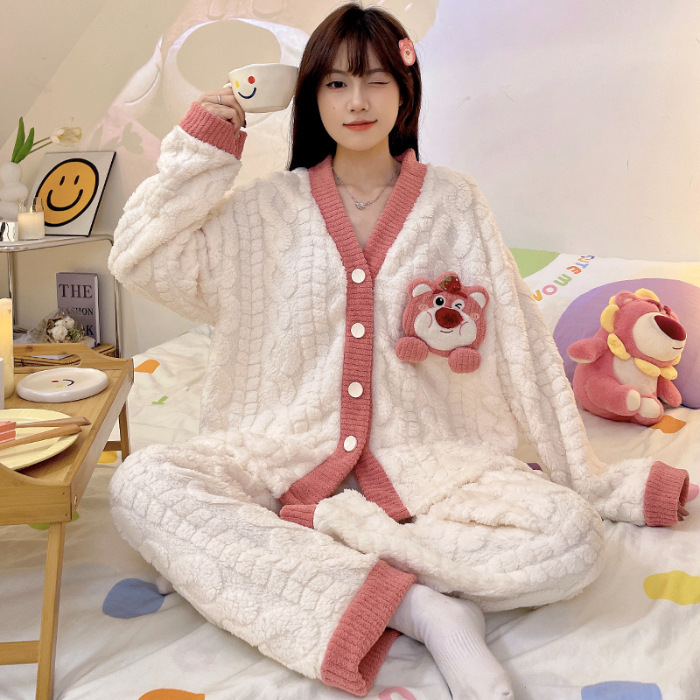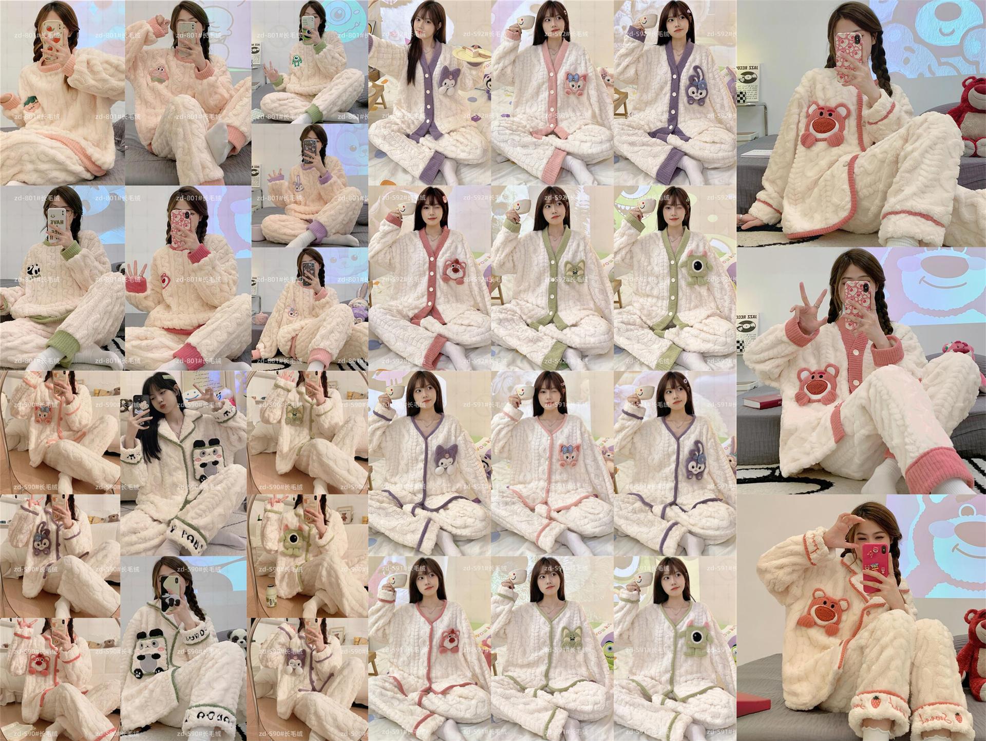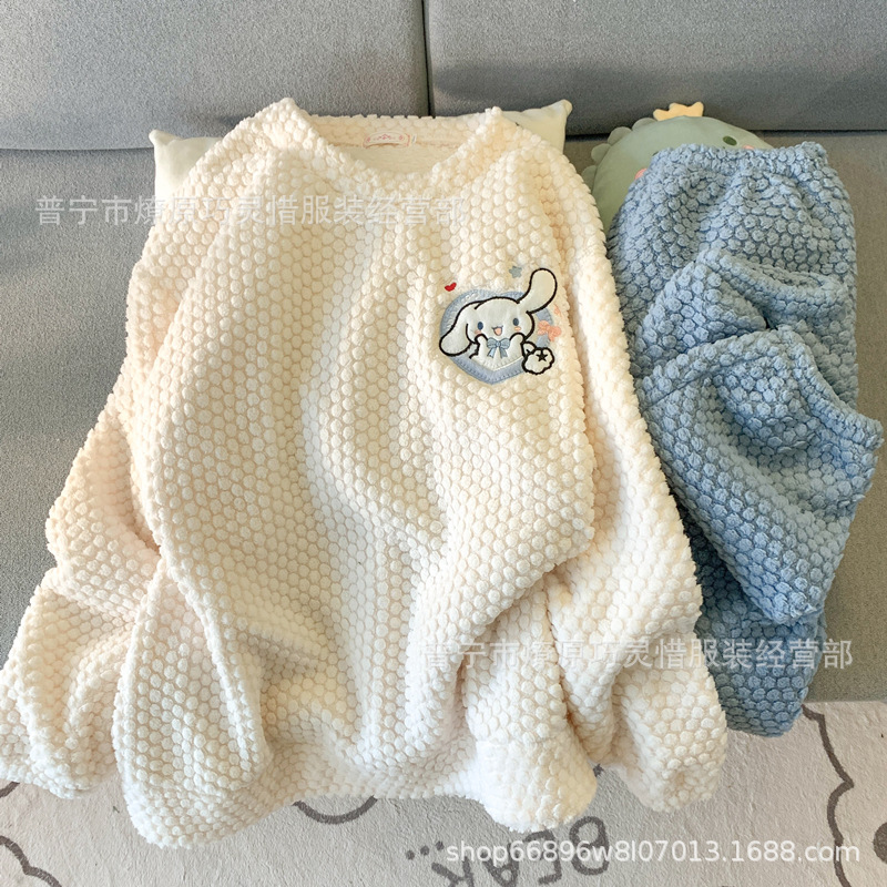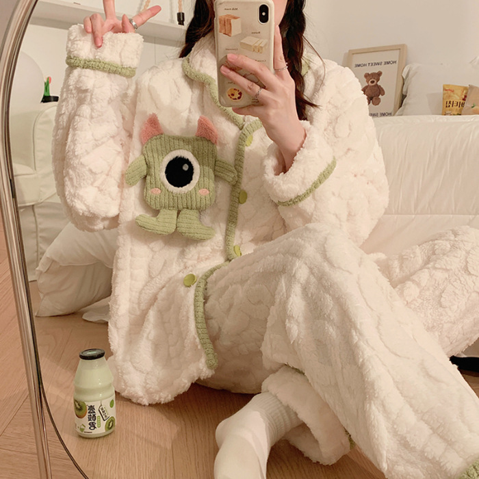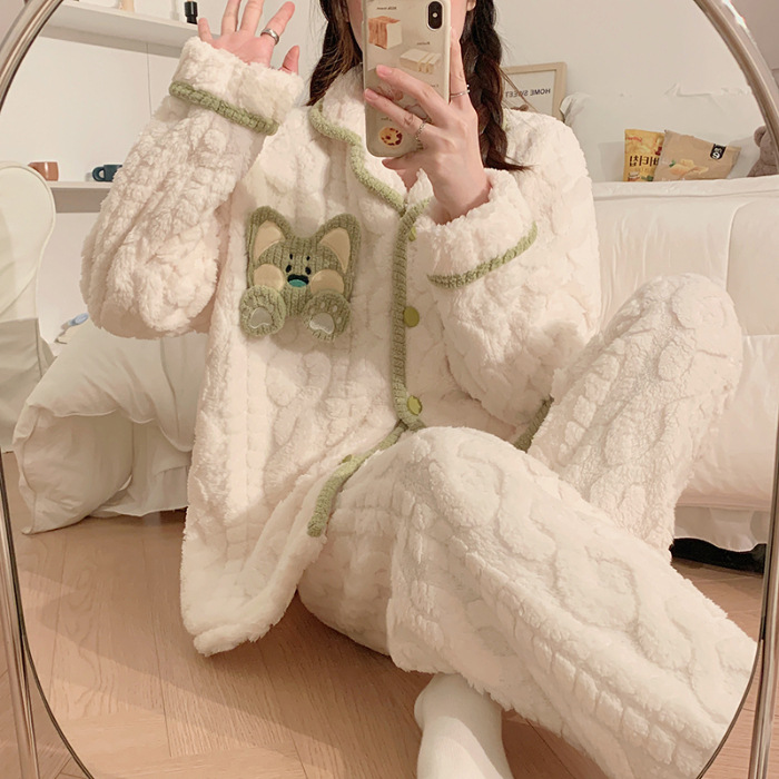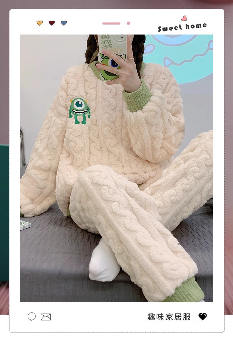 산호 벨벳 파자마 여성의 겨울 기모 두꺼운 따뜻한 플란넬 사이버 연예인 Ins 스타일 2024 새 홈 의류스토어 가기