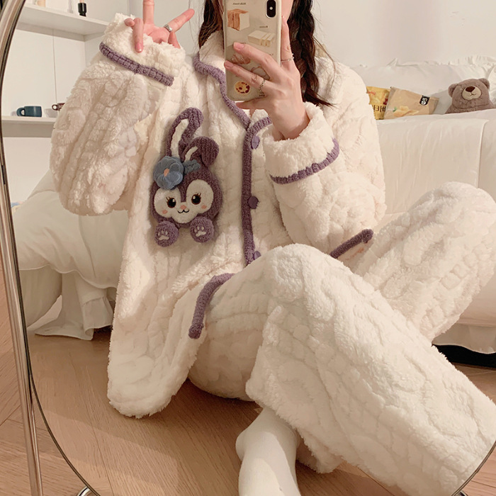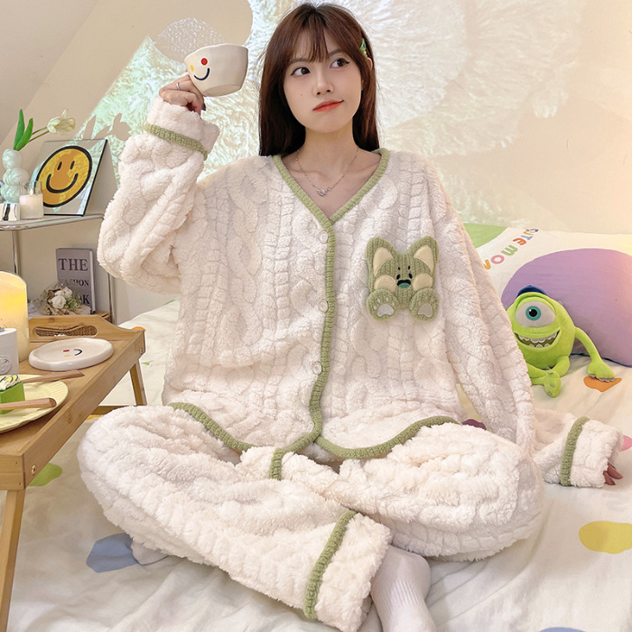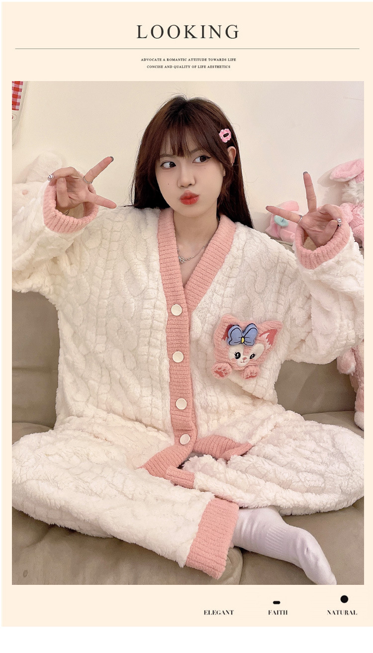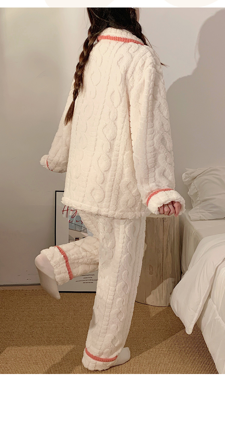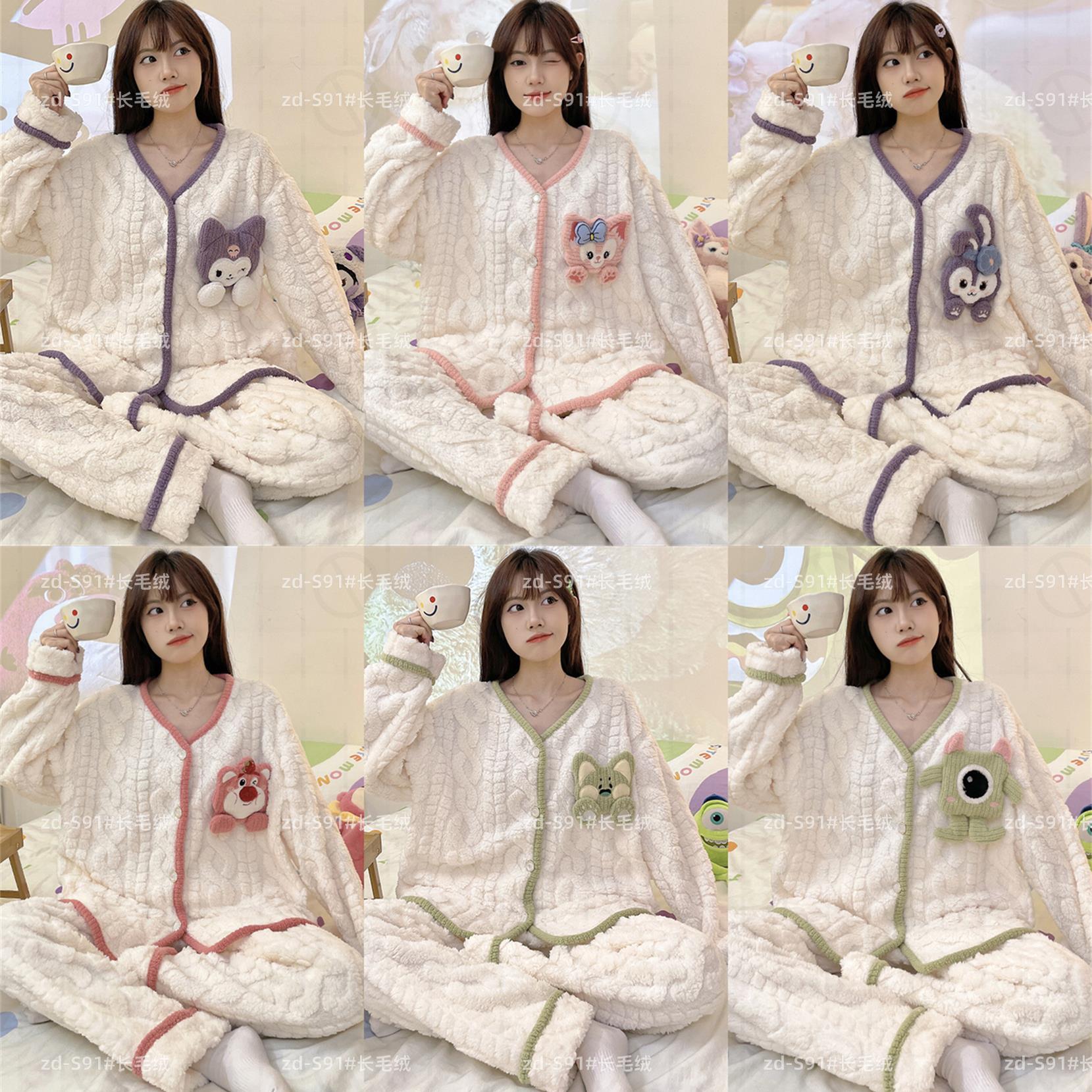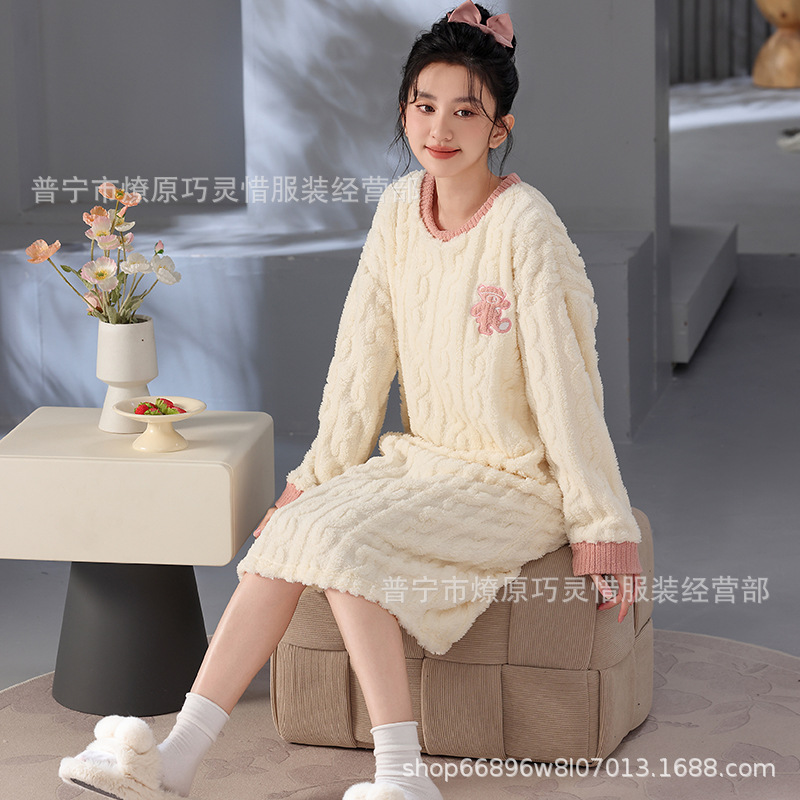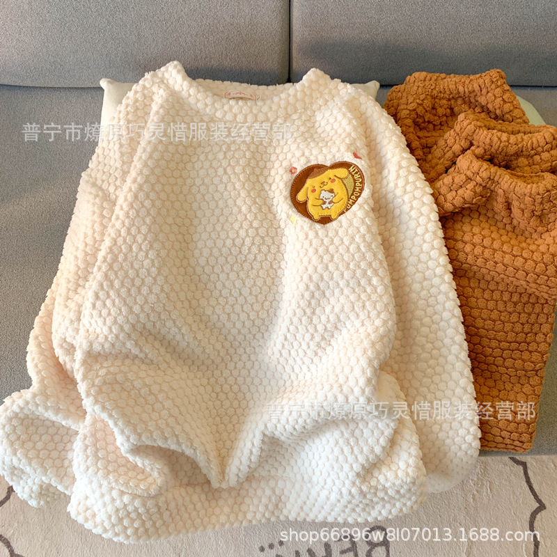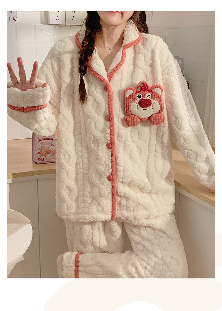 산호 벨벳 파자마 여성의 겨울 기모 두꺼운 따뜻한 플란넬 사이버 연예인 Ins 스타일 2024 새 홈 의류스토어 가기