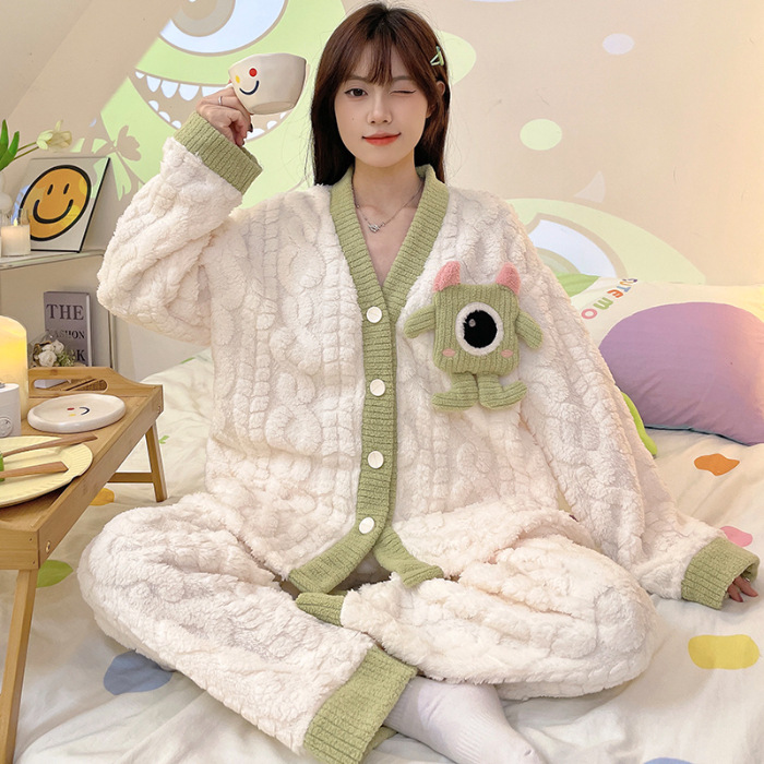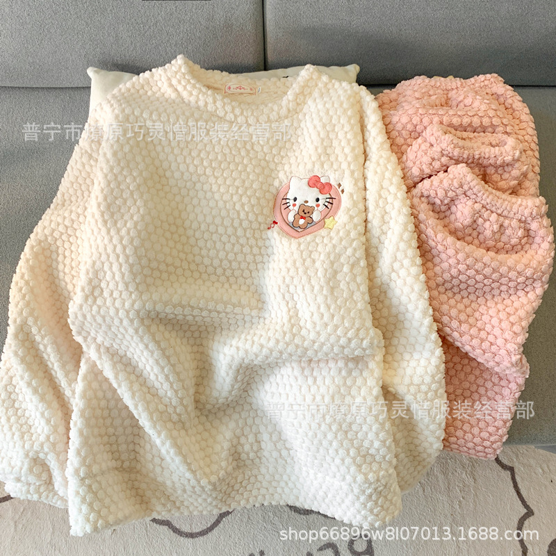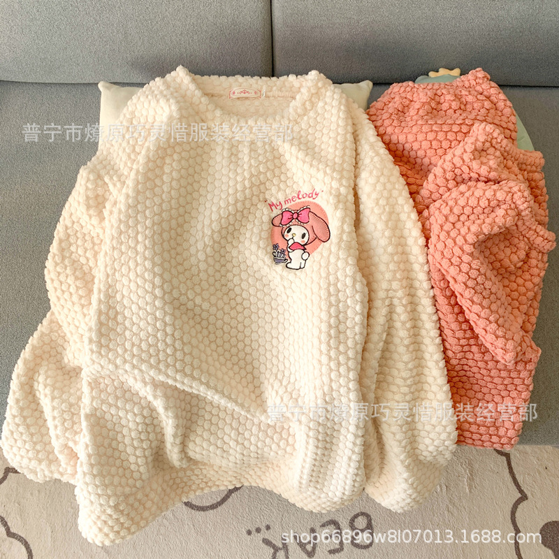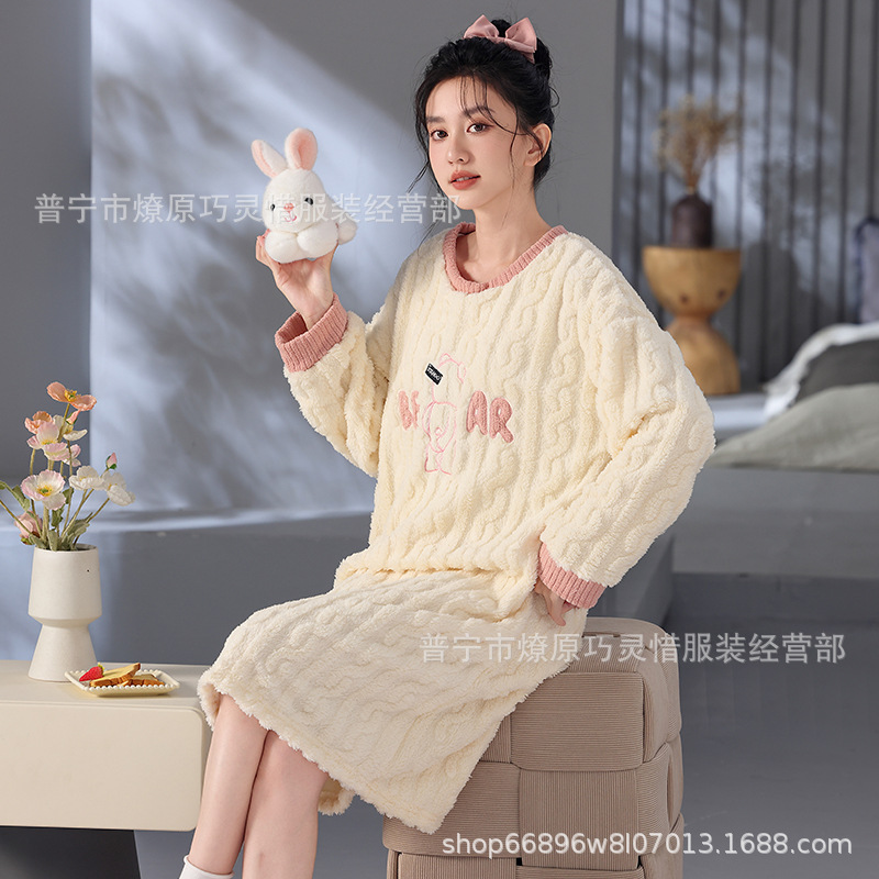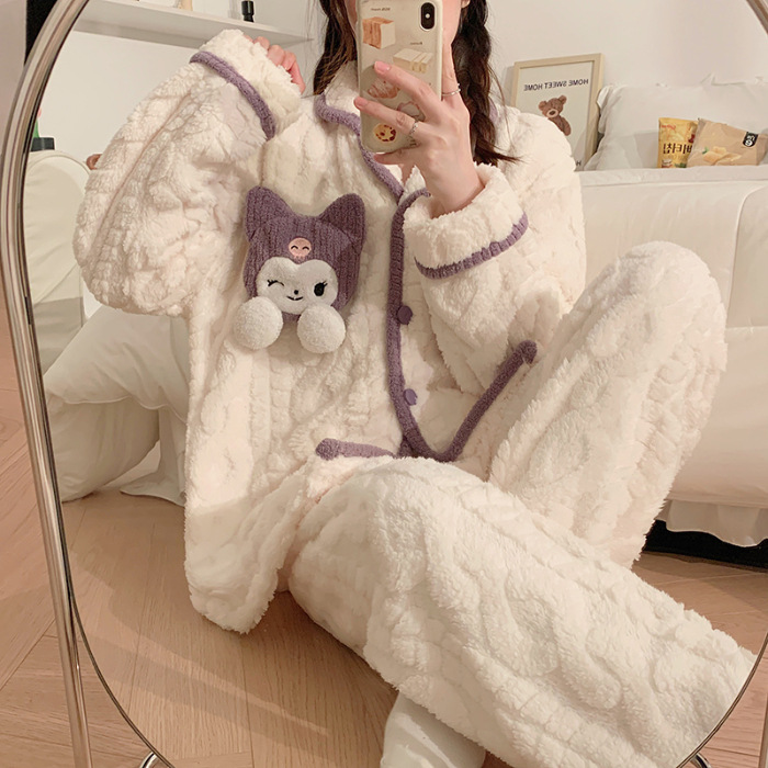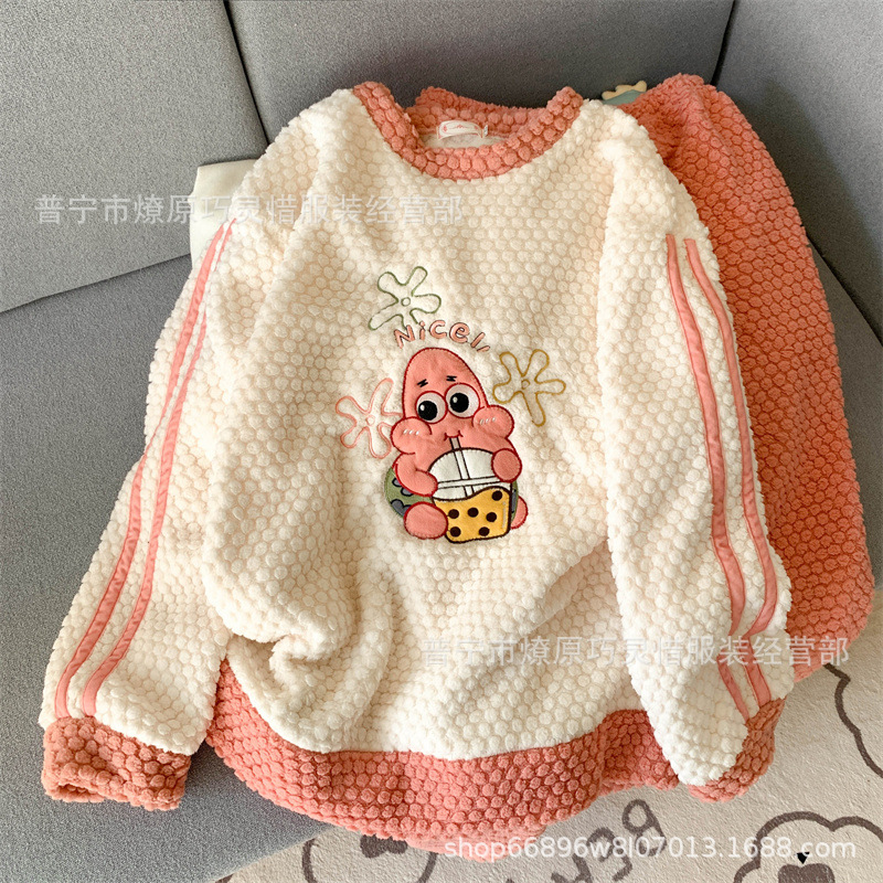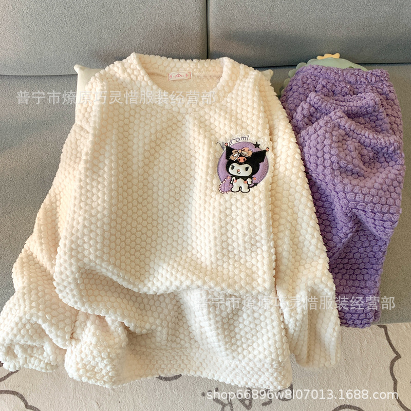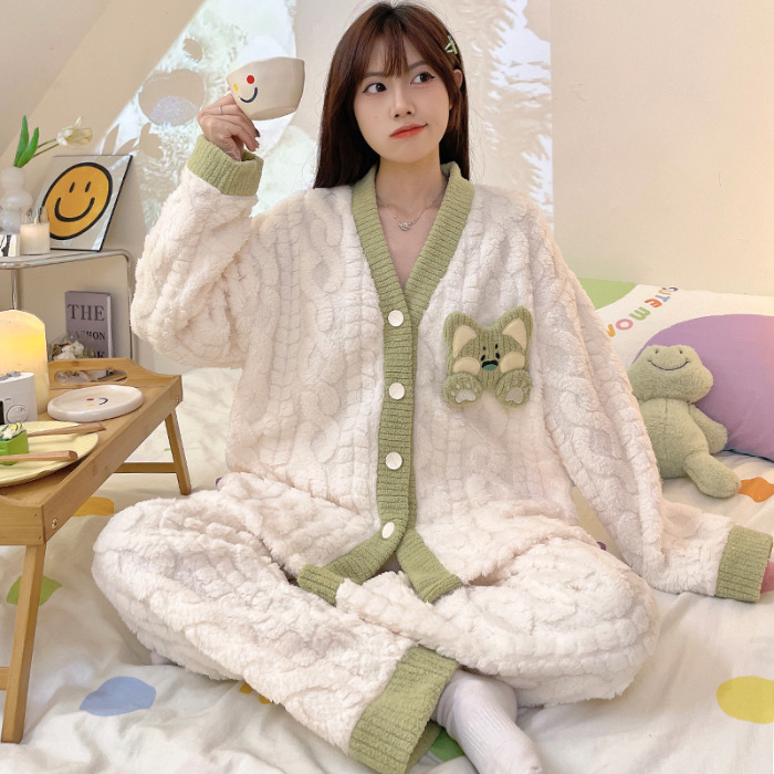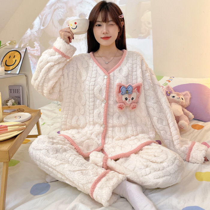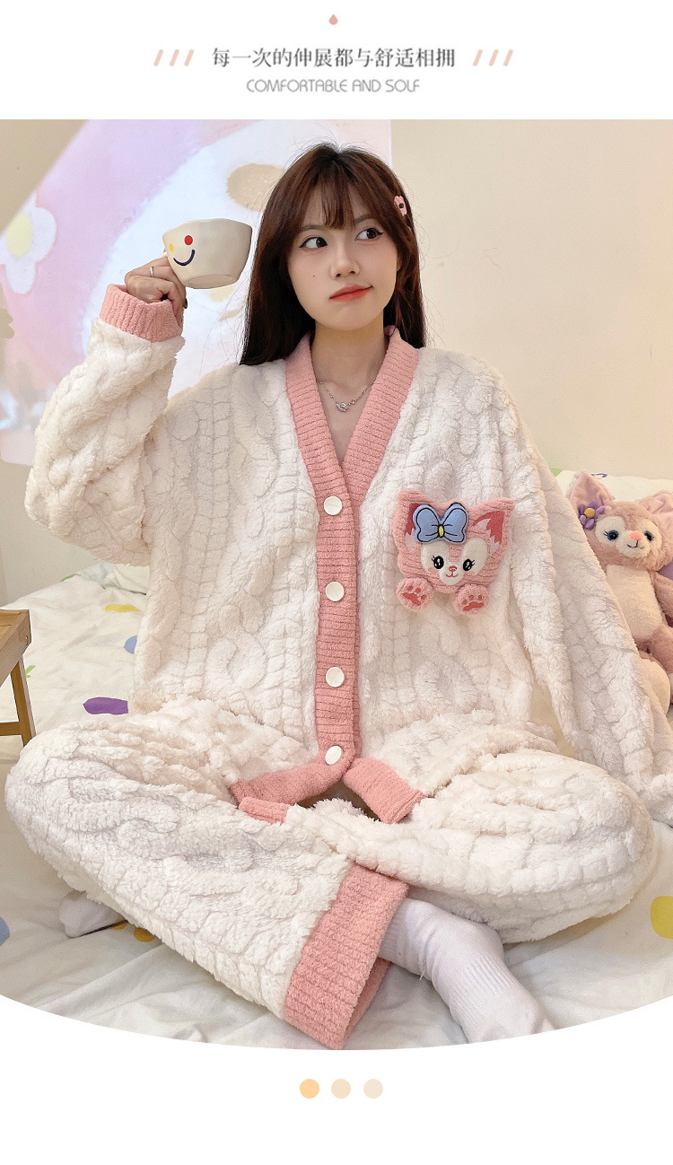 산호 벨벳 파자마 여성의 겨울 기모 두꺼운 따뜻한 플란넬 사이버 연예인 Ins 스타일 2024 새 홈 의류스토어 가기