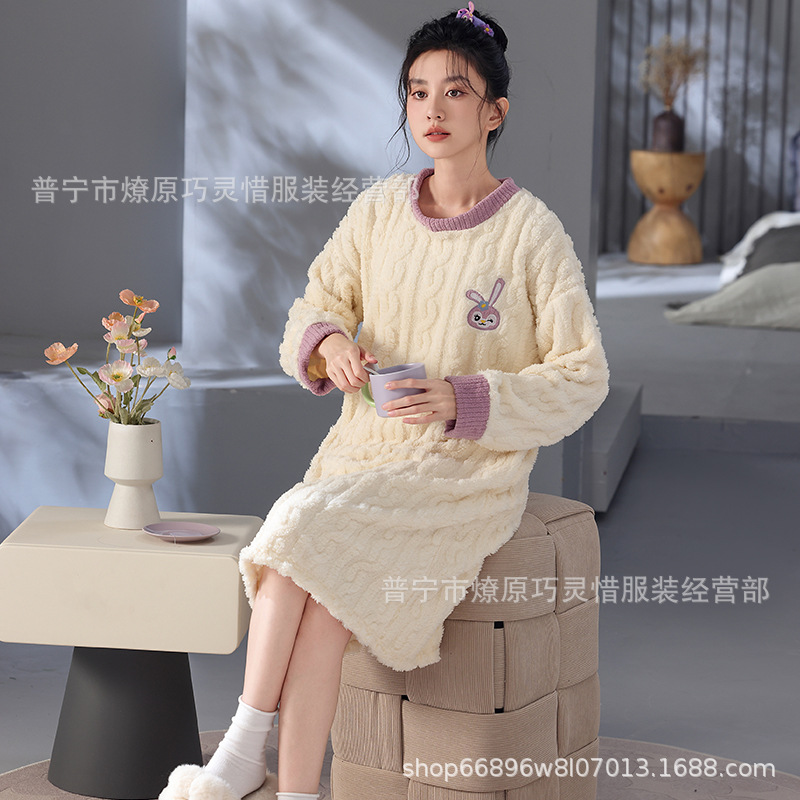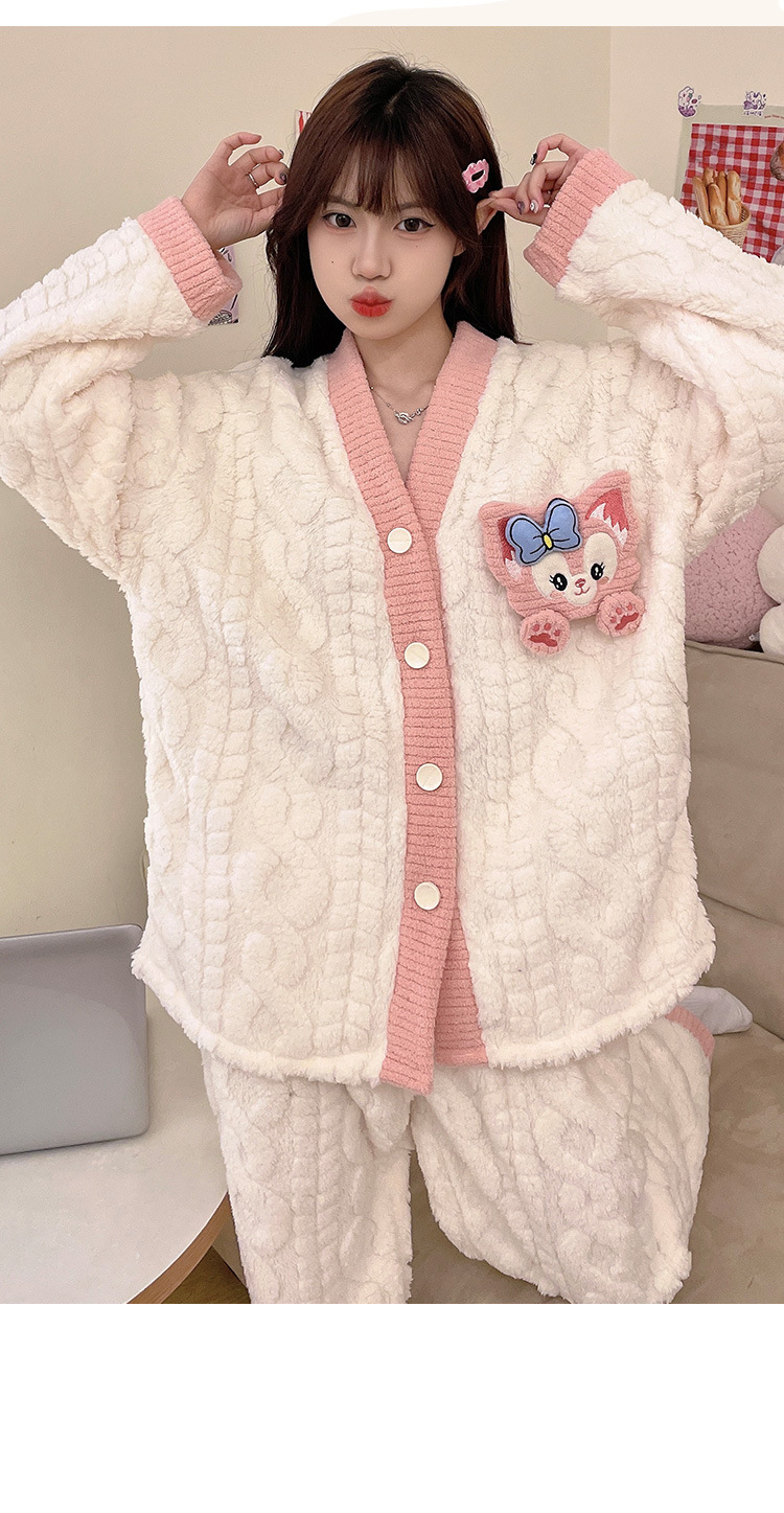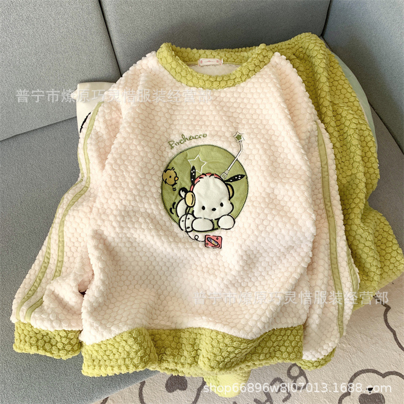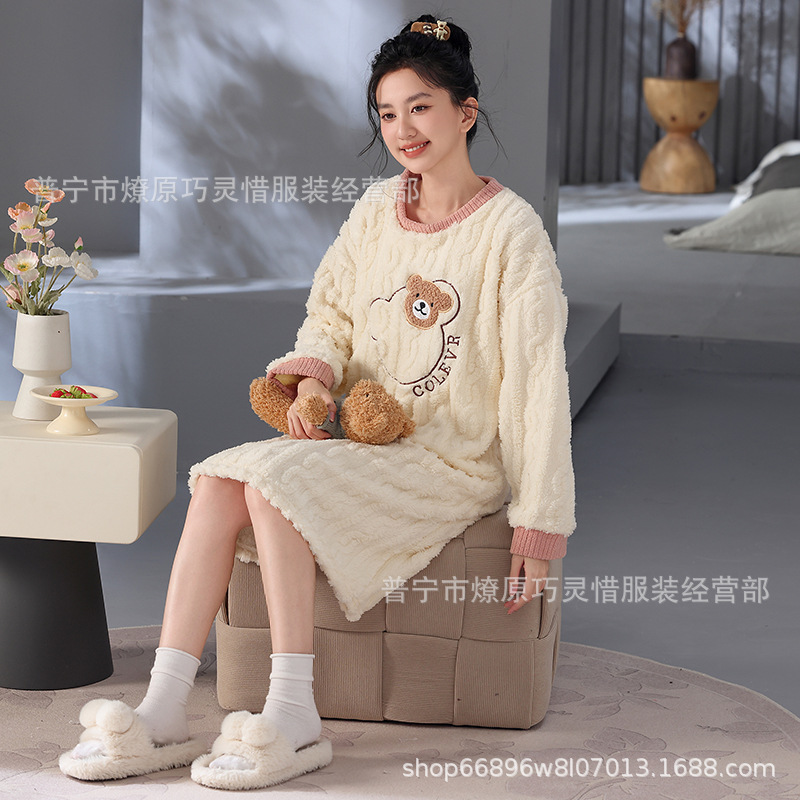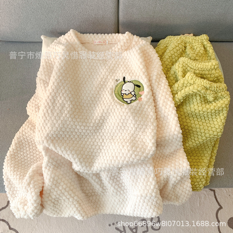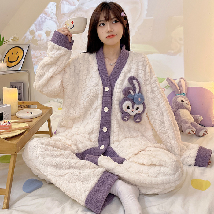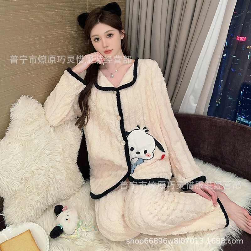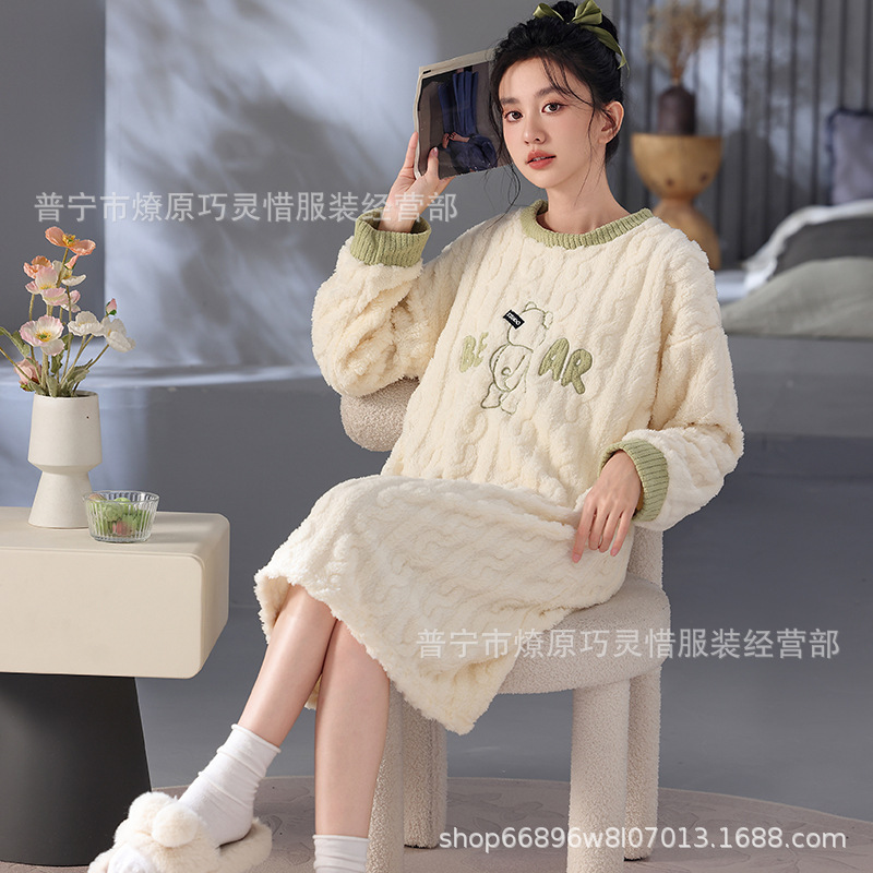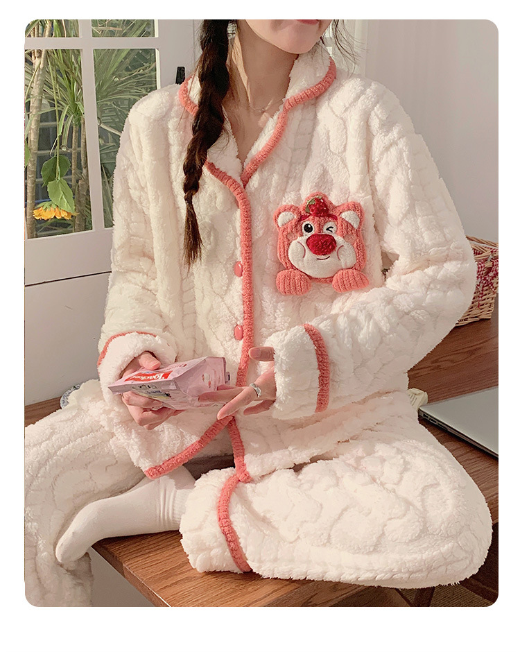 산호 벨벳 파자마 여성의 겨울 기모 두꺼운 따뜻한 플란넬 사이버 연예인 Ins 스타일 2024 새 홈 의류스토어 가기