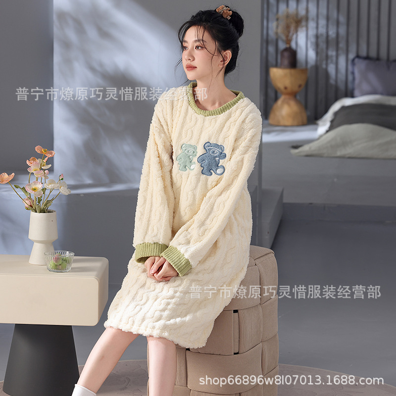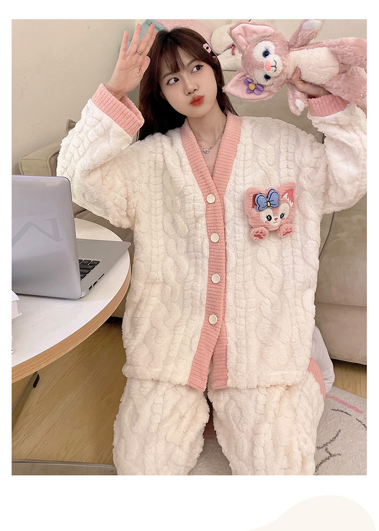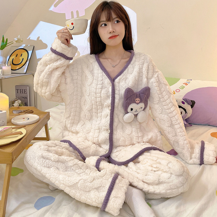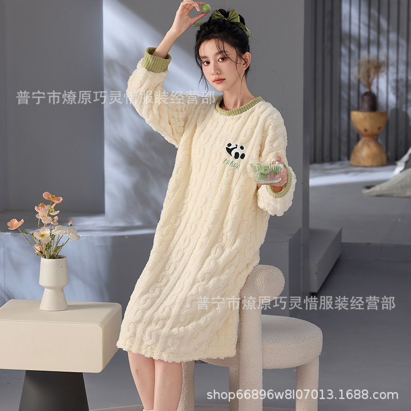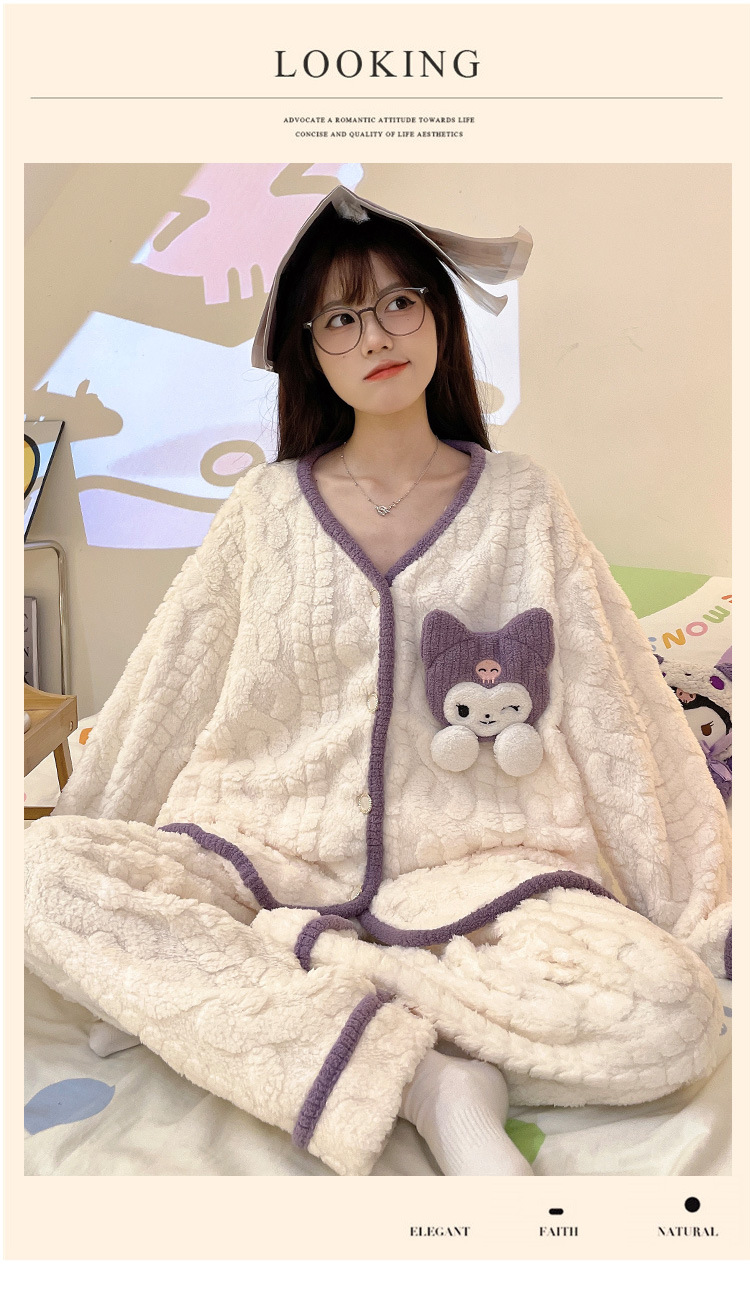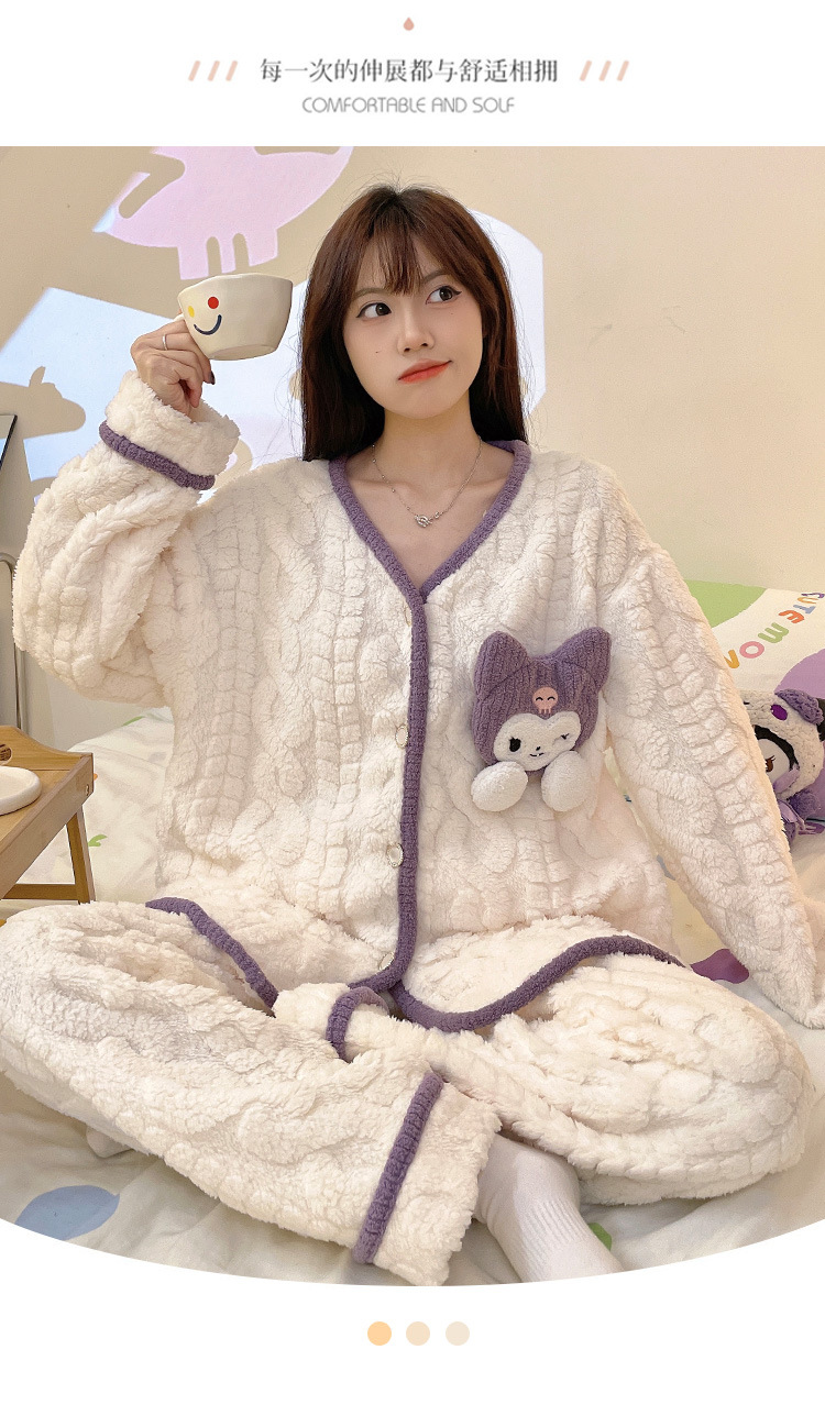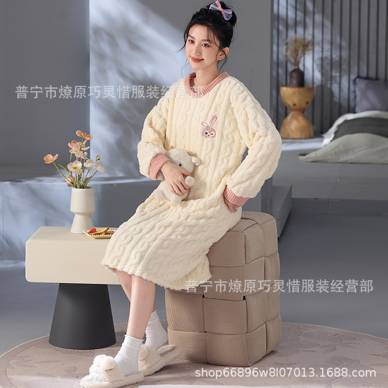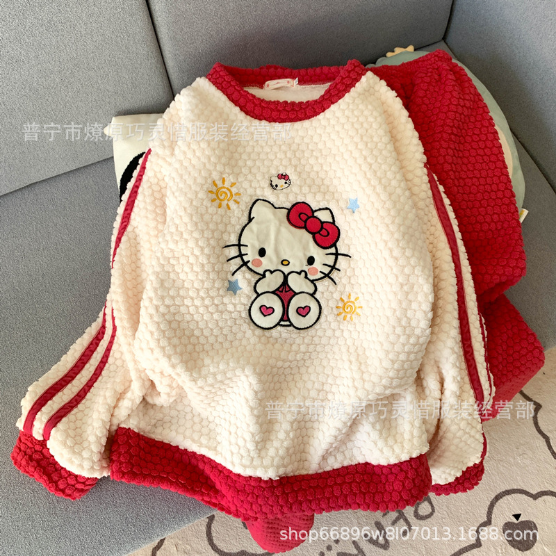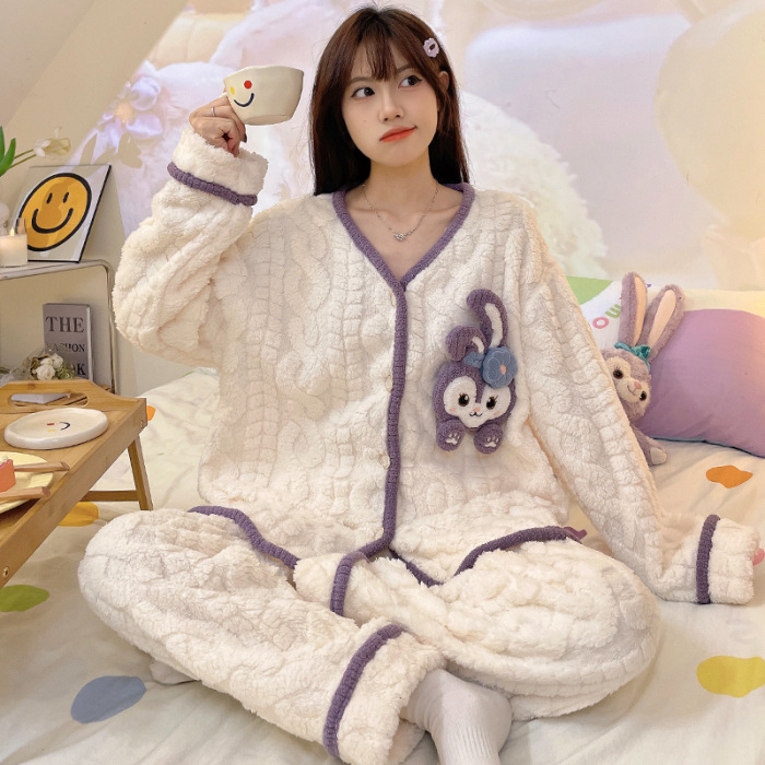 산호 벨벳 파자마 여성의 겨울 기모 두꺼운 따뜻한 플란넬 사이버 연예인 Ins 스타일 2024 새 홈 의류스토어 가기