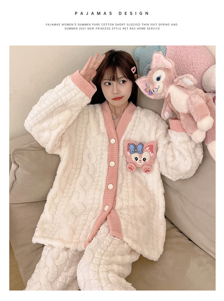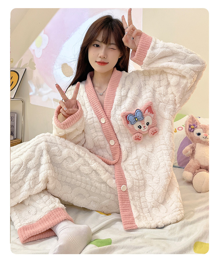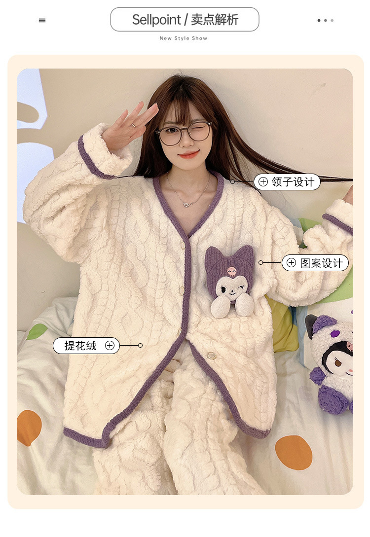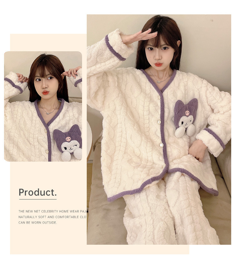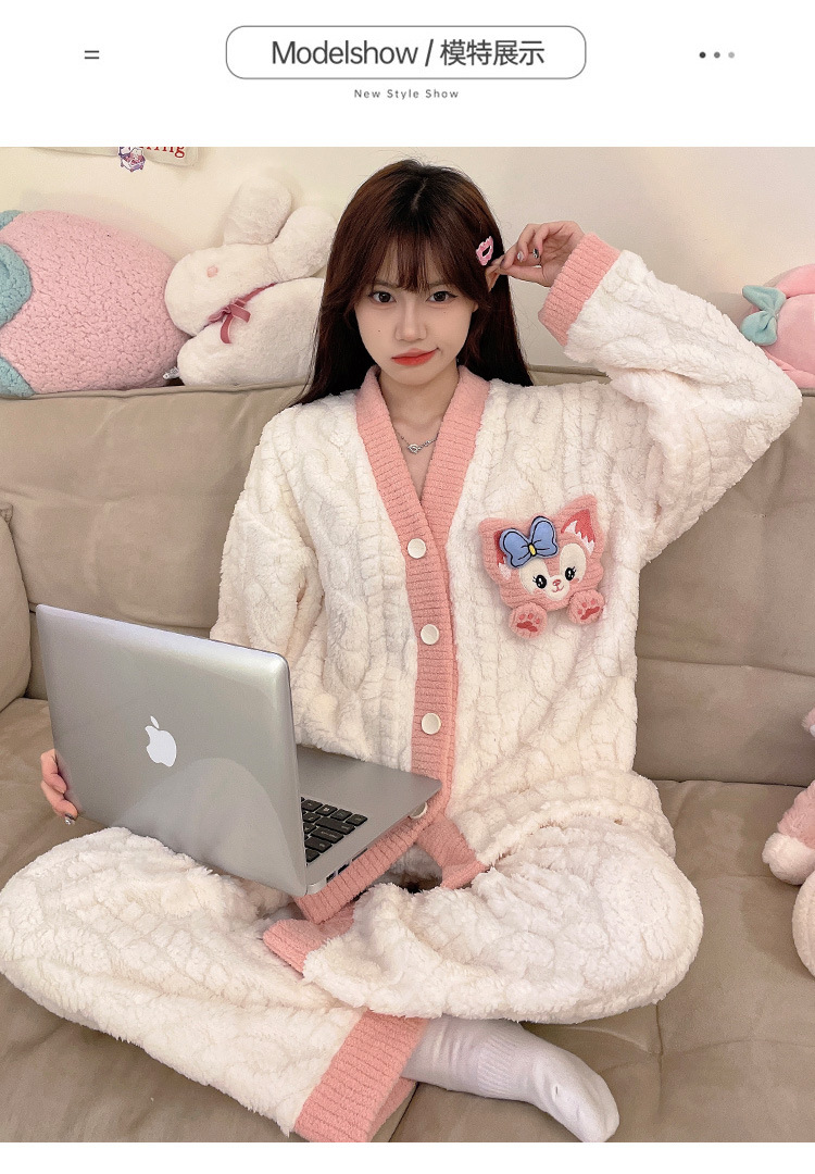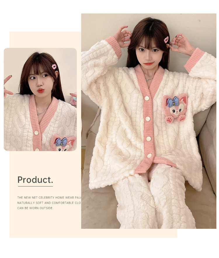 산호 벨벳 파자마 여성의 겨울 기모 두꺼운 따뜻한 플란넬 사이버 연예인 Ins 스타일 2024 새 홈 의류