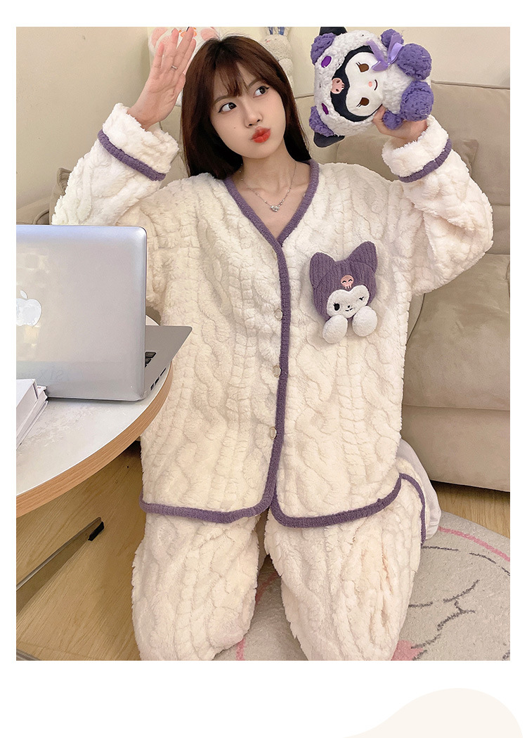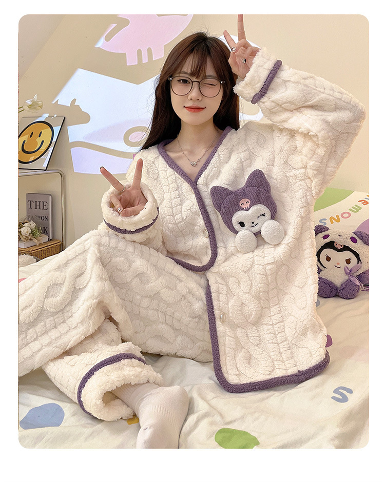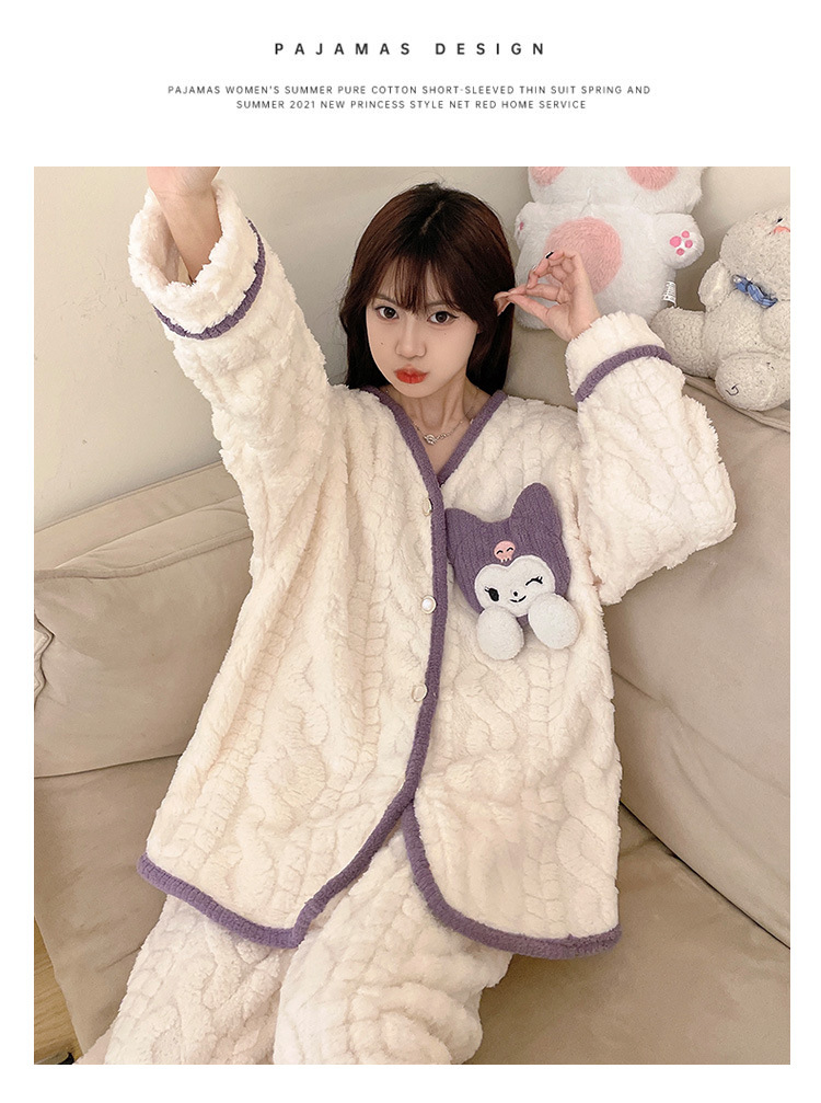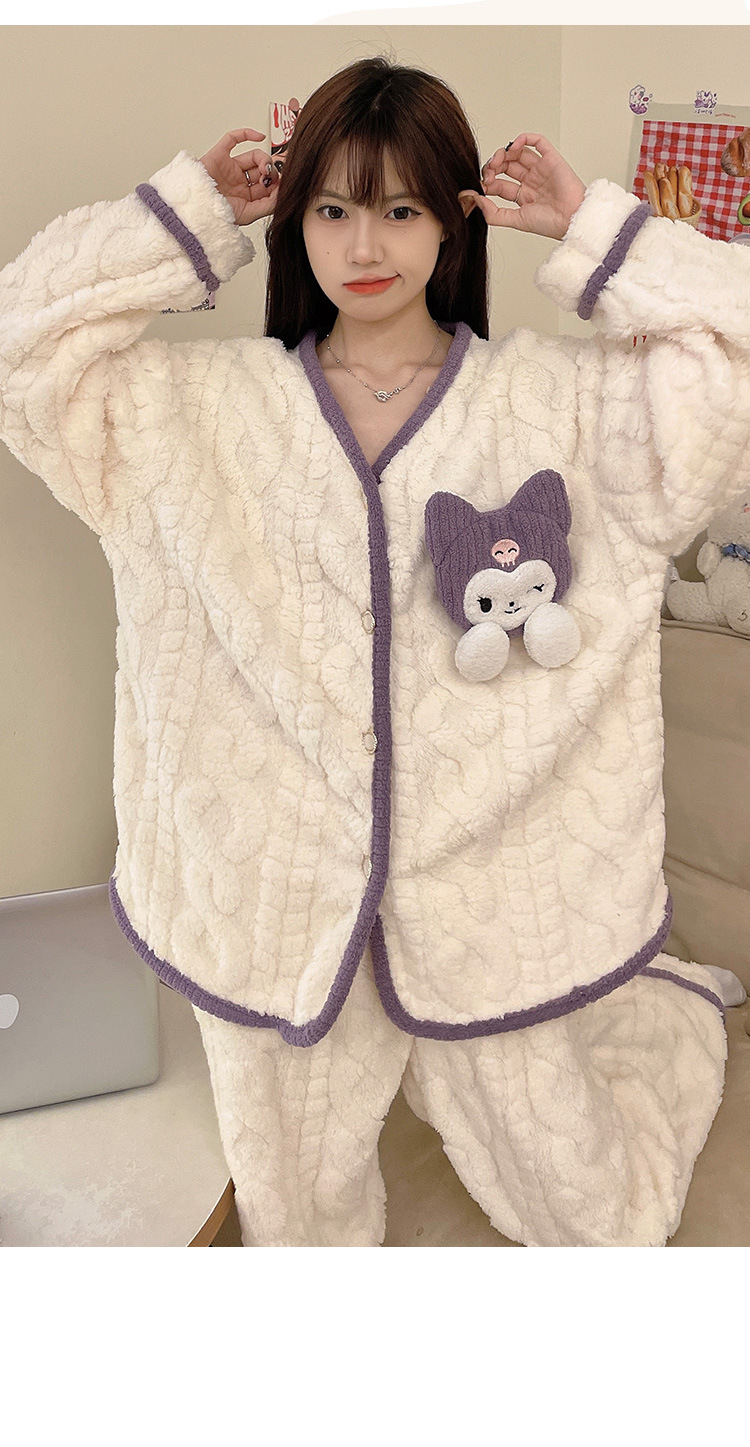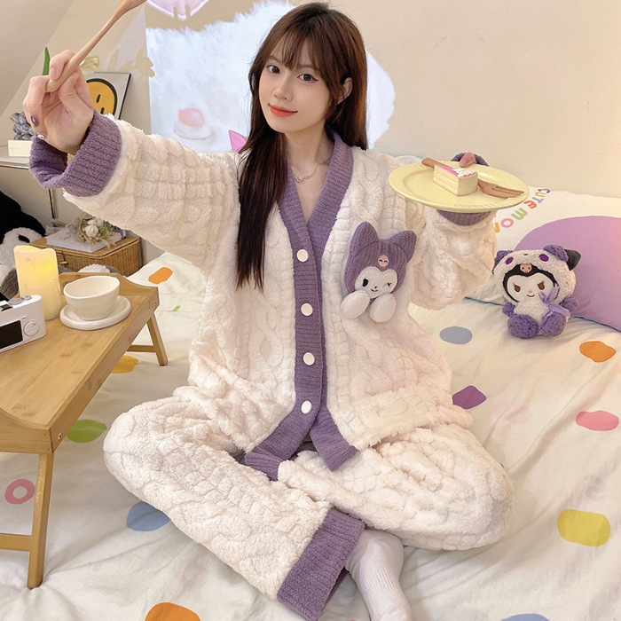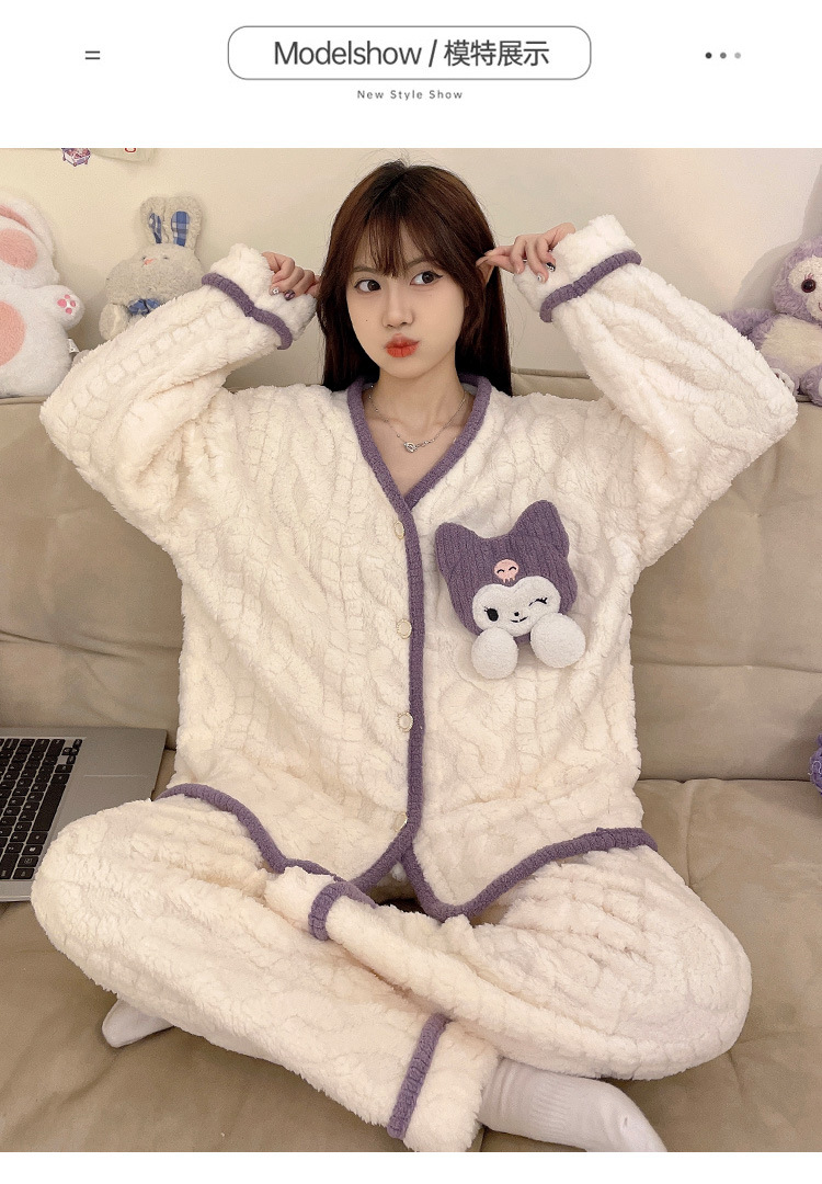 산호 벨벳 파자마 여성의 겨울 기모 두꺼운 따뜻한 플란넬 사이버 연예인 Ins 스타일 2024 새 홈 의류