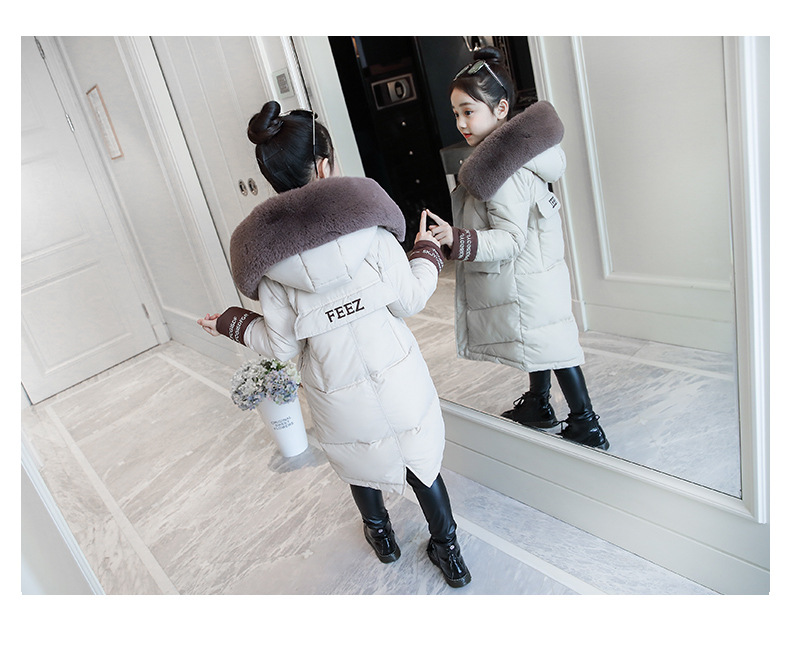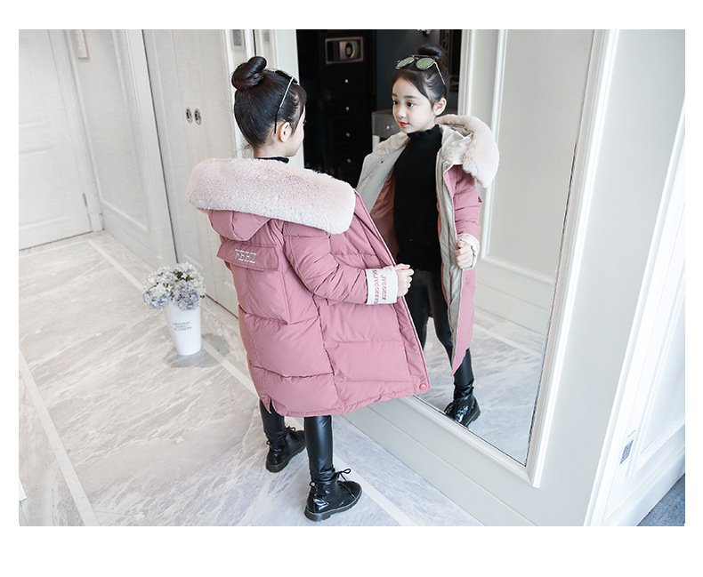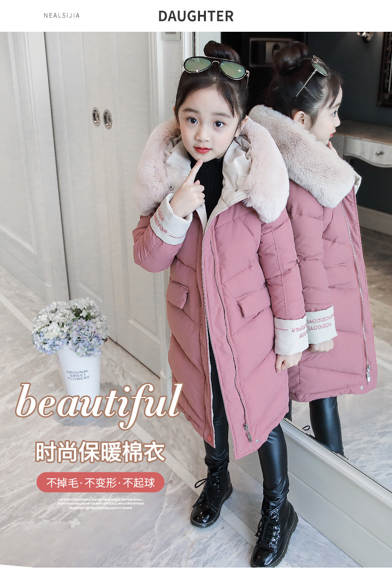 소녀 면 패딩 코트 중간 길이 2024 새 겨울 옷 대형 아동면 패딩 코트 재킷 소녀 한국 스타일 어린이 두꺼운 면 패딩 코트 코트스토어 가기
