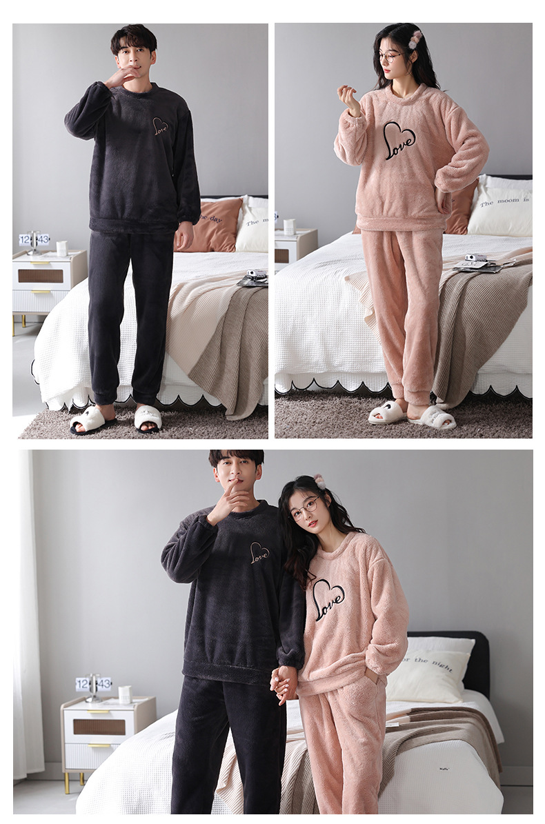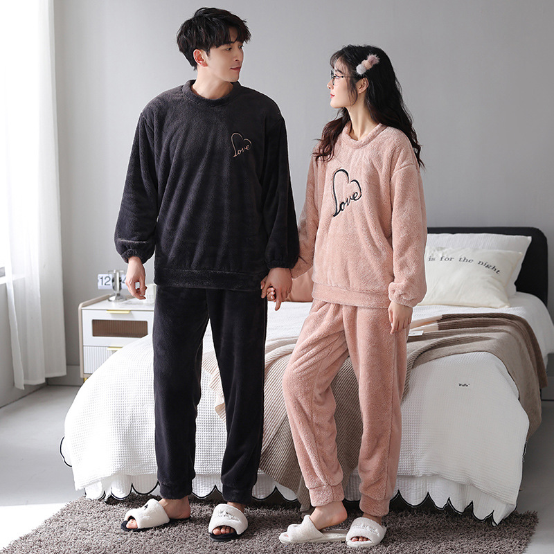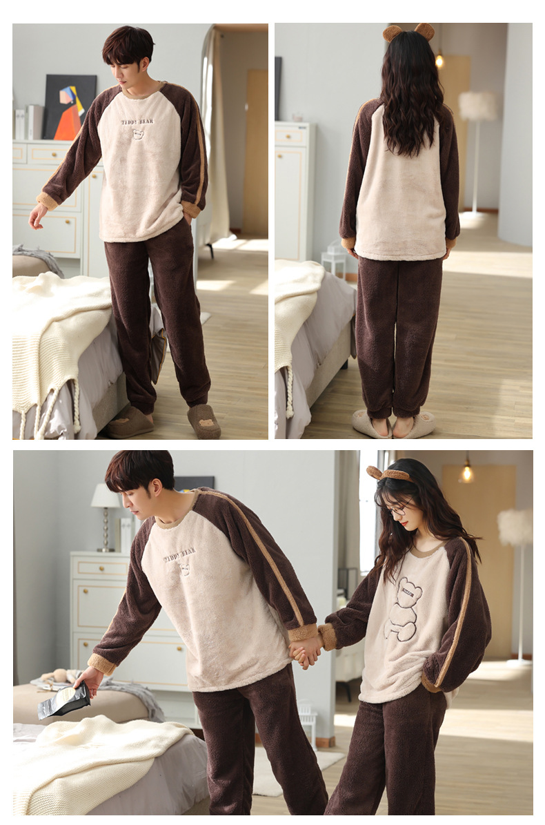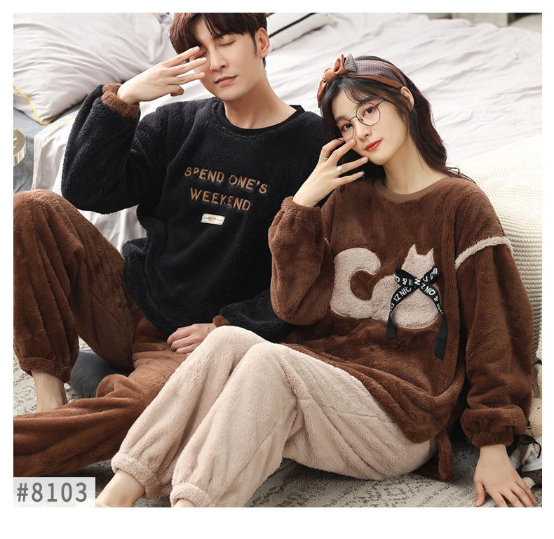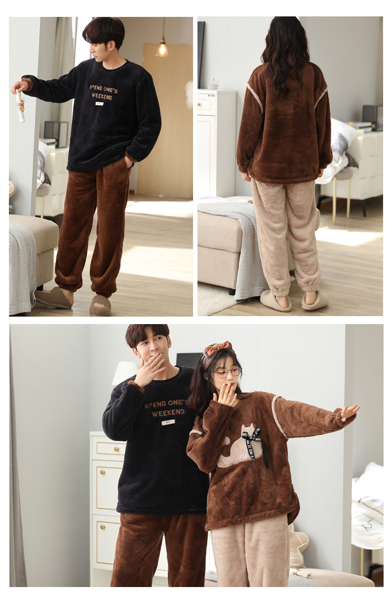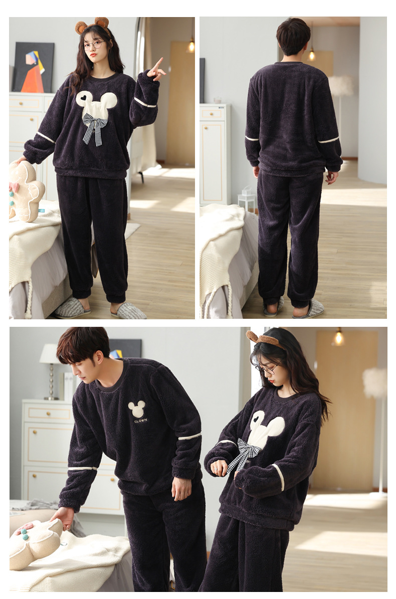 가을과 겨울 만화 커플 산호 양털 파자마 여성 풀오버 캐주얼 귀여운 자수 플란넬 홈 옷 남성 의류스토어 가기