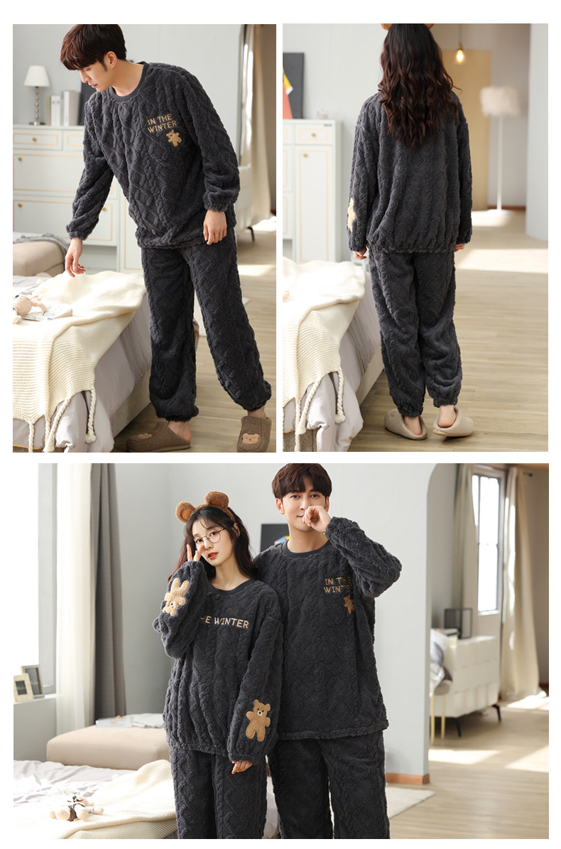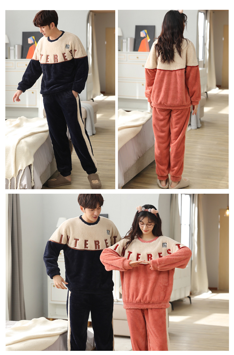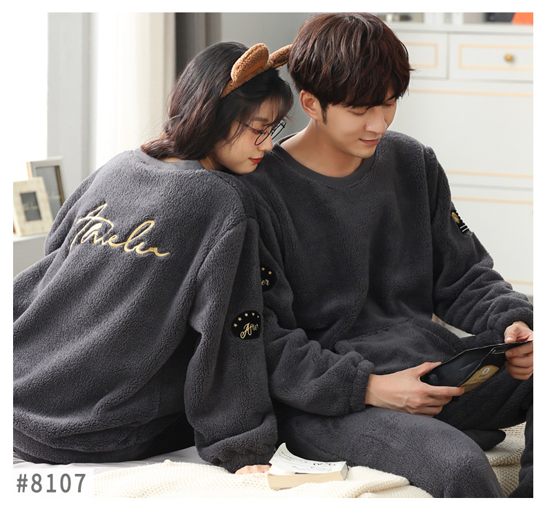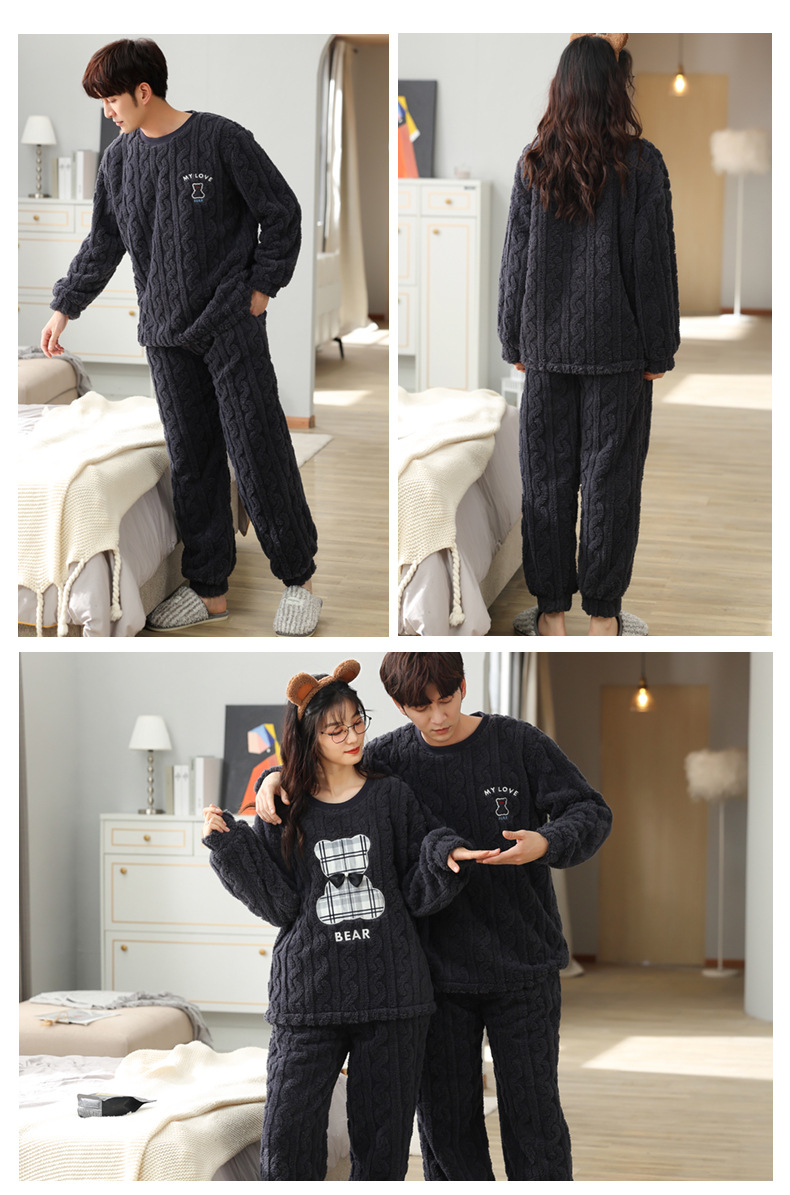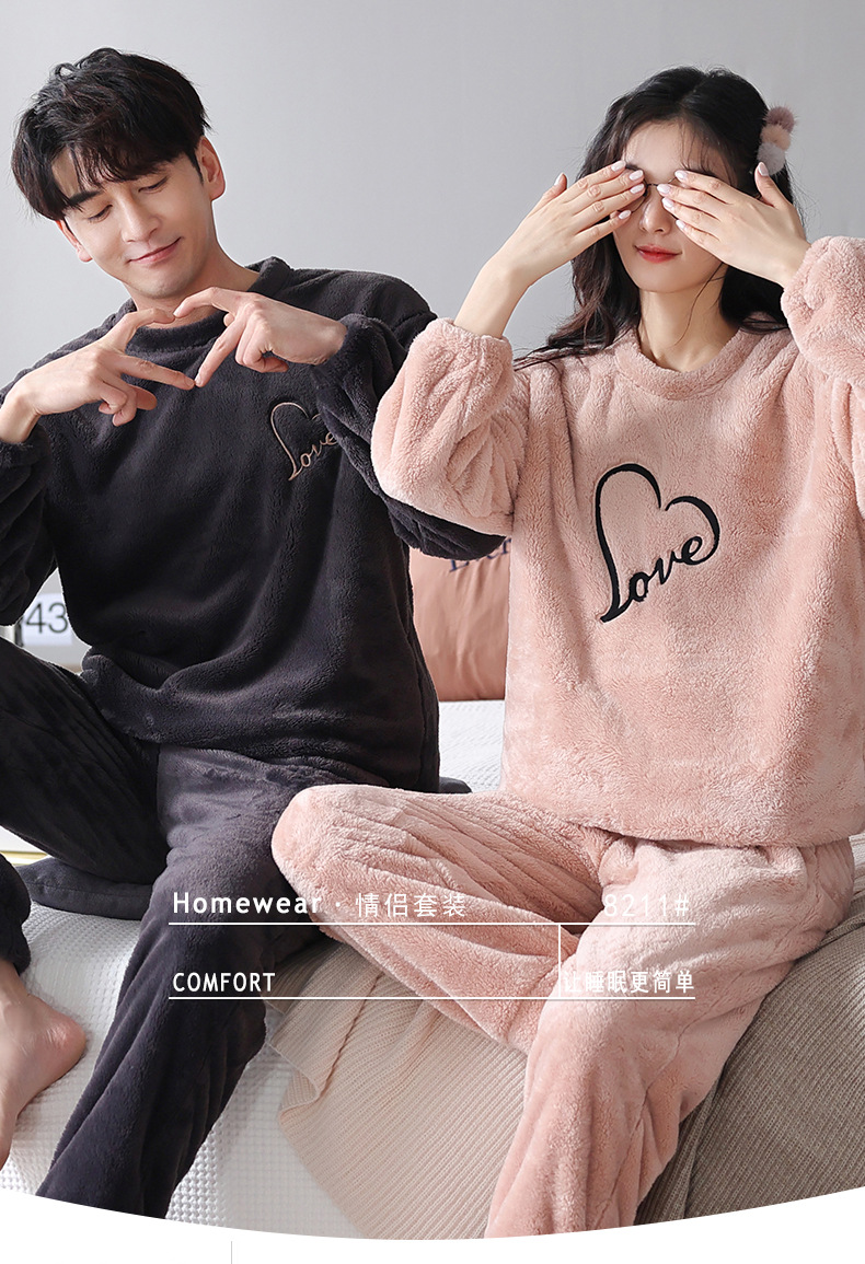 가을과 겨울 만화 커플 산호 양털 파자마 여성 풀오버 캐주얼 귀여운 자수 플란넬 홈 옷 남성 의류스토어 가기
