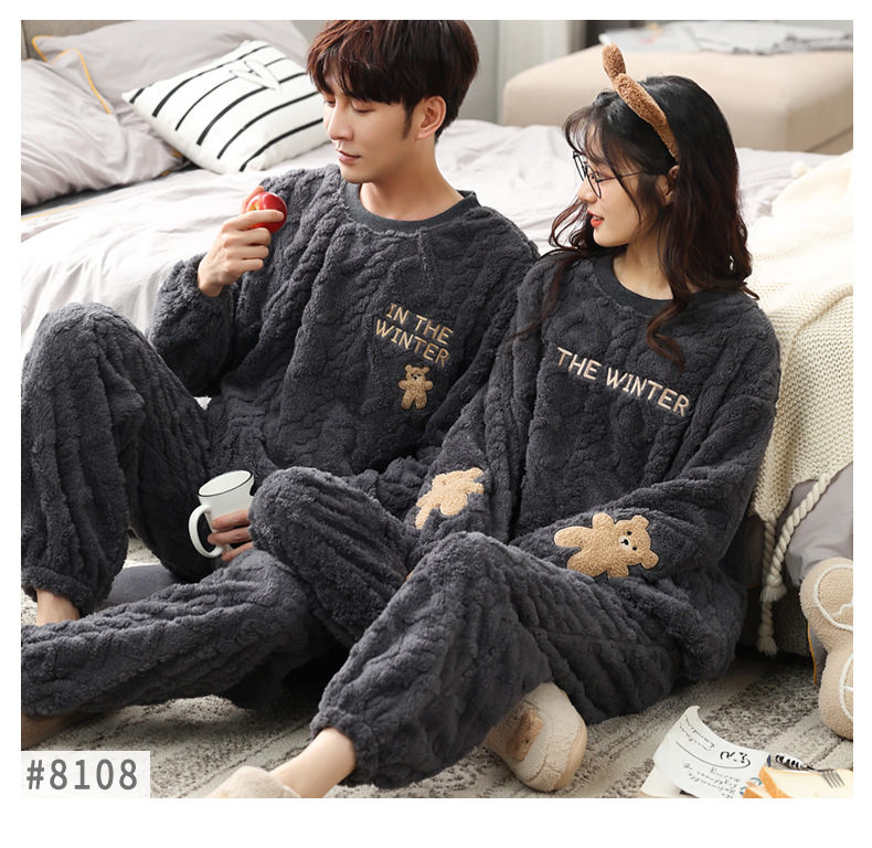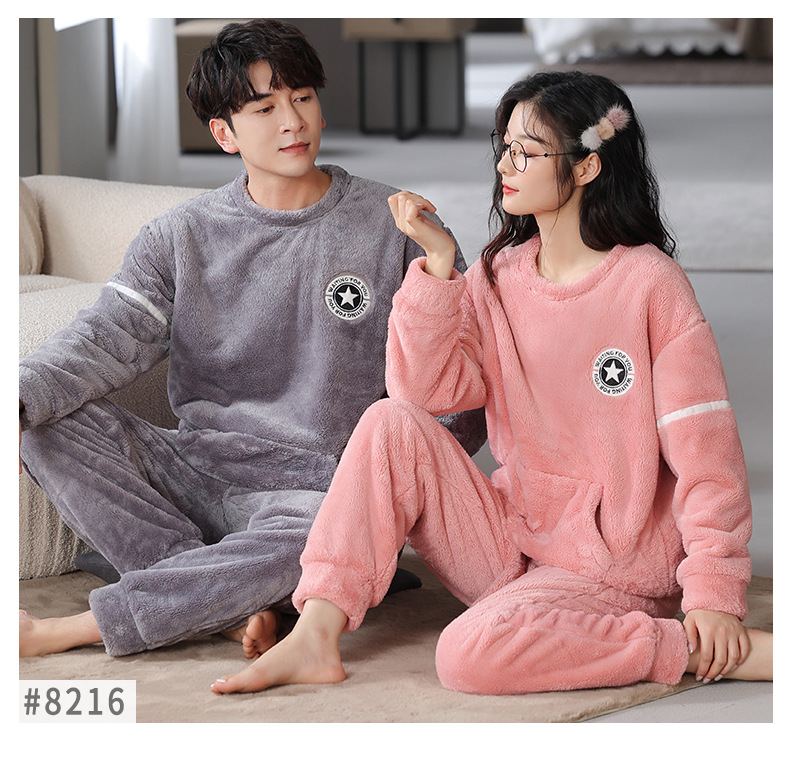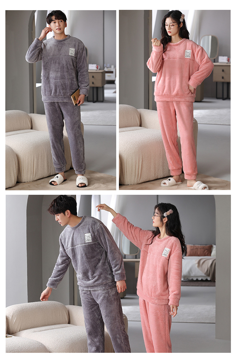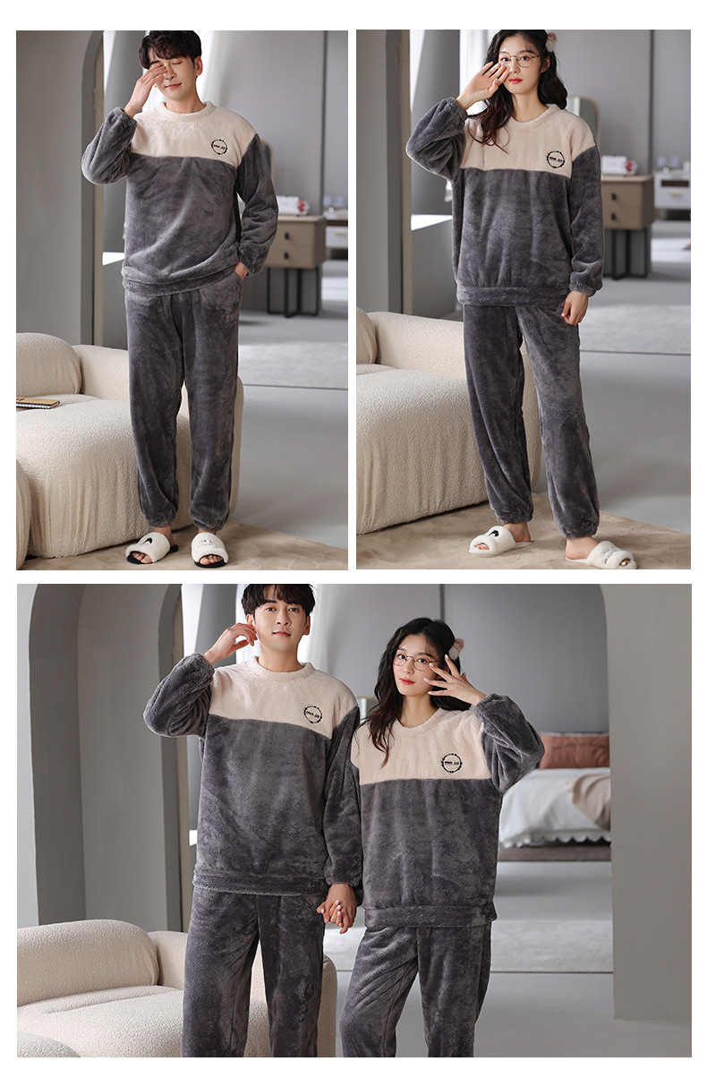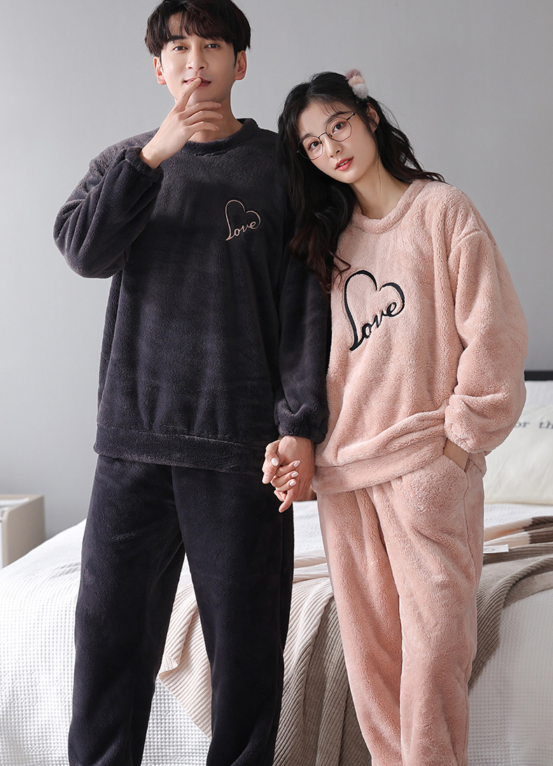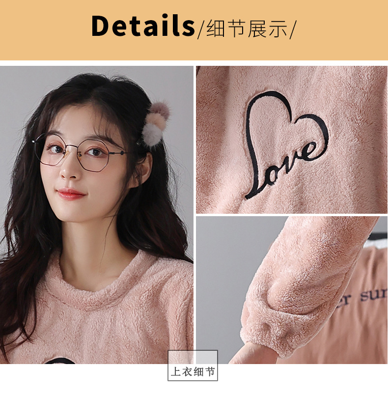 가을과 겨울 만화 커플 산호 양털 파자마 여성 풀오버 캐주얼 귀여운 자수 플란넬 홈 옷 남성 의류스토어 가기