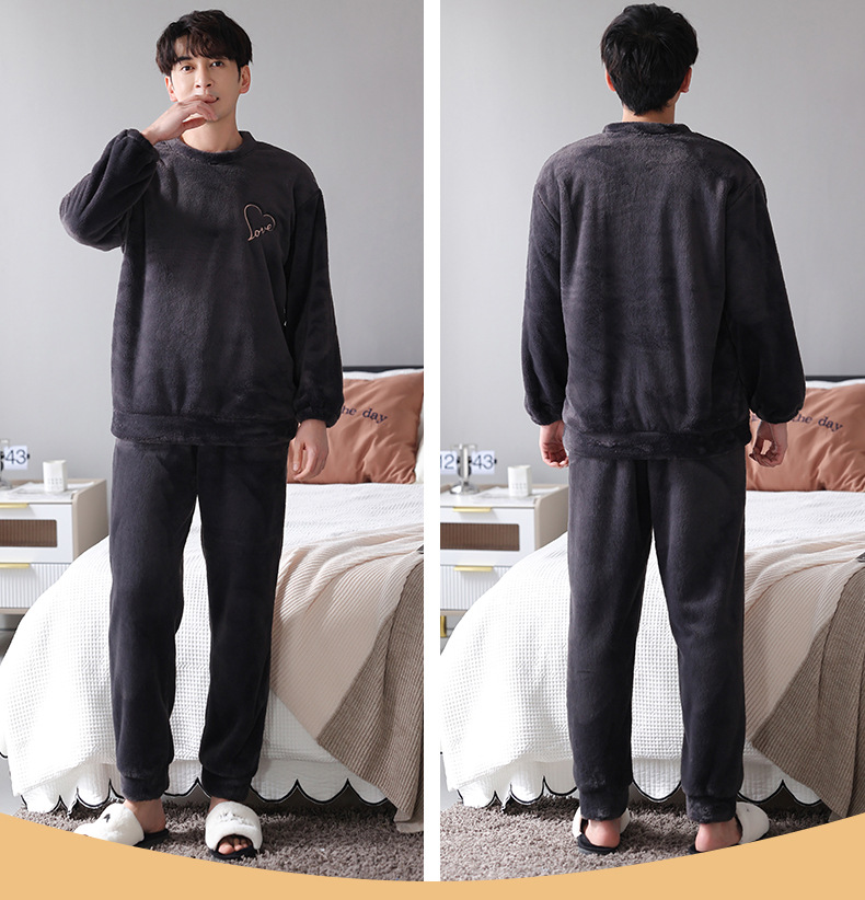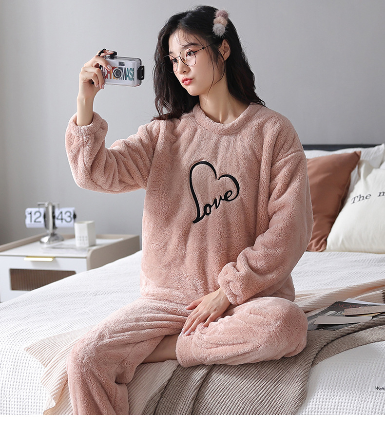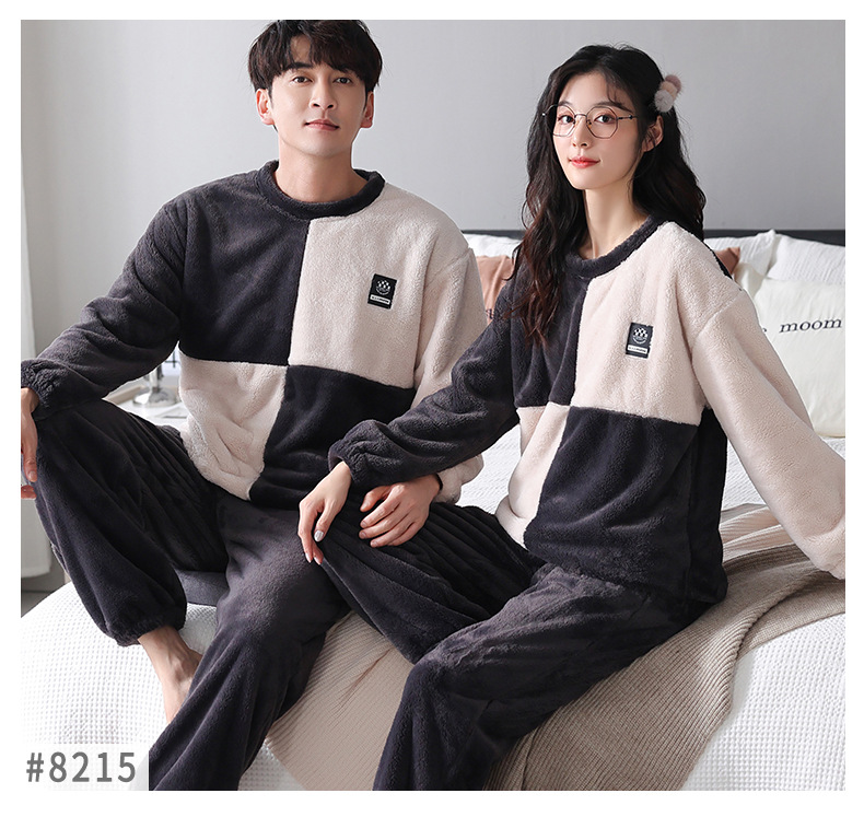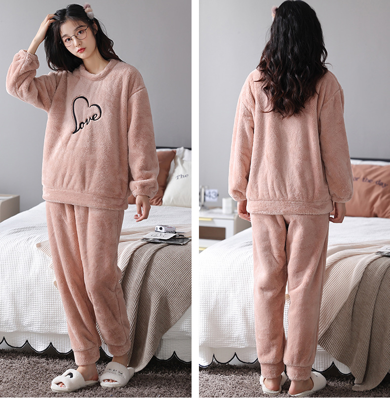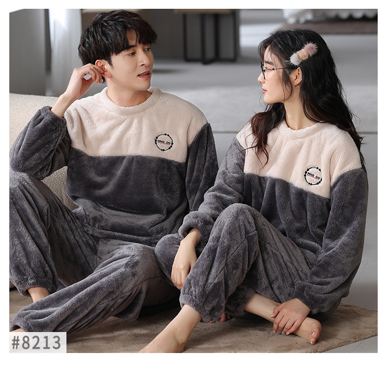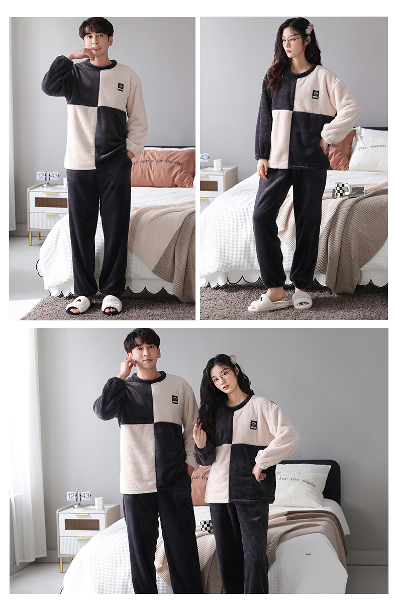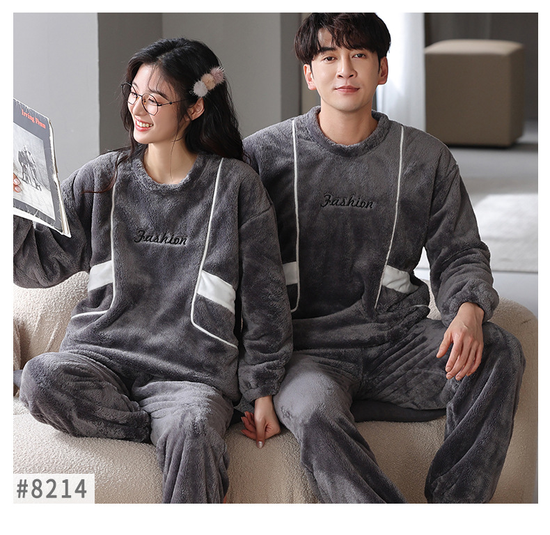 가을과 겨울 만화 커플 산호 양털 파자마 여성 풀오버 캐주얼 귀여운 자수 플란넬 홈 옷 남성 의류스토어 가기
