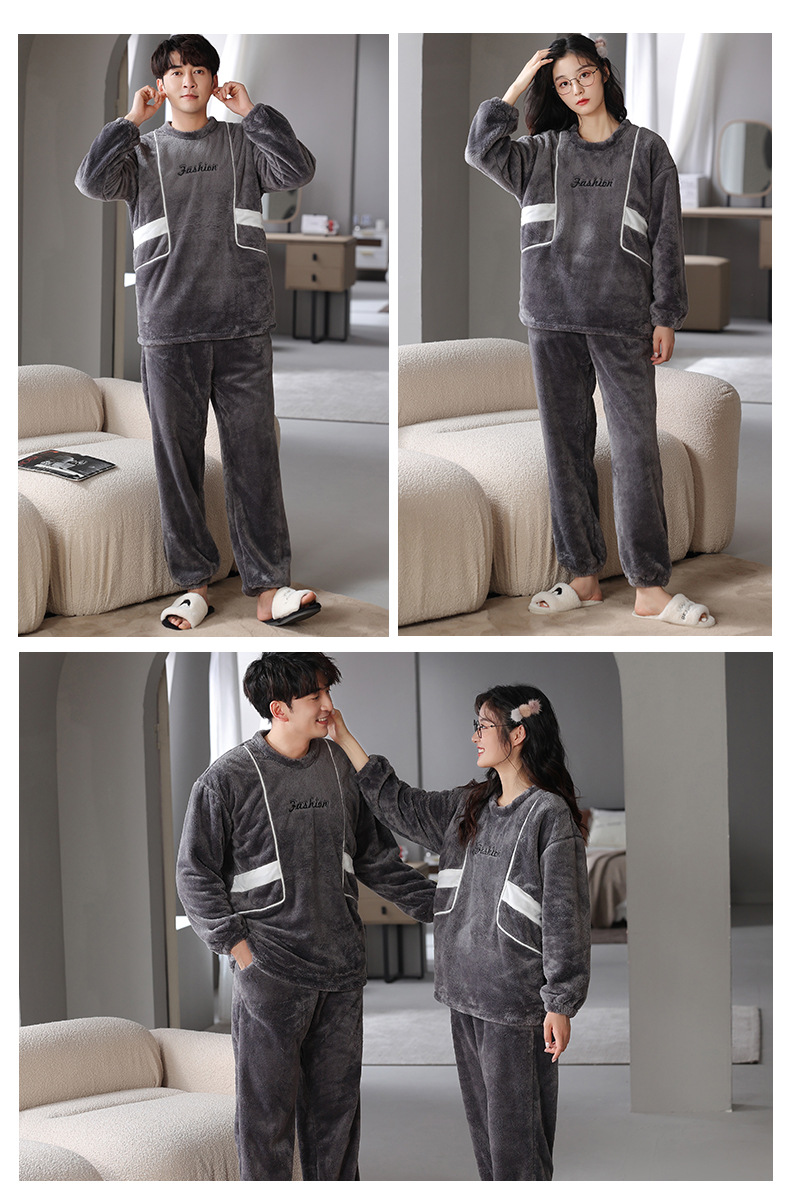 가을과 겨울 만화 커플 산호 양털 파자마 여성 풀오버 캐주얼 귀여운 자수 플란넬 홈 옷 남성 의류