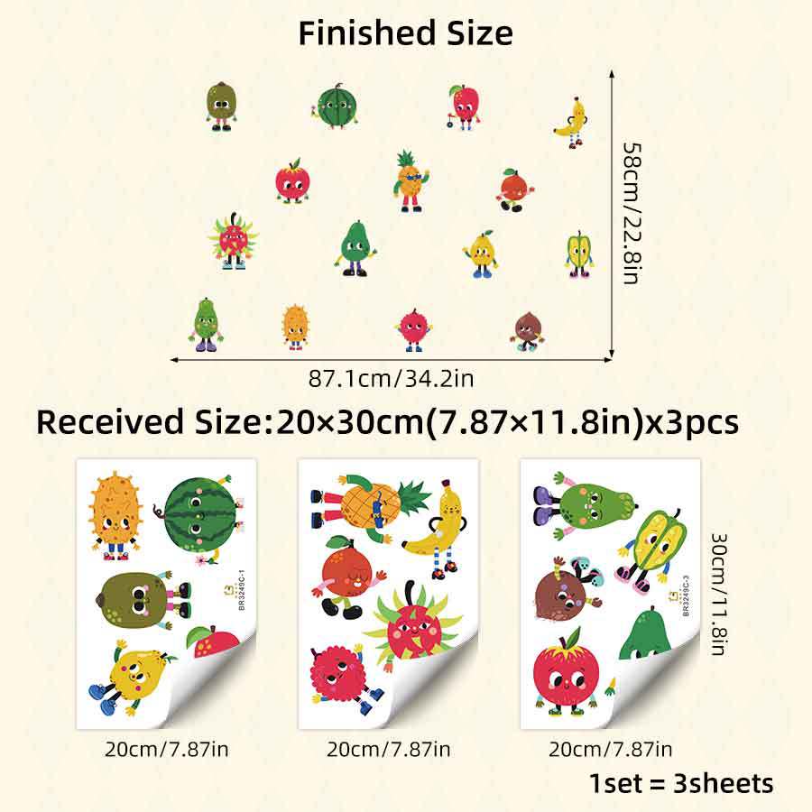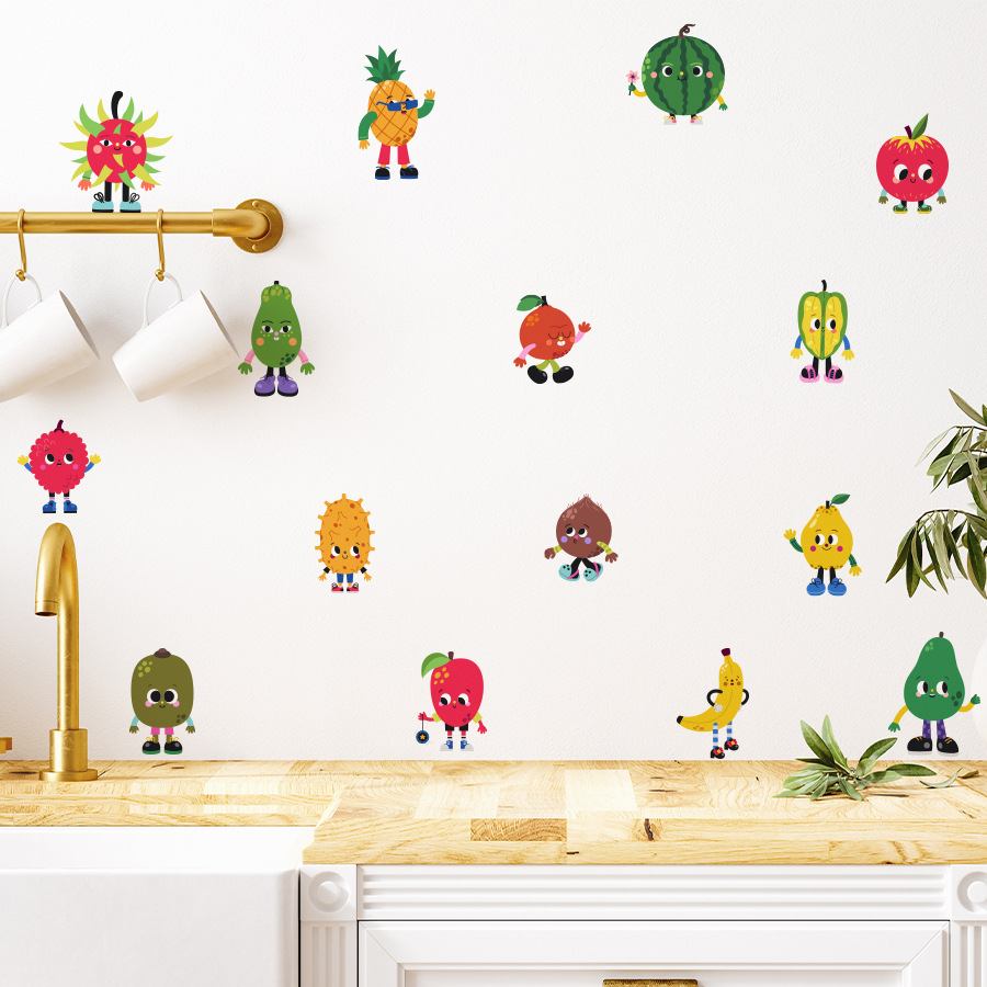 만화 귀여운 애니메이션 과일 자체 접착 벽 스티커 어린이 방 유치원 교실 장식 스티커 BR3249C