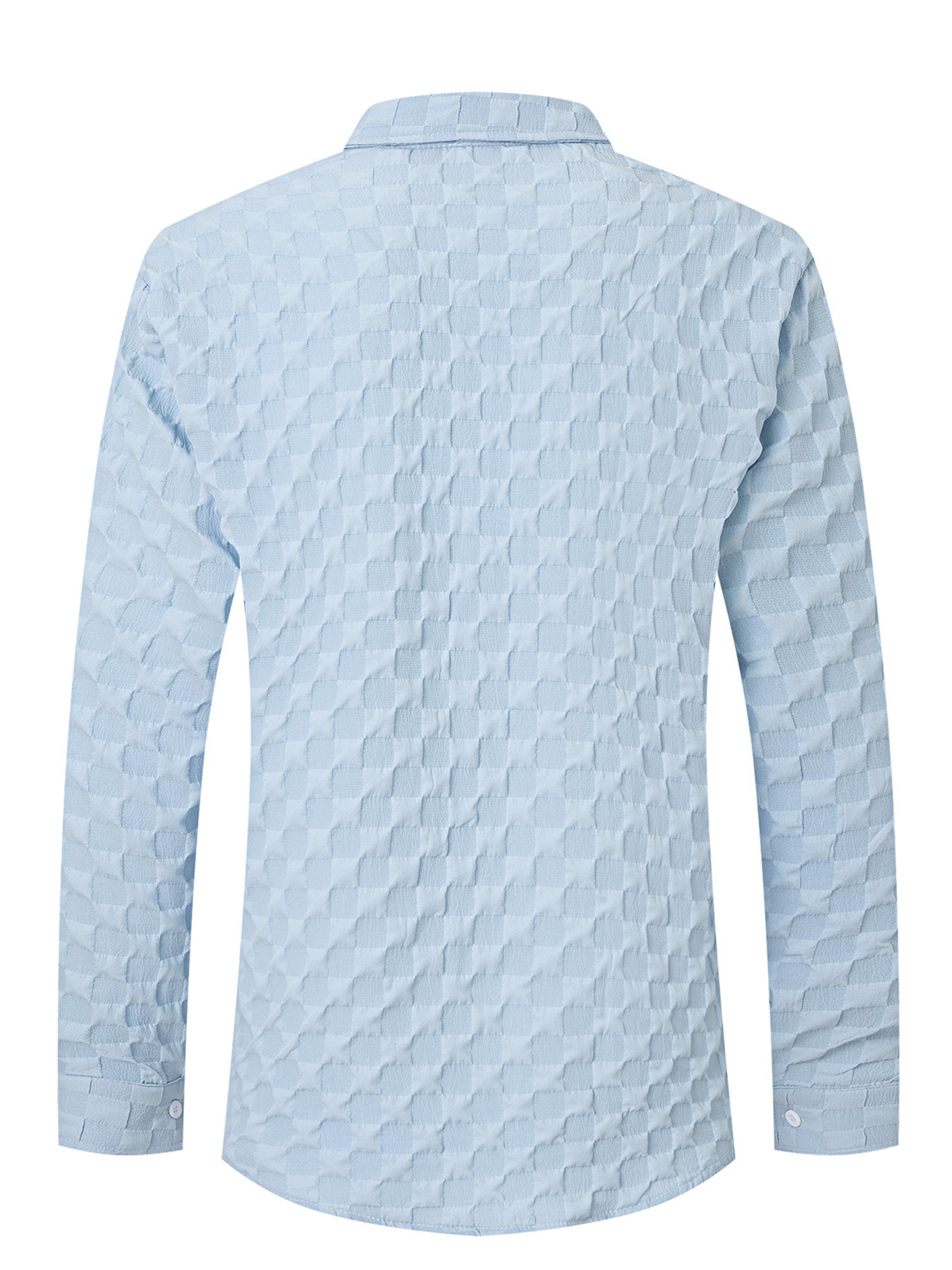 국경 2024 새로운 봄과 가을 유럽과 미국의 남성 체크 무늬 자카드 가슴 포켓 옷깃 긴 소매 옷깃 셔츠