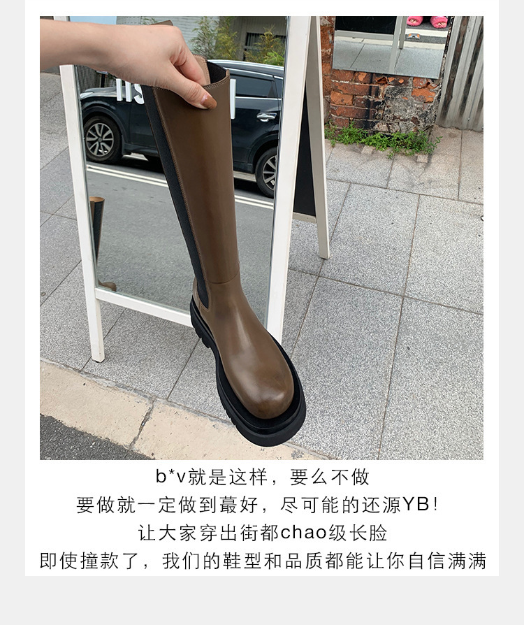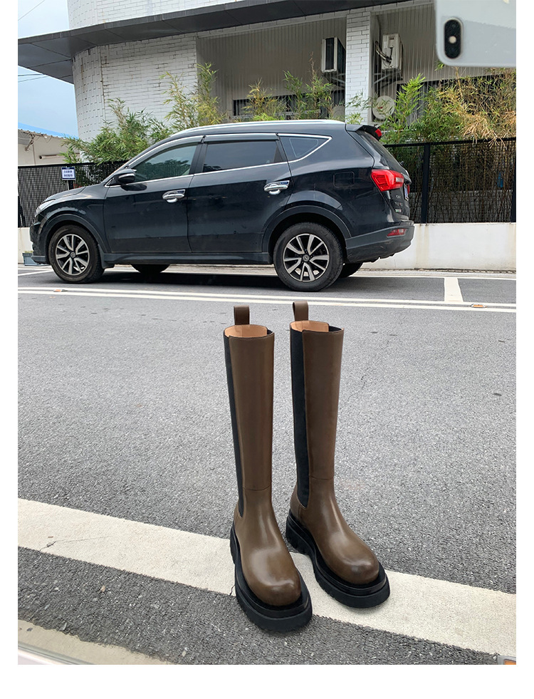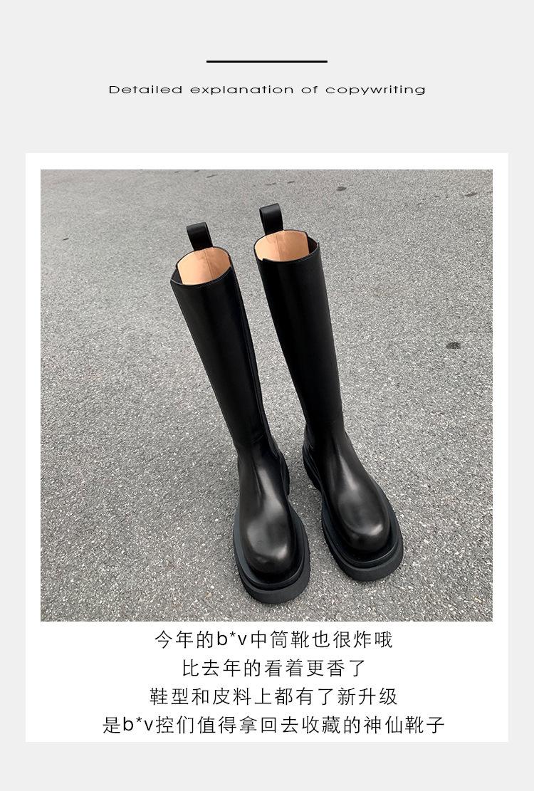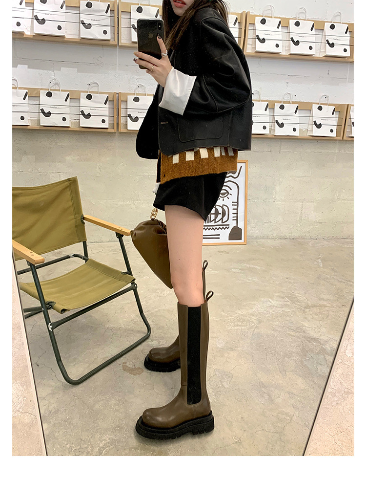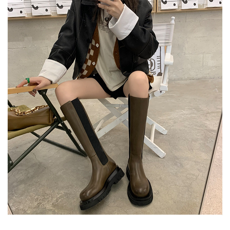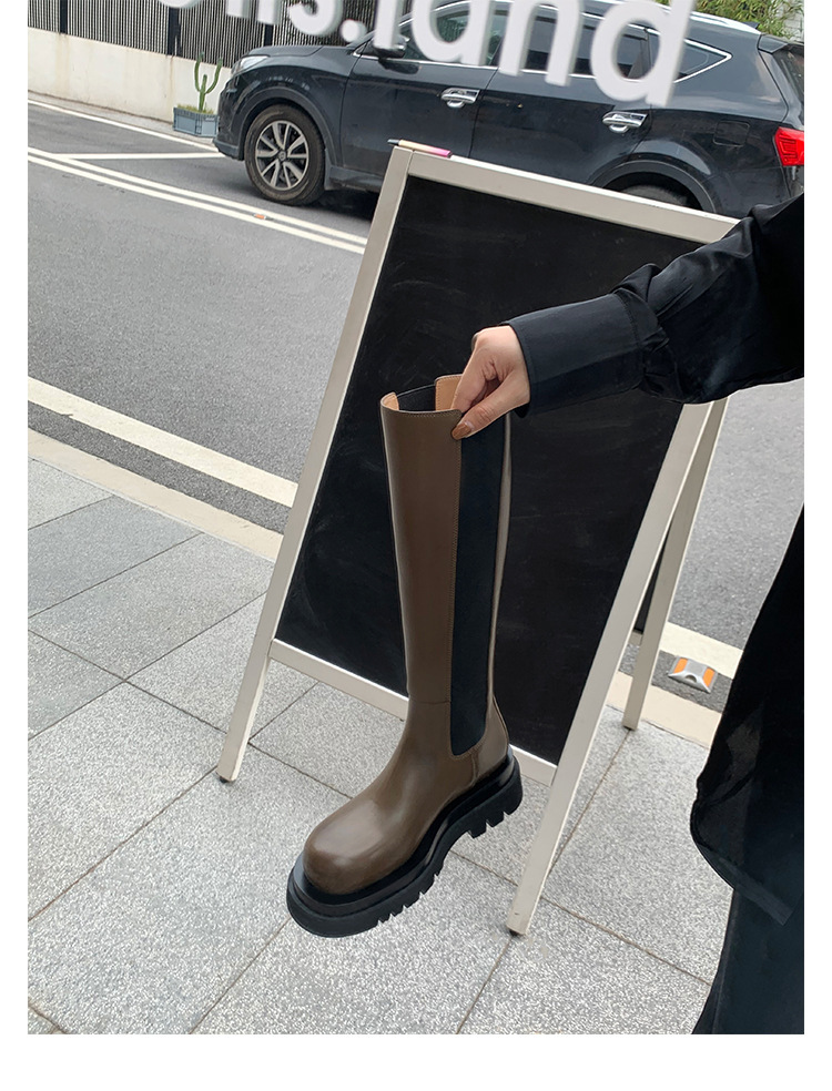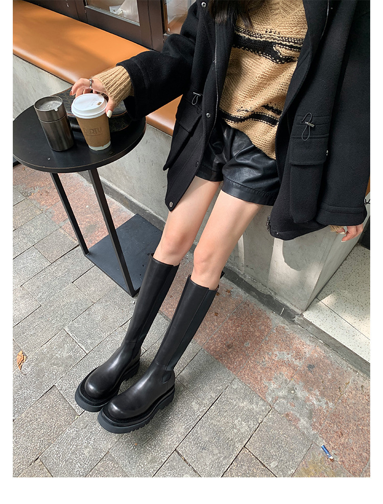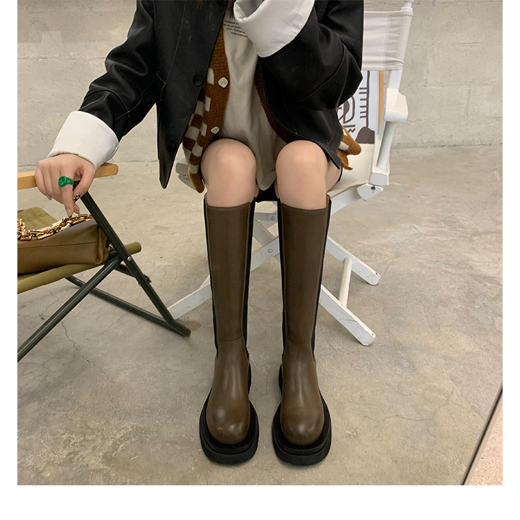 재고 Cowhide Edition ~ Long Knights 부츠 여성 조커 라운드 헤드 두꺼운 바닥 탄성 얇은 부츠 그러나 무릎 스모크 부츠스토어 가기