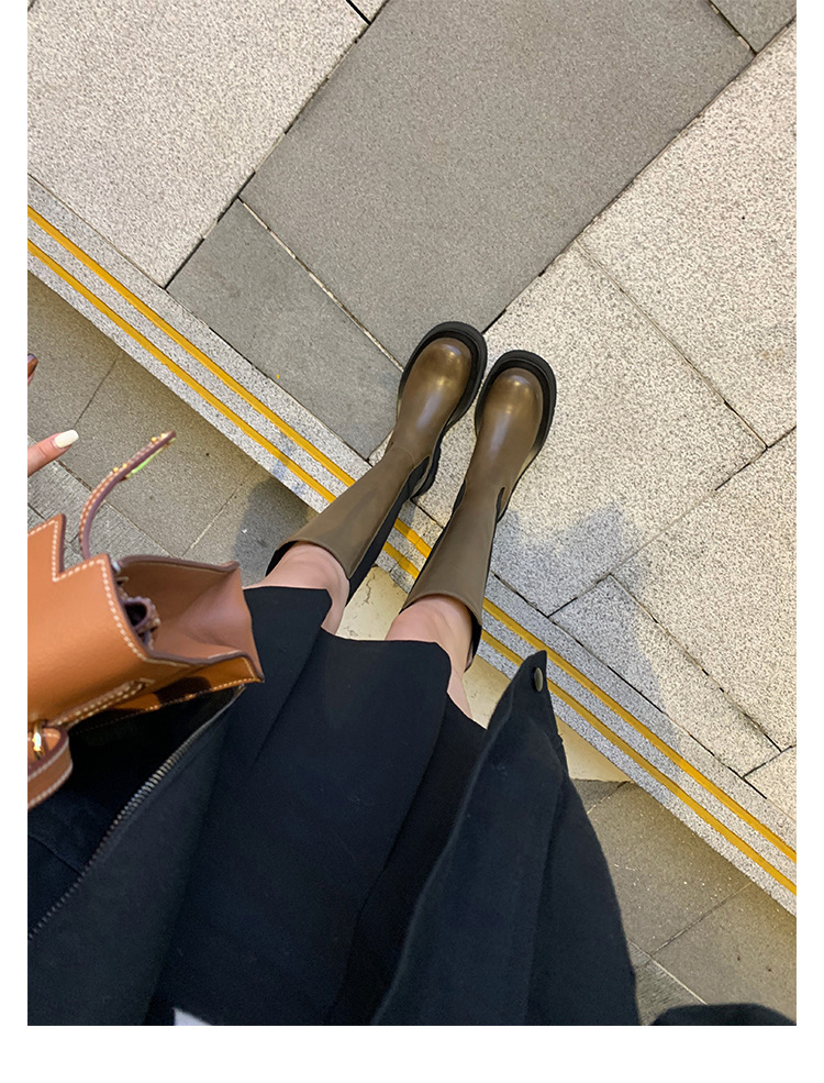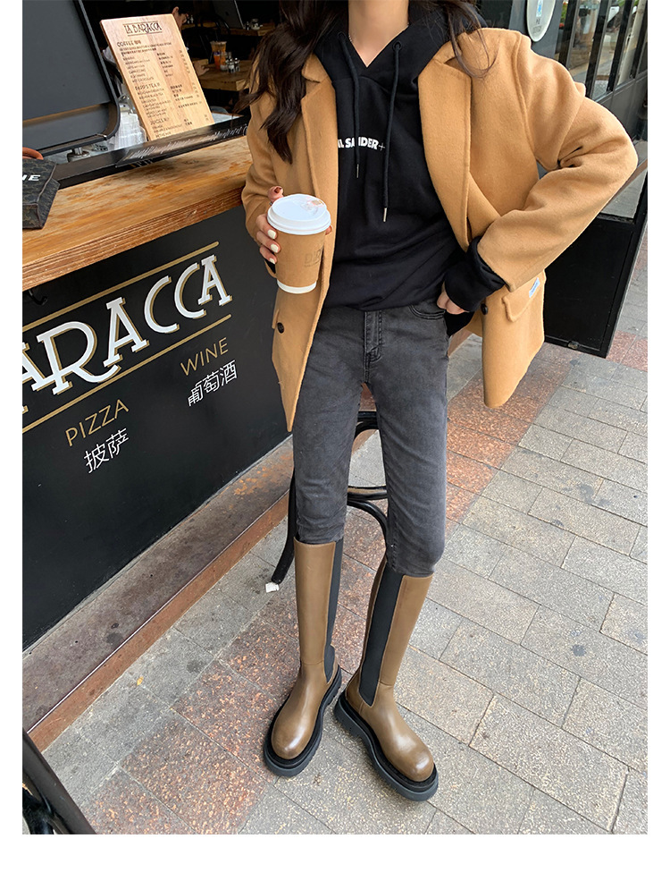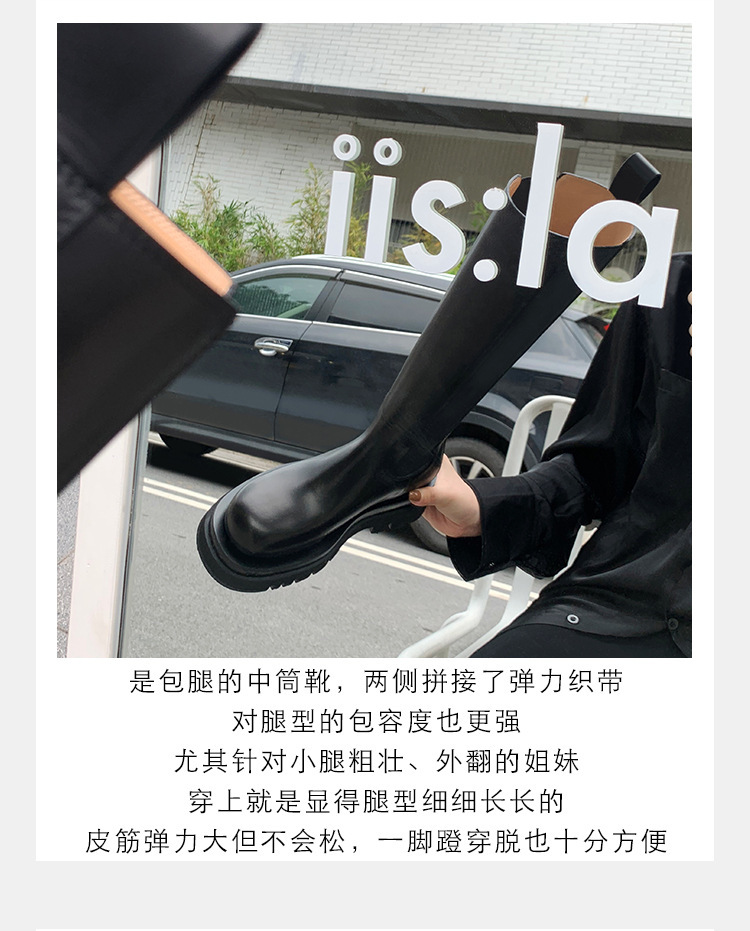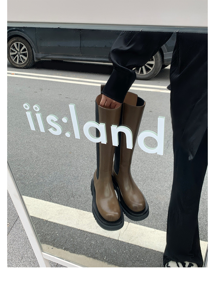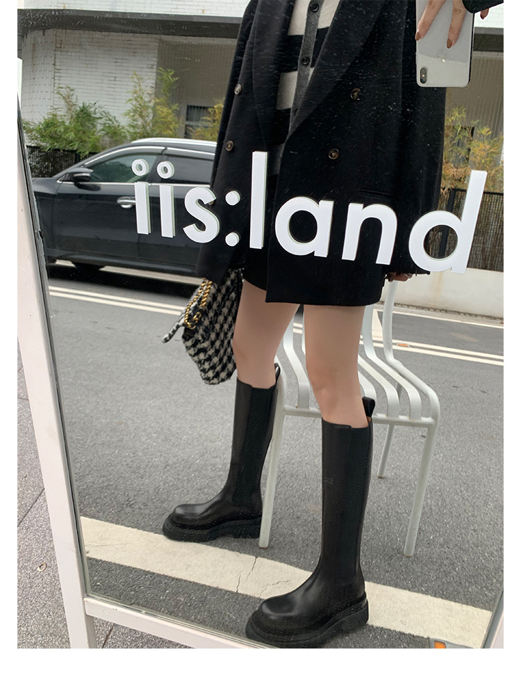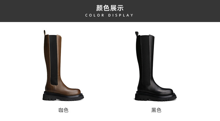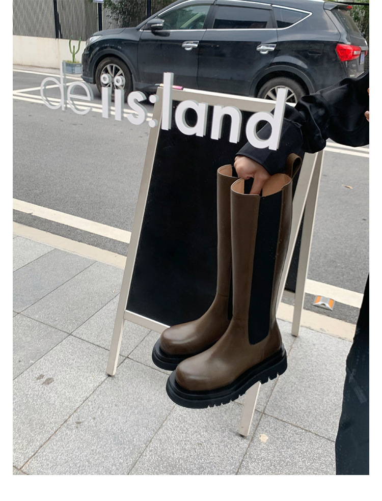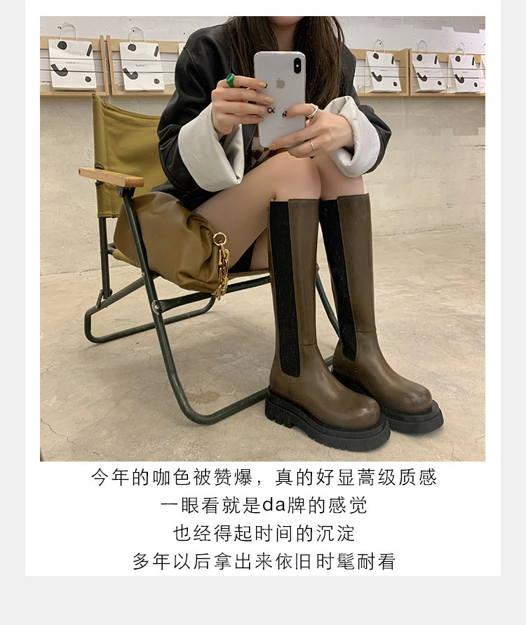 재고 Cowhide Edition ~ Long Knights 부츠 여성 조커 라운드 헤드 두꺼운 바닥 탄성 얇은 부츠 그러나 무릎 스모크 부츠스토어 가기