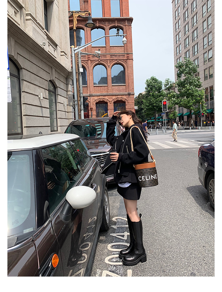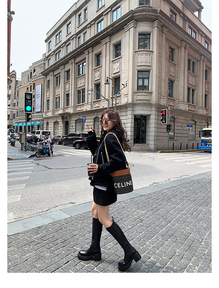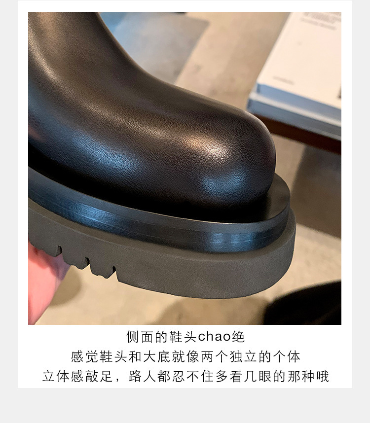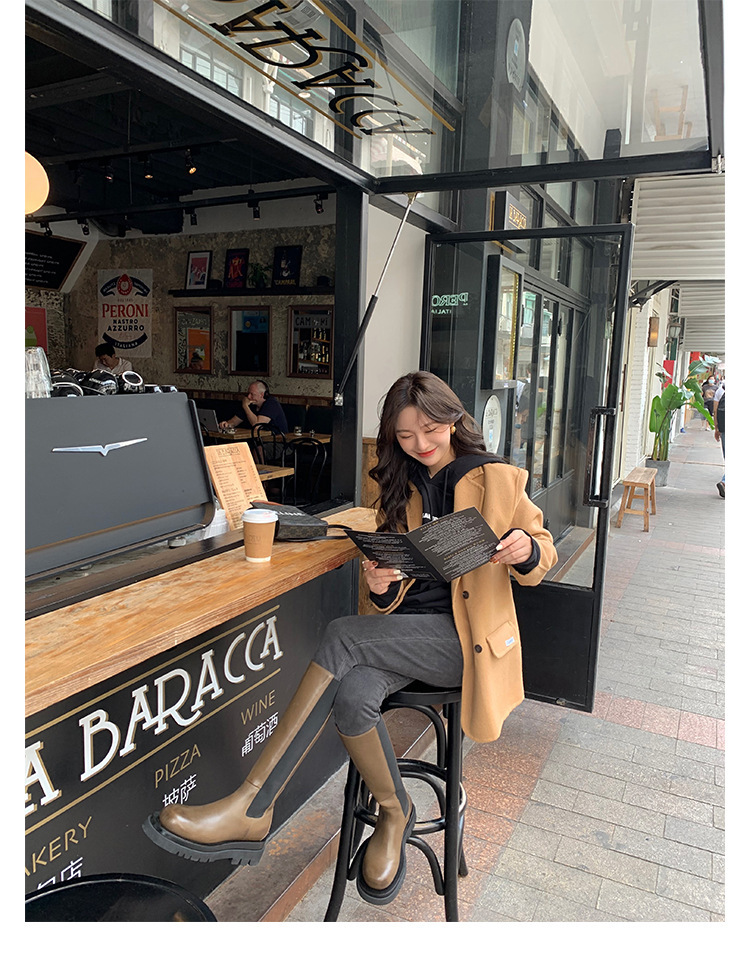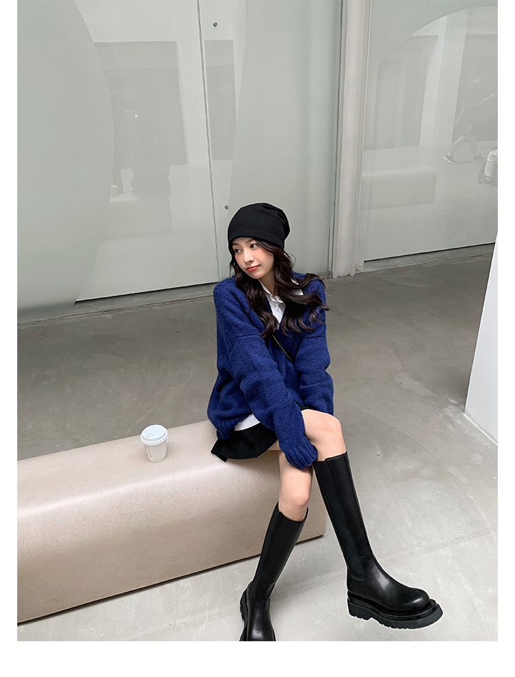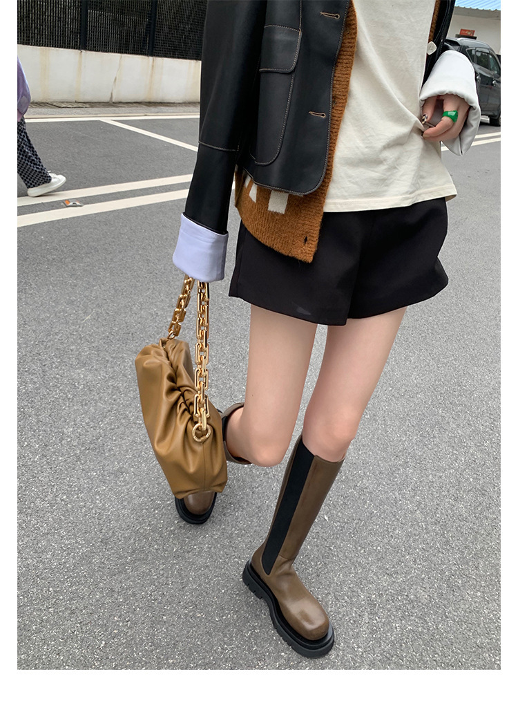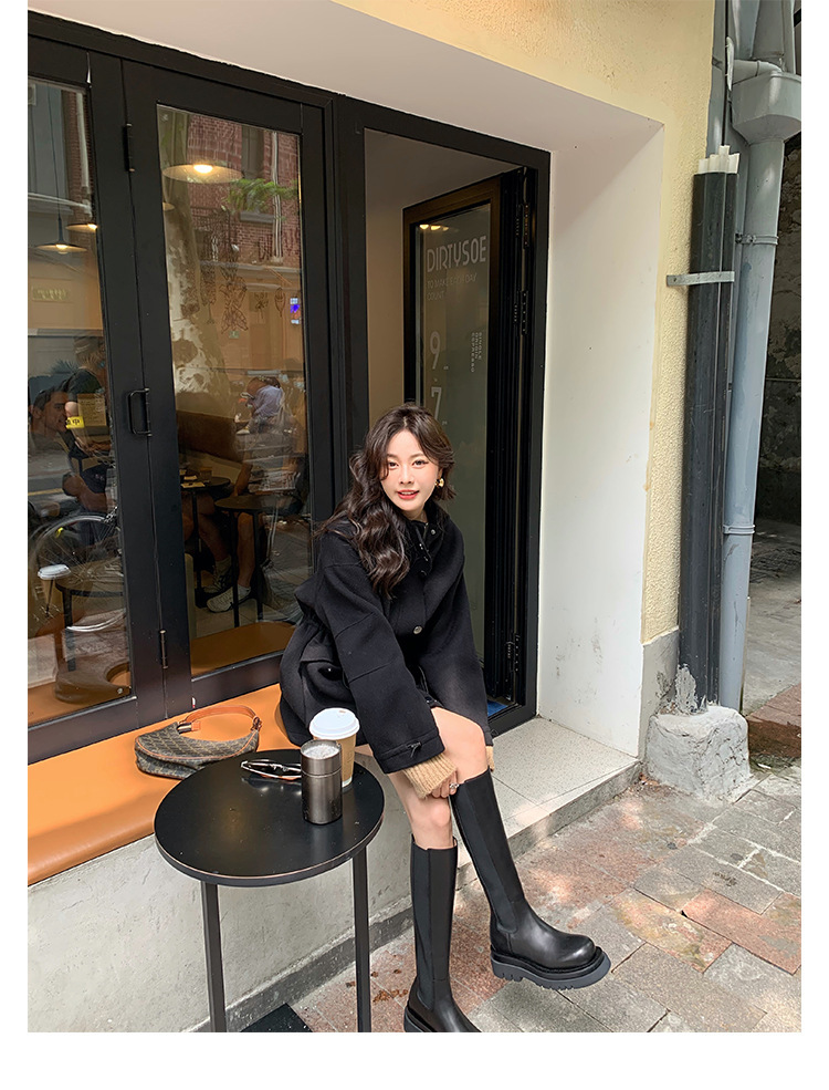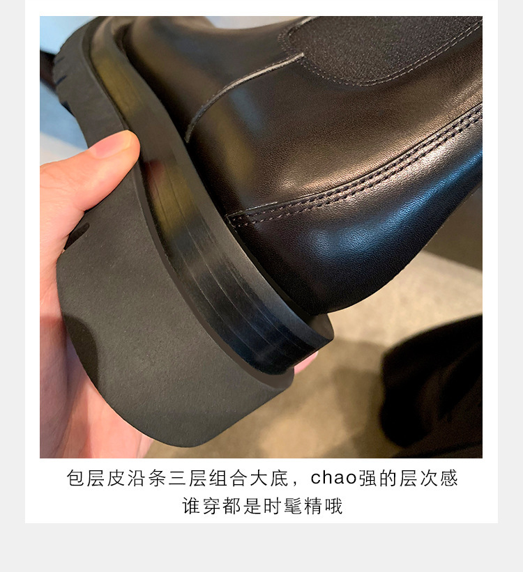 재고 Cowhide Edition ~ Long Knights 부츠 여성 조커 라운드 헤드 두꺼운 바닥 탄성 얇은 부츠 그러나 무릎 스모크 부츠스토어 가기