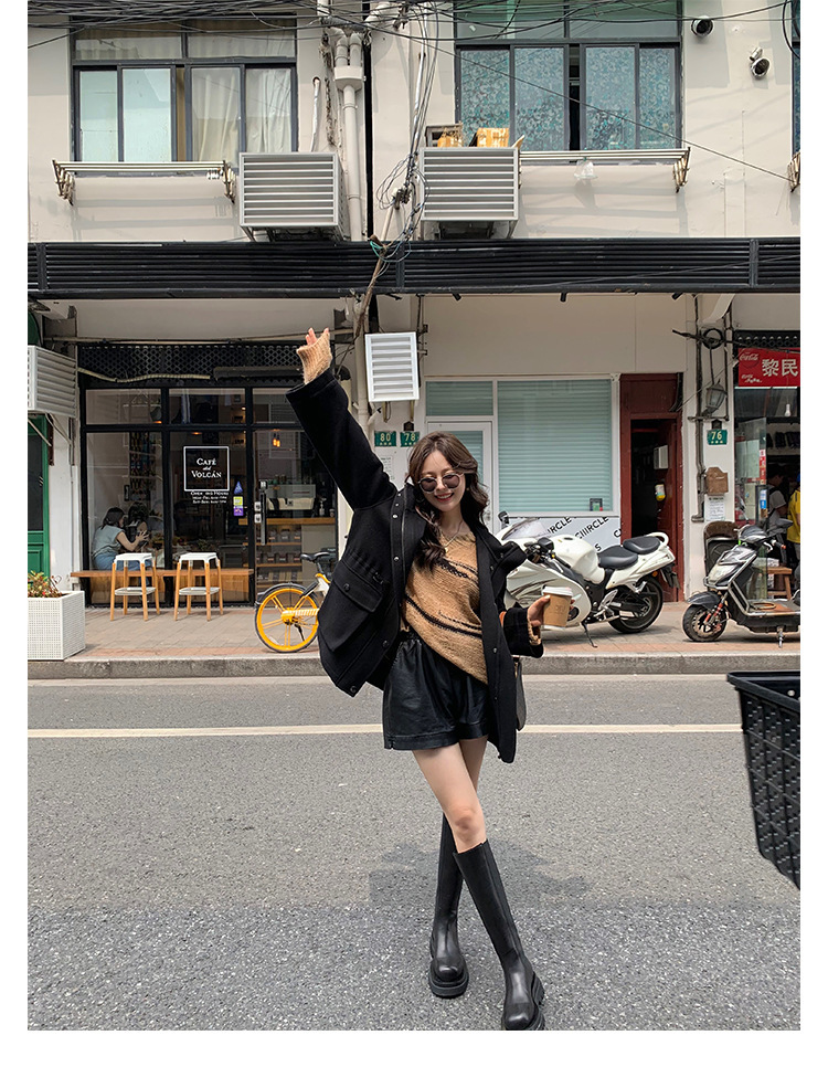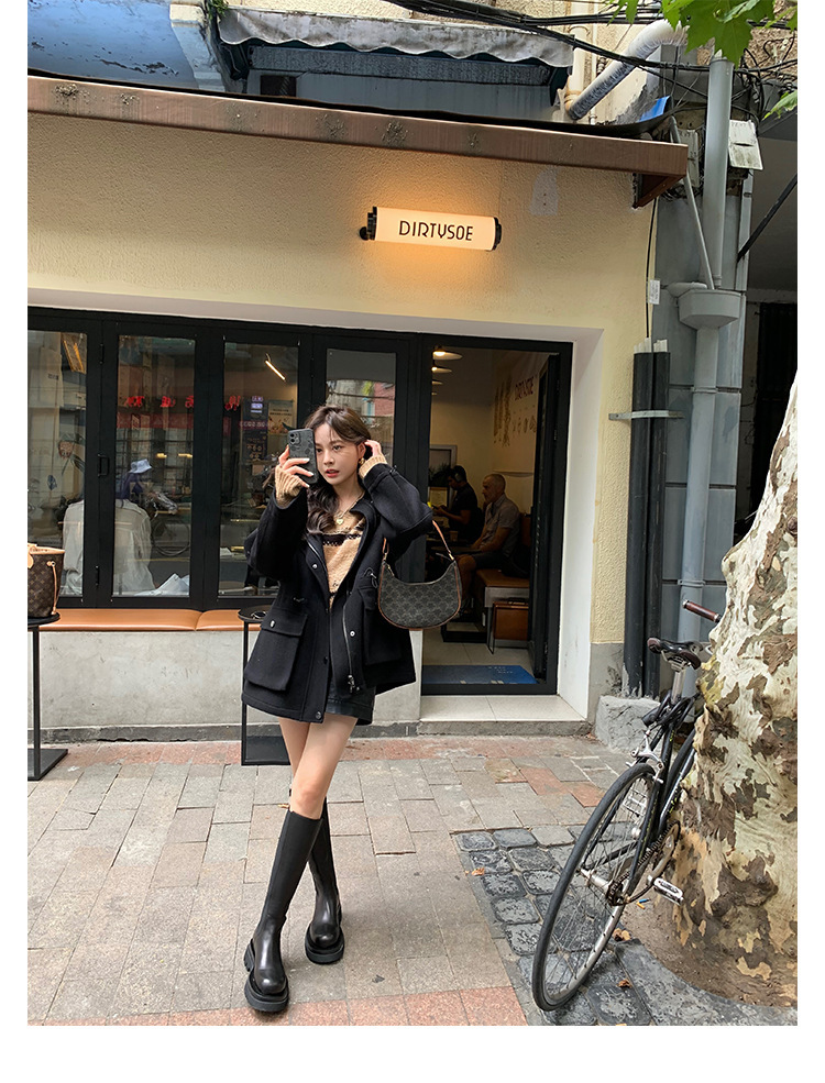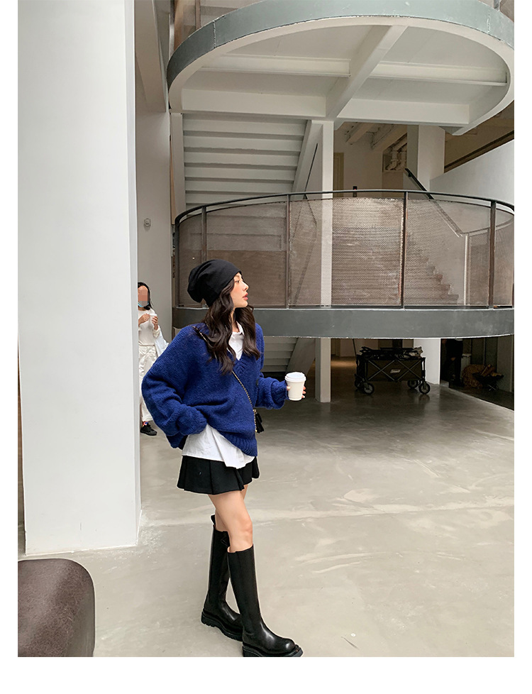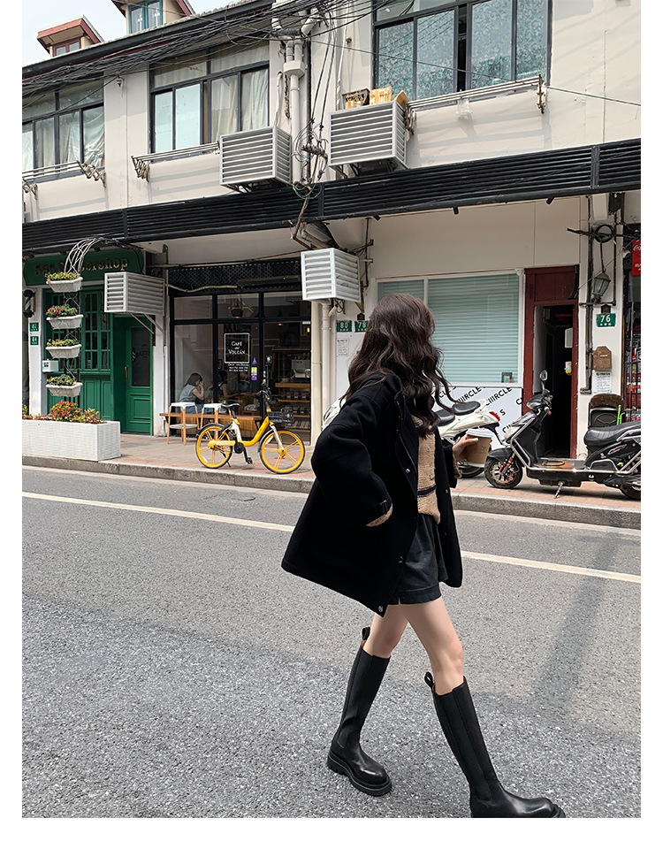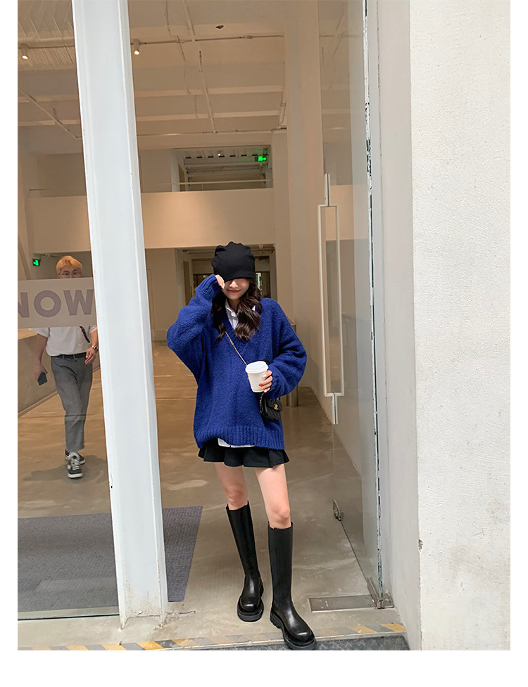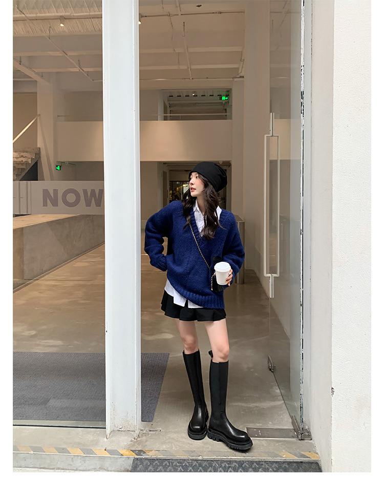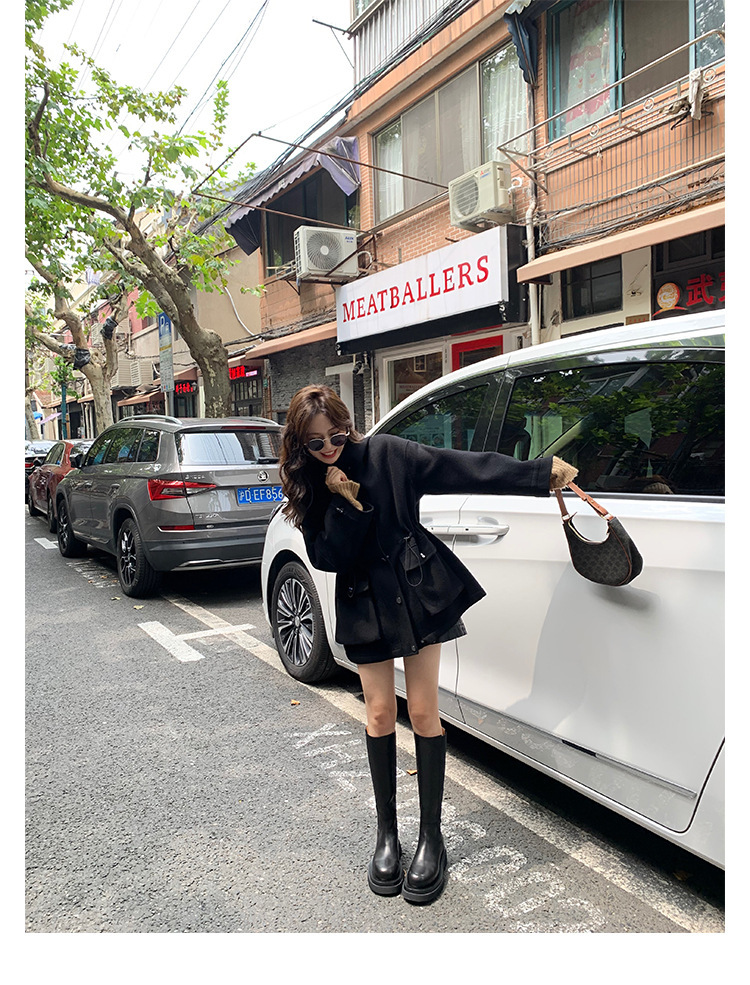 재고 Cowhide Edition ~ Long Knights 부츠 여성 조커 라운드 헤드 두꺼운 바닥 탄성 얇은 부츠 그러나 무릎 스모크 부츠스토어 가기
