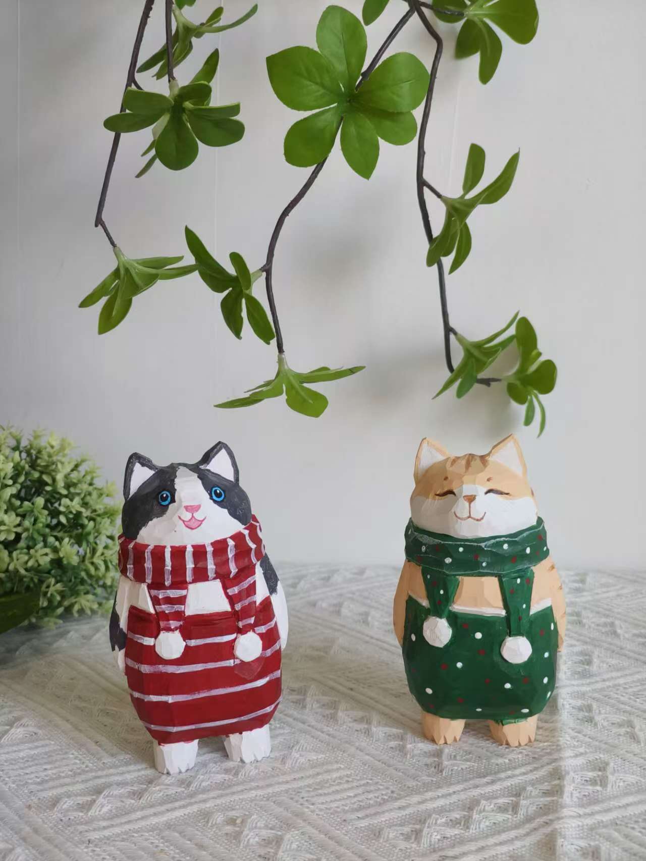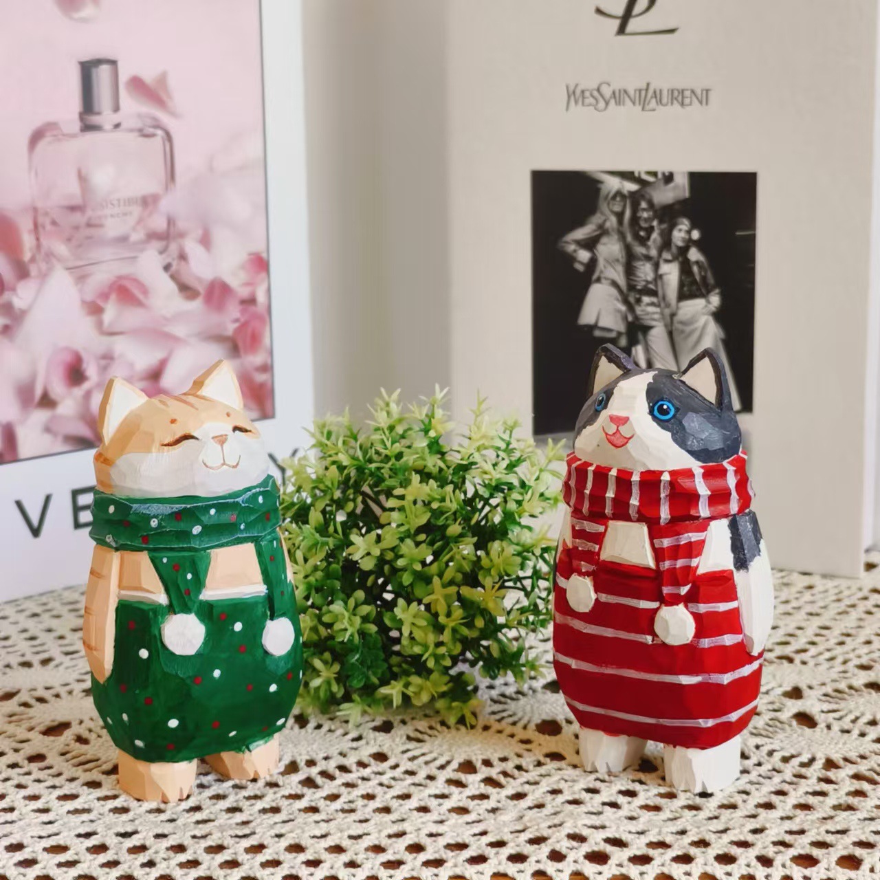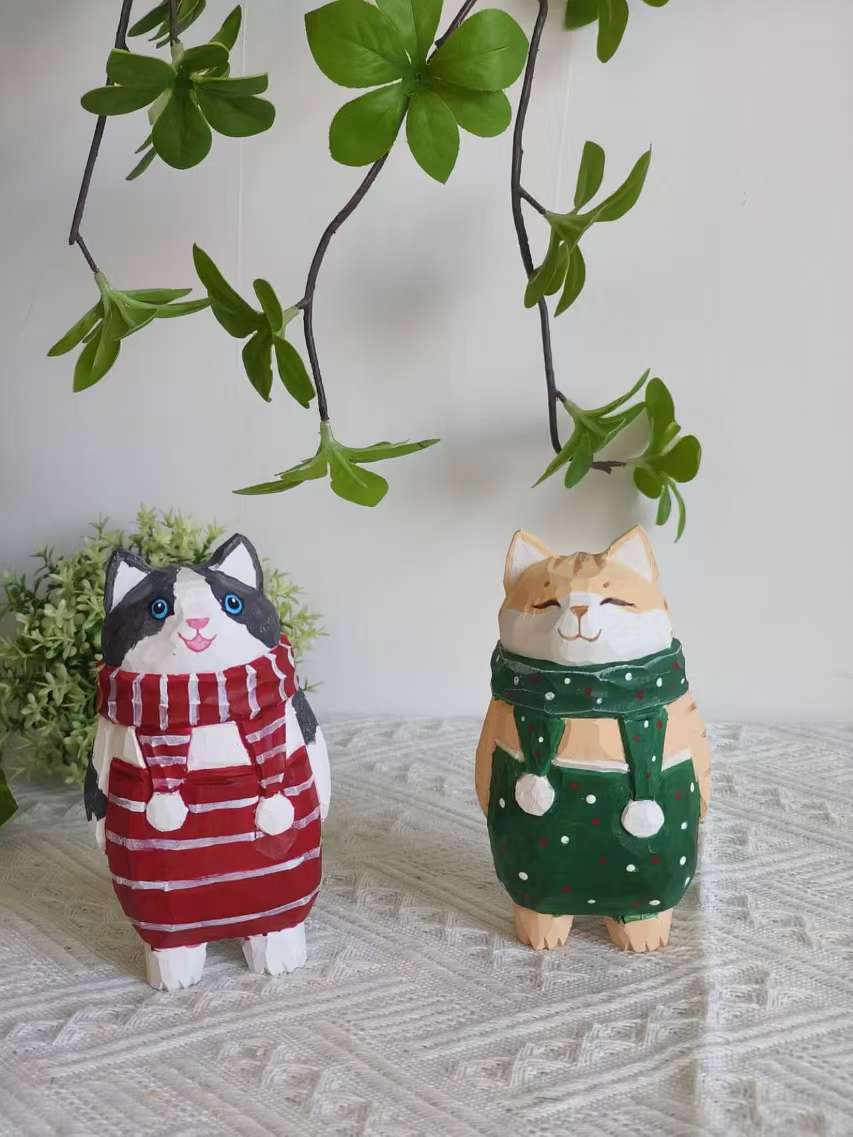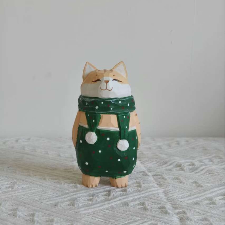 더러운 고양이 수제 나무 작은 장식품 인형 나무 조각 만화 책상 재미있는 장식