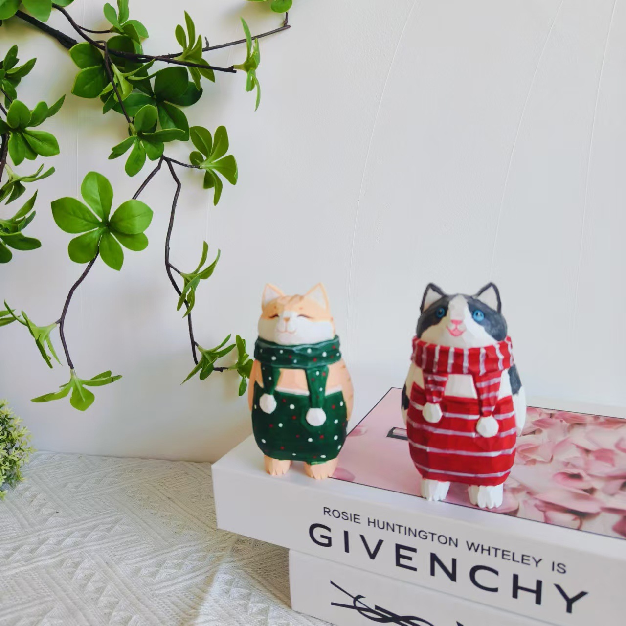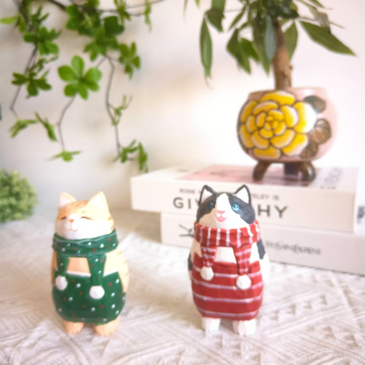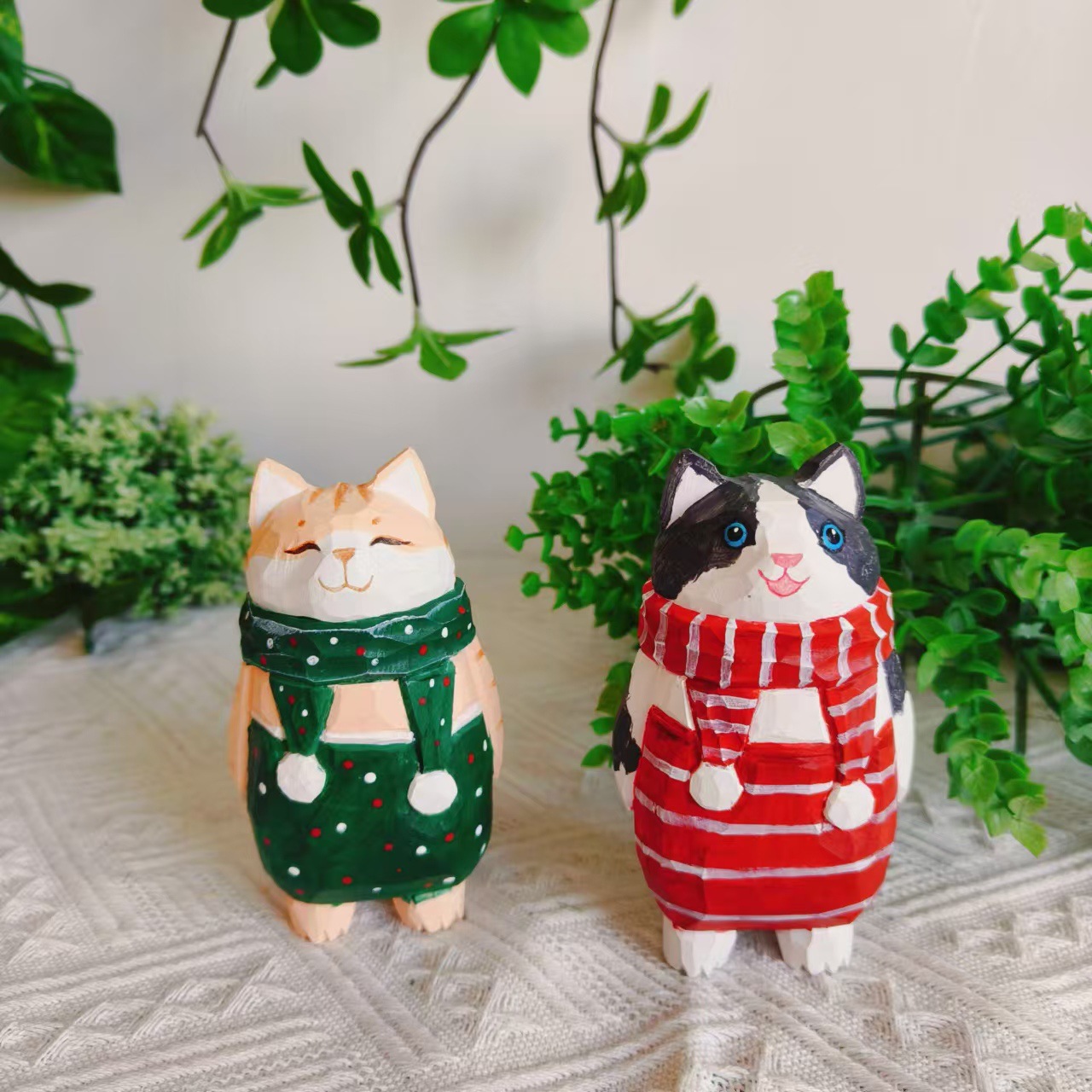 더러운 고양이 수제 나무 작은 장식품 인형 나무 조각 만화 책상 재미있는 장식