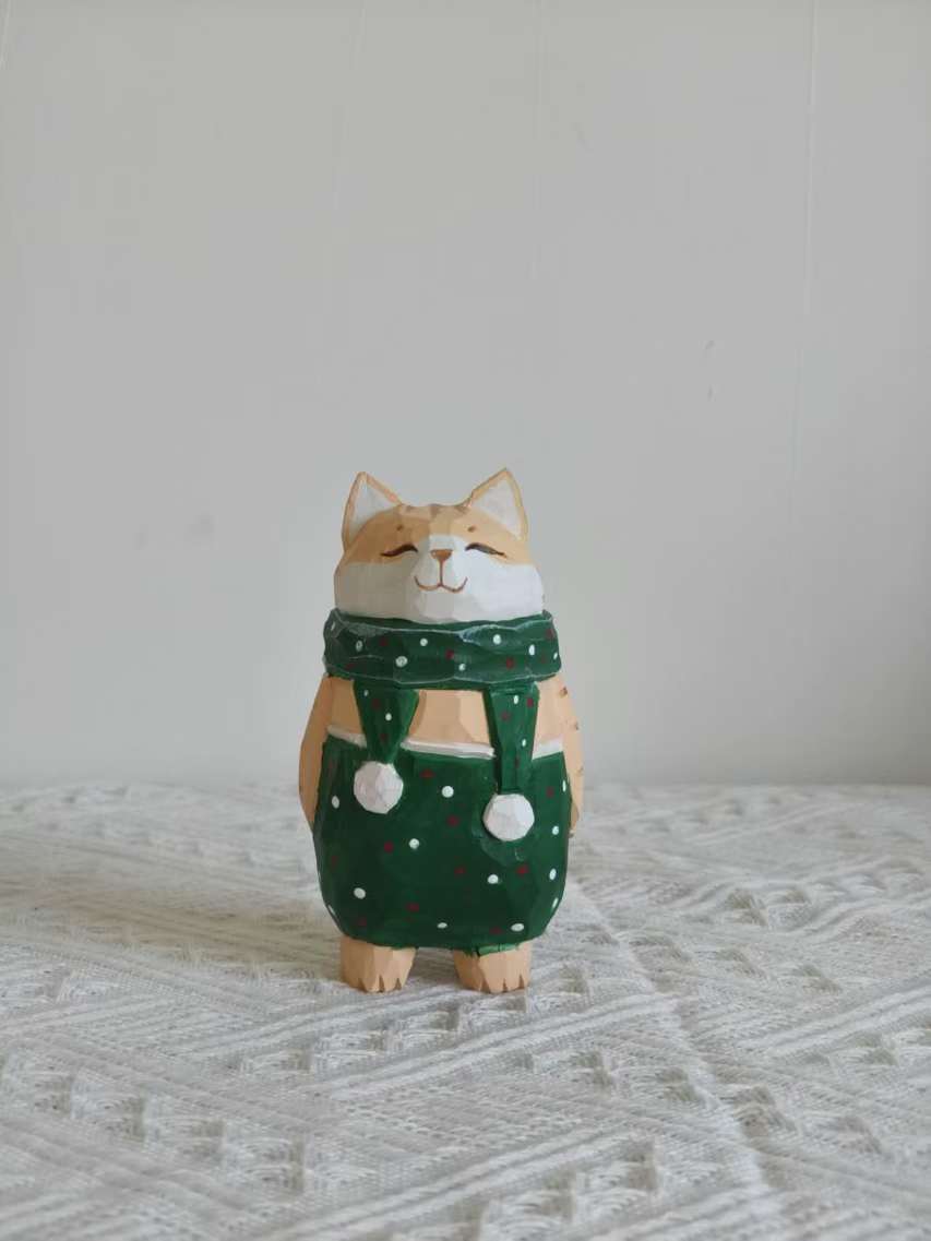 더러운 고양이 수제 나무 작은 장식품 인형 나무 조각 만화 책상 재미있는 장식스토어 가기