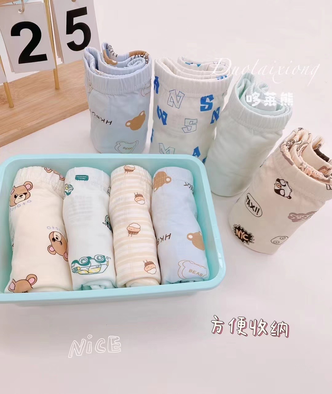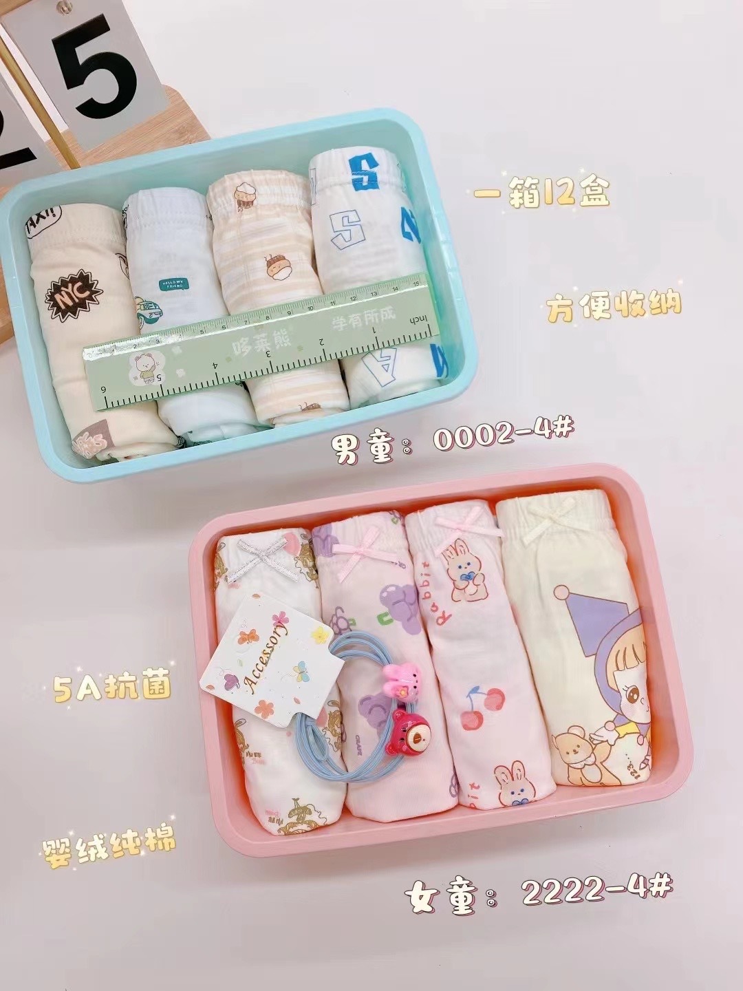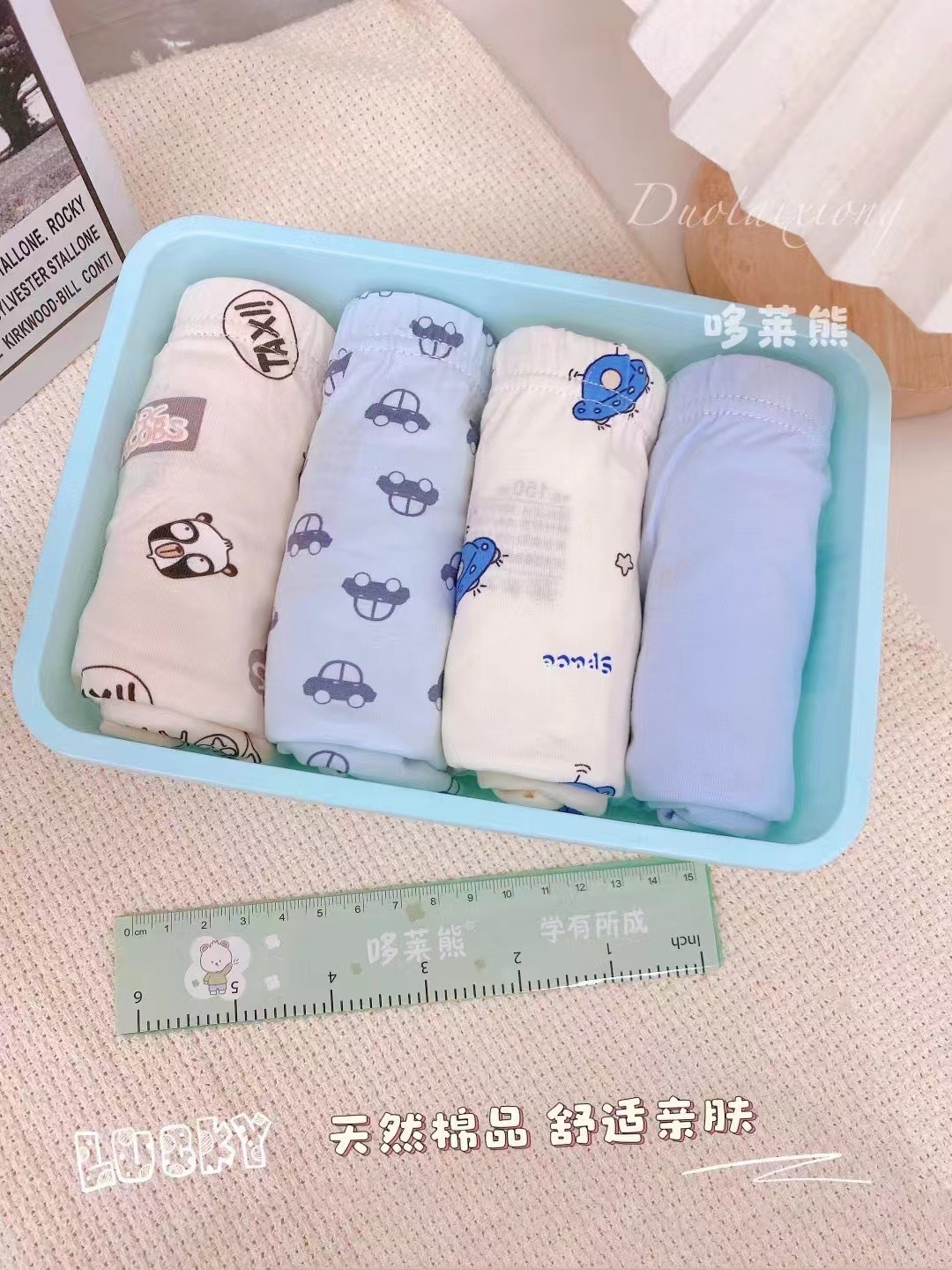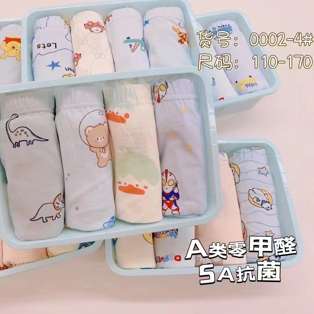 Duolaixiong 5A 항균 순면 하단 파일 어린이 만화 귀여운 속옷 머리 남성과 여성 학생 클래스 A 베이비 라이스 4 박스스토어 가기