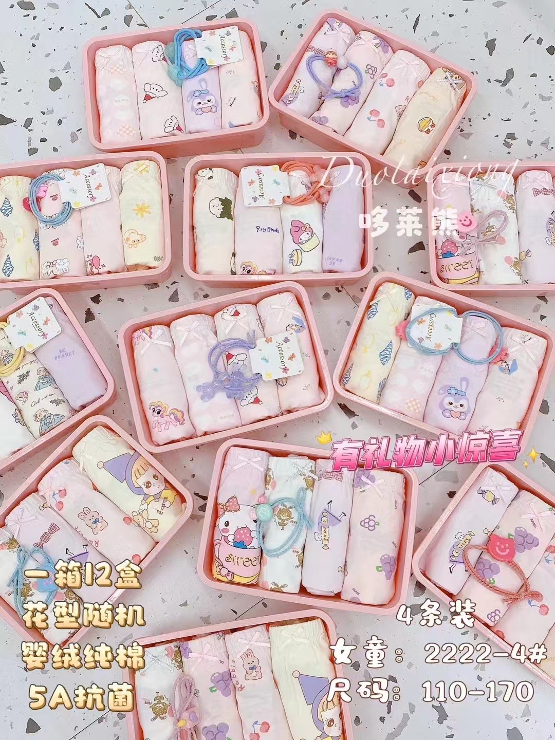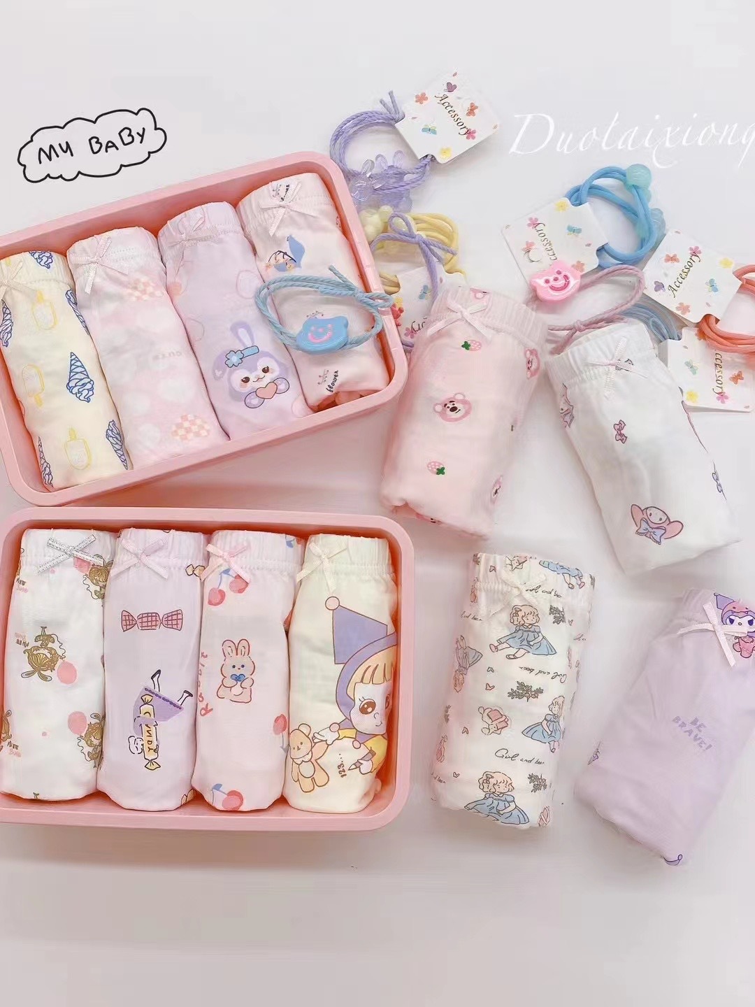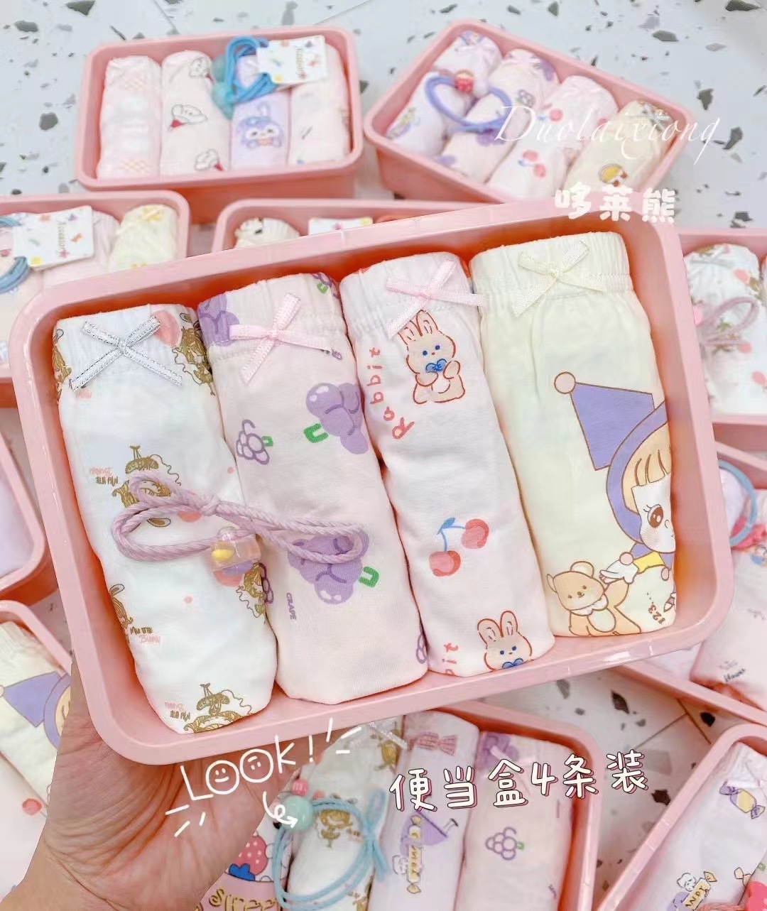 Duolaixiong 5A 항균 순면 하단 파일 어린이 만화 귀여운 속옷 머리 남성과 여성 학생 클래스 A 베이비 라이스 4 박스스토어 가기
