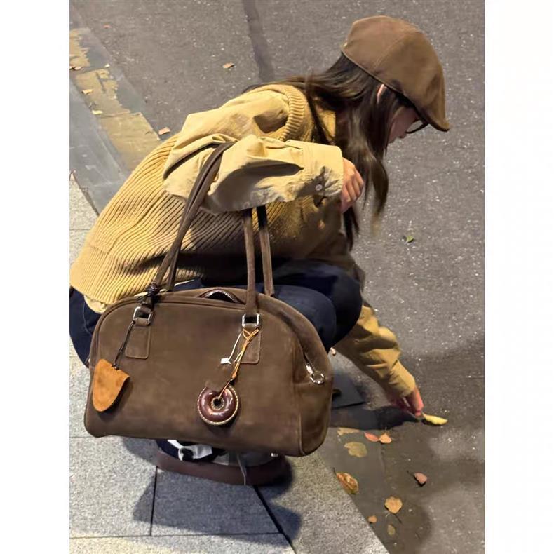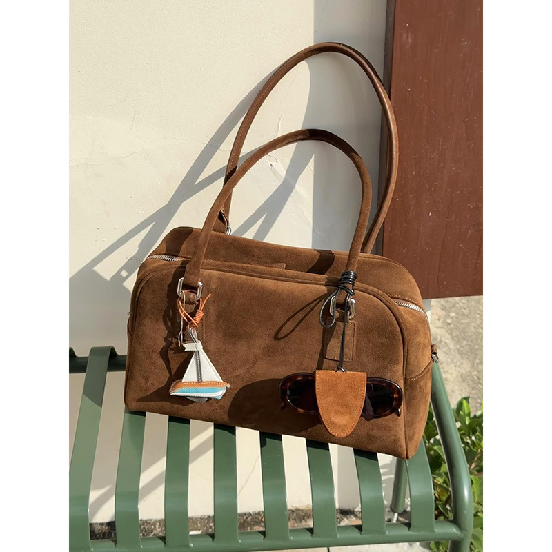 어깨 휴대용 가을 겨울 스웨이드 대용량 겨드랑이 베개 가방 새로운 고급 통근 스크럽 보스턴 백