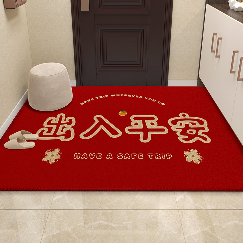빨간 입구 문 바닥 매트 고급 물 흡수성 미끄럼 방지 발 매트 가정용 먼지 방지 쉬운 관리 크리스탈 벨벳 바닥 매트