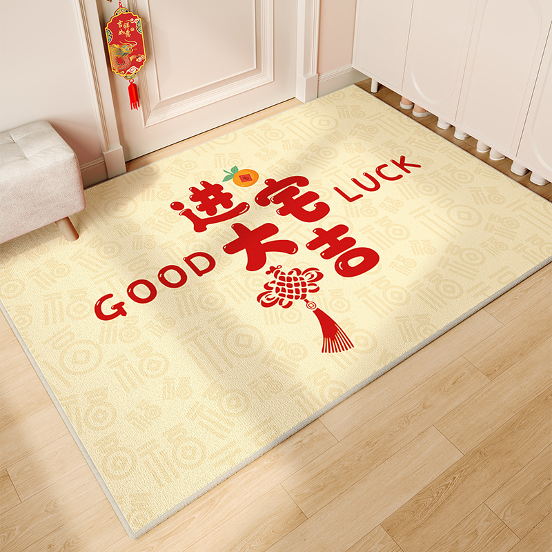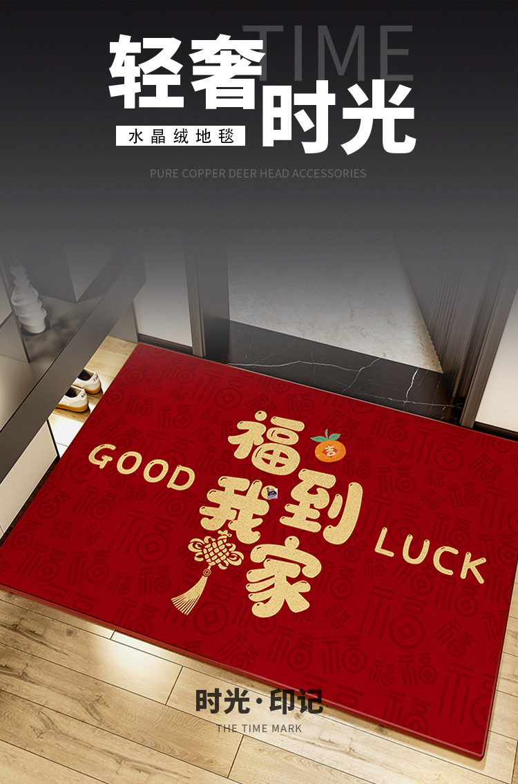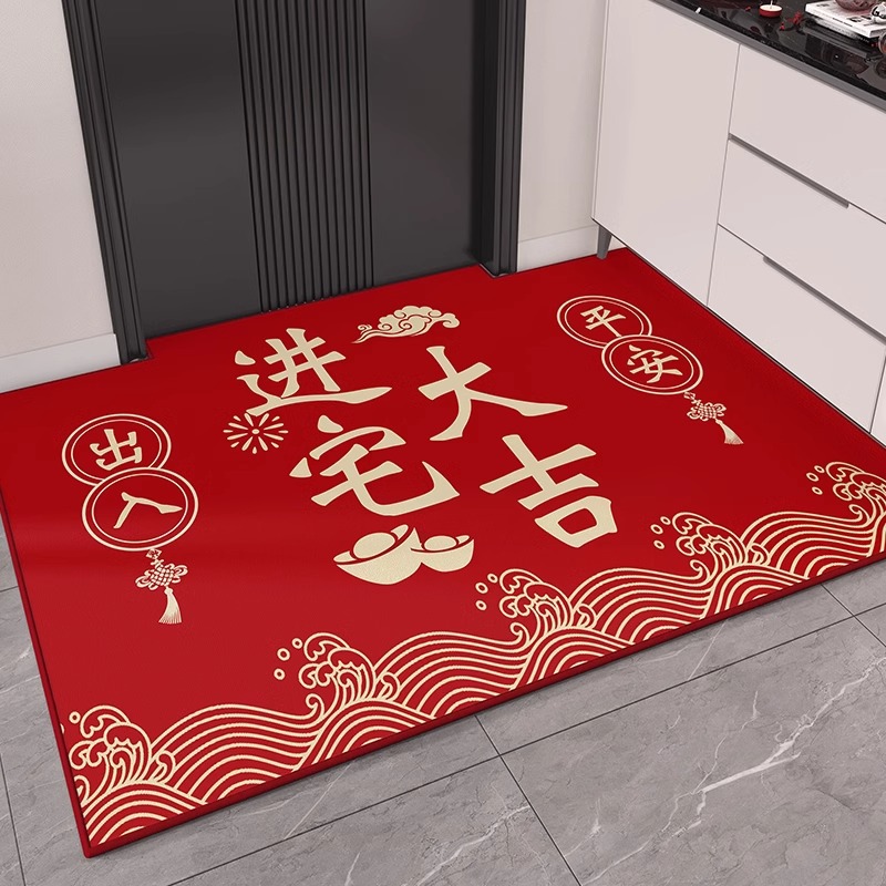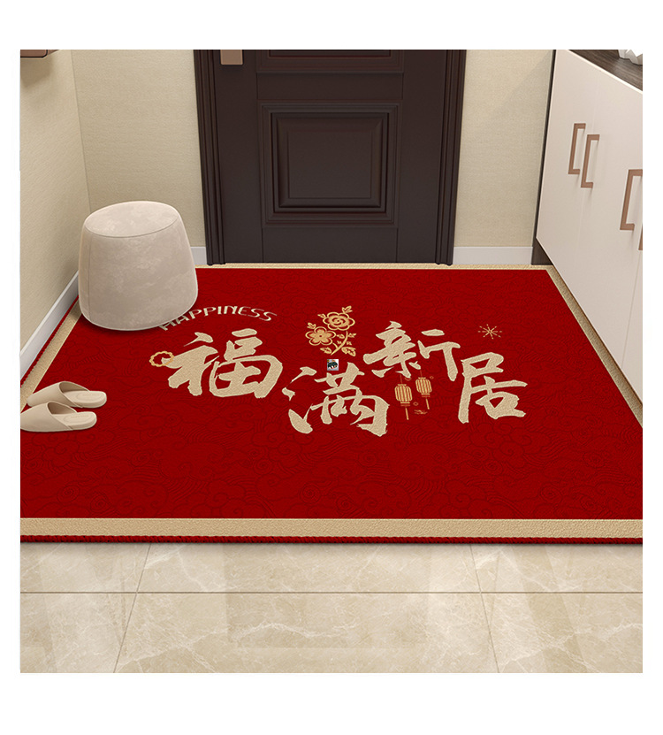 빨간 입구 문 바닥 매트 고급 물 흡수성 미끄럼 방지 발 매트 가정용 먼지 방지 쉬운 관리 크리스탈 벨벳 바닥 매트스토어 가기