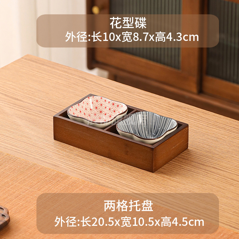 • 호두나무 2각형 격자 + 꽃 모양 접시 2개
